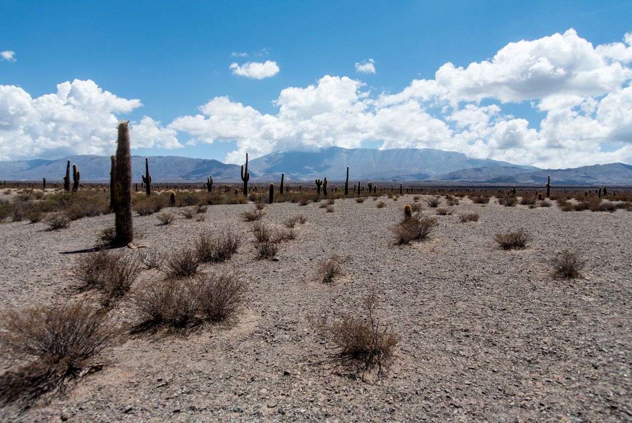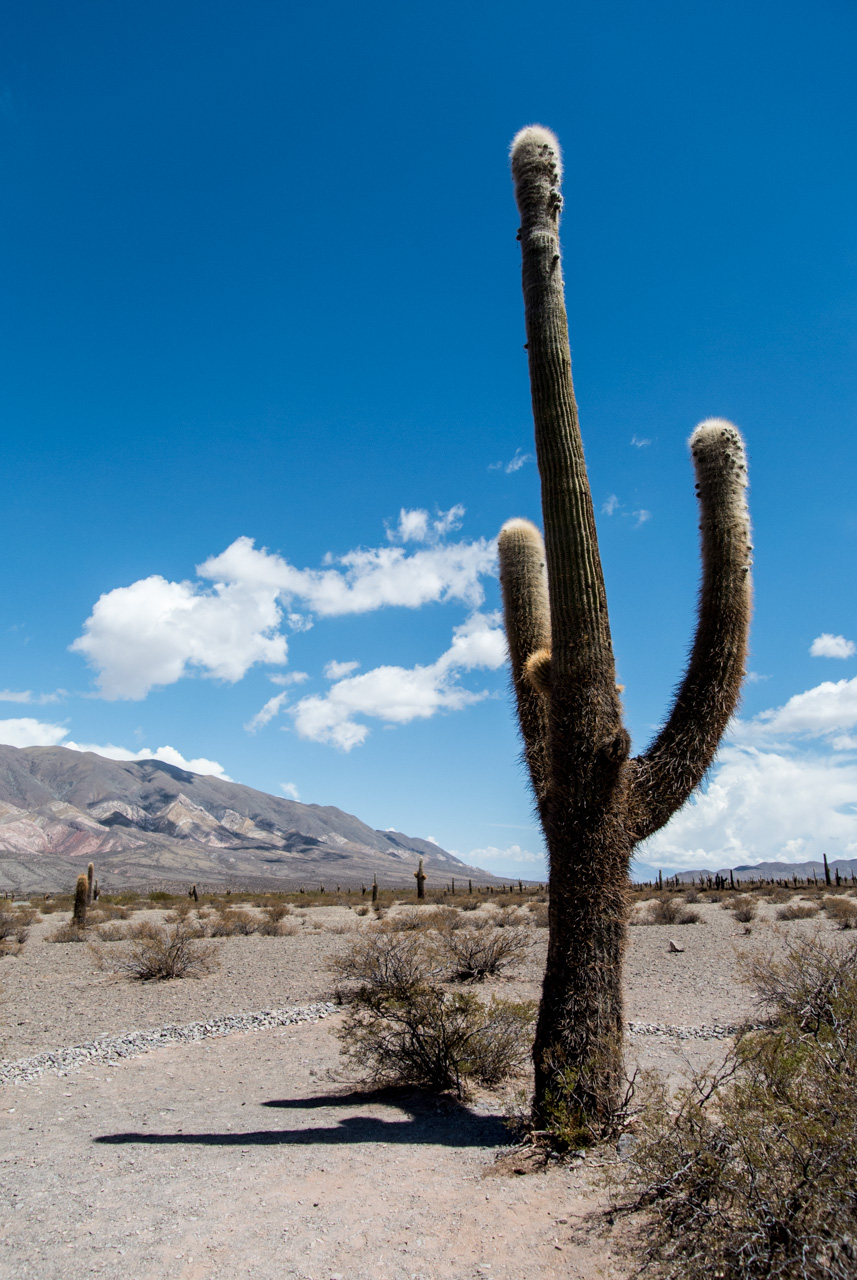 Tout à coup, le paysage commence à montrer des signes de végétation : des cactus, mais n’importe lesquels, ces grands cactus qui ressemblent à des candélabres. C’est une véritable « forêt de cactus » que l’on rencontre en arrivant au Parc National « Los Cardones ». Pas grand-chose à faire néanmoins dans ce parc, à part marcher sur les sentiers balisés (on ne peut pas trop s’approcher des cactus, ils sont fragiles). A part une petite station de garde-forestier, pas de service. C’est le parc national que traverse la « Recta del Tin Tin« , un morceau complètement droit de la Route provinciale 33, entouré par les cactus et la montagne, cette route donnerait envie au plus paresseux des voyageurs de manger du goudron ! Ici passait le chemin de l’Inca, la route qui traversait tout l’empire du fils du soleil.