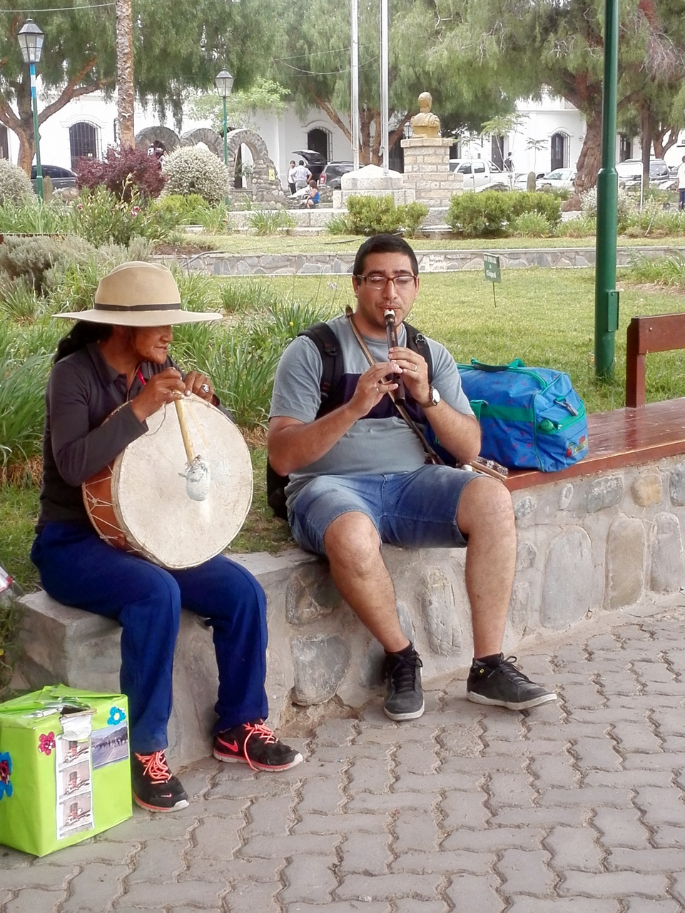 J’ai le loisir de me balader à travers les rues tranquilles de Cachi… dans le parc, une vieille dame psalmodie dans une langue inconnue une mélopée hypnotique… elle est bientôt rejointe par un jeune musicien qui calque sa flûte sur son rythme… Je vais rester un bon moment assise sur un banc à écouter, complètement subjuguée… Le charme est rompu quand la vieille dame décide de s’arrêter… et les deux jeunes de l’interroger sur sa technique… je décroche rapidement, dans un état un peu second. Est-ce l’effet de la digestion ? De l’altitude ? Du soleil ? De la musique ? Péniblement, je me lève et part me promener.