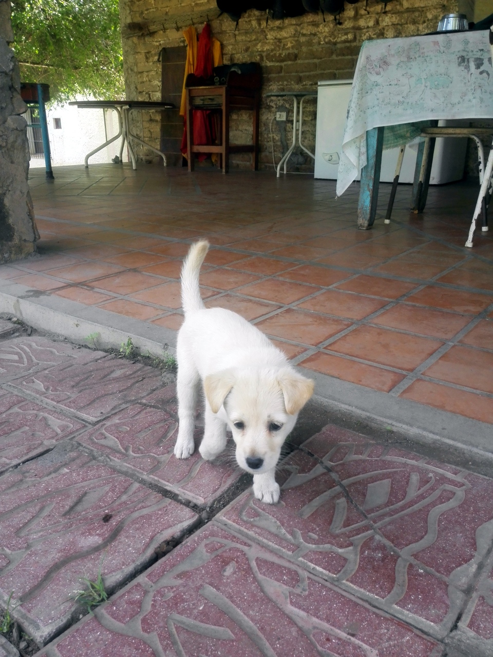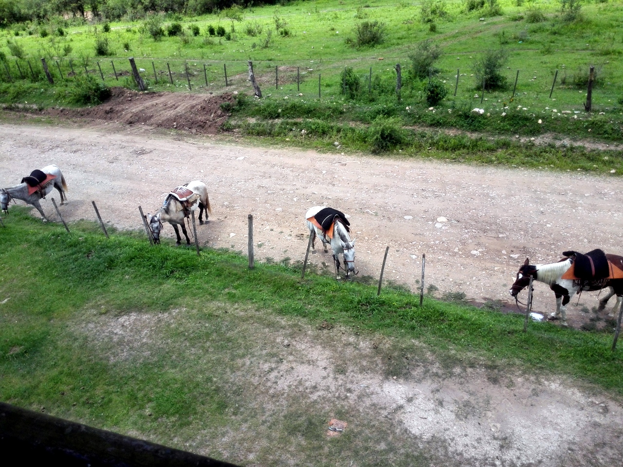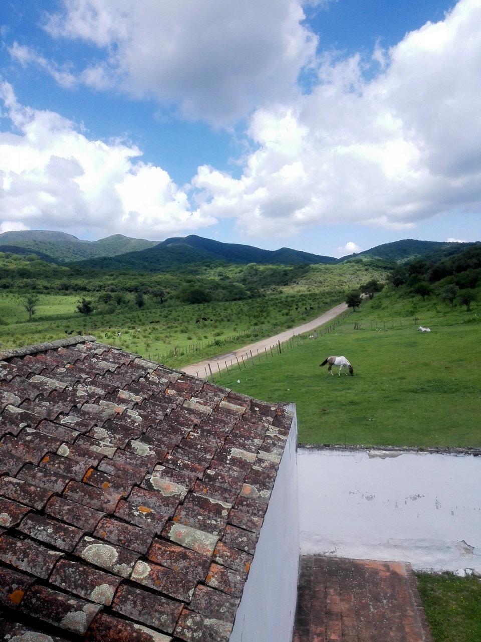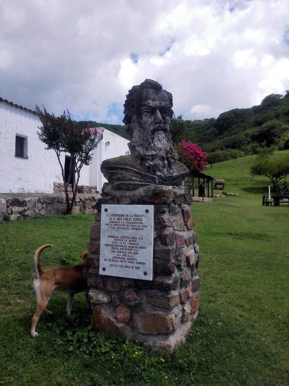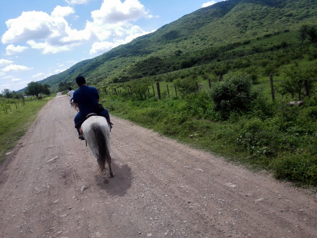 Le matin, une vieille jeep s’arrête devant l’auberge alors que je termine mon petit déjeuner. On vient me chercher ! C’est Guillermo, un vrai cavalier… teint cuivré par le soleil, chapeau sur la tête, avec sa chemise blanche et son pantalon beige délavés, on ne peut pas le louper. Son large sourire me met à l’aise tout de suite ! Guillermo n’est pas seulement qu’un cavalier : il a participé à des rodéos, très populaires en Argentine. On arrive à discuter malgré mon très mauvais espagnol ! « Et puis, me raconte-il, je suis devenu un peu vieux pour ça. C’était trop dangereux. Maintenant, je me contente d’aller me balader ». Je suis la première qu’il vient chercher, nous ferons quelques arrêts à travers Salta pour récupérer d’autres cavaliers avant de partir vers la campagne, direction la Finca ¨La Quesera¨ où nous attend David, le patron. Lui aussi est une espèce de géant souriant et nous accueille d’une voix tonitruante. Le lieu est joli, très vert… je me prends immédiatement d’affection pour le chiot de la maison, une petite femelle mais elle a plus l’air de faire la fête à Guillermo. « Es mi compañera » me confie-il en rigolant.