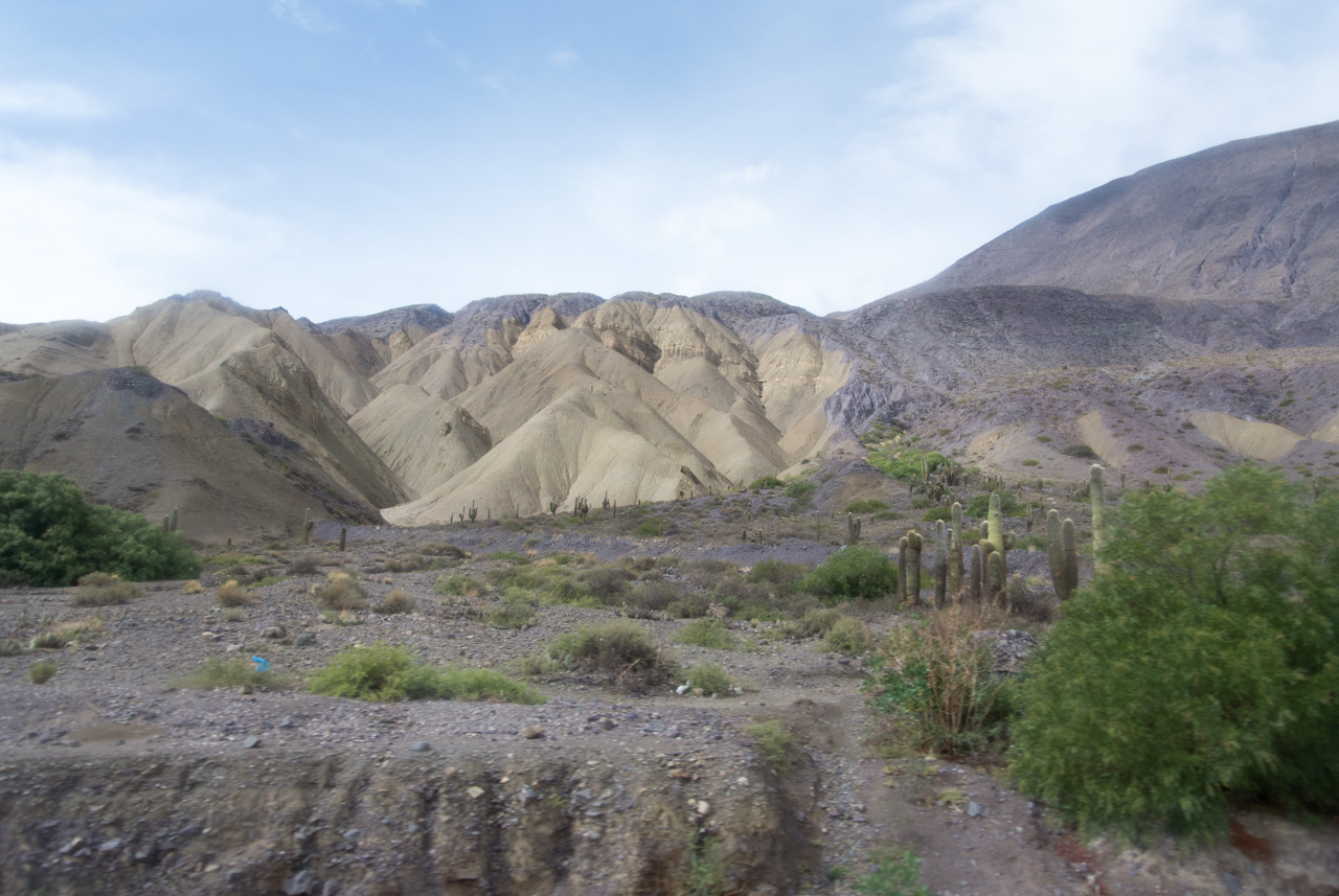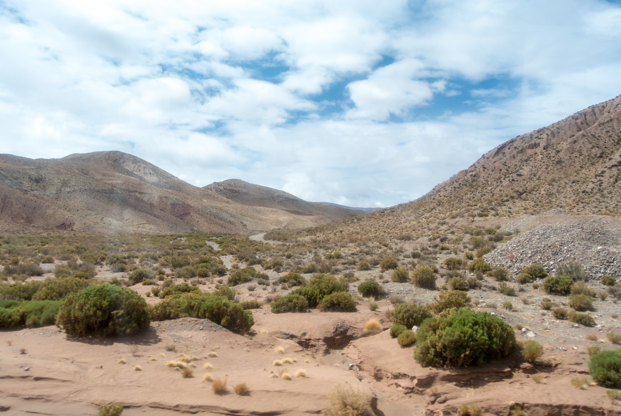 La journée commence tôt, très tôt. Le soleil n’est pas encore complètement levé que je tire mon fidèle « sac-à-roulette » derrière moi. L’air est chaud et humide ce matin sur Salta… La veille, j’avais pris soin d’acheter quelques provisions… je serai en « semi-cama » dans le bus, je ne pourrais donc pas compter sur un en-cas et la route sera longue ! Toujours plus au nord, à travers les Andes et de l’autre côté, le Chili et le désert de l’Atacama. On embarque dans le petit matin, un soleil timide se lève… il fait un peu gris mais je n’en ai que faire : un sacré périple et un nouveau pays m’attendent !