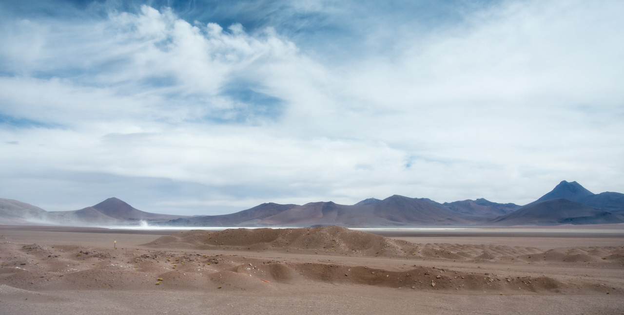 Le total de l’opération prendra une petite heure. Nous retournons vers notre bus avec nos bagages, on recharge le tout, et c’est parti pour le dernier morceau de route, tout en descente… Le paysage s’adoucit, graduellement, jusqu’à arriver à une vaste plaine semée de cailloux, le bus ralentit et entre dans une ville qui à l’air d’être sortie d’un western. C’est ça San Pedro de Atacame ? Je l’imaginais plus grande, avec tout ce monde qui vient la visiter. Les portes s’ouvrent : c’est le signal d’une nouvelle aventure ! Chili, on va voir ce que tu vas voir!