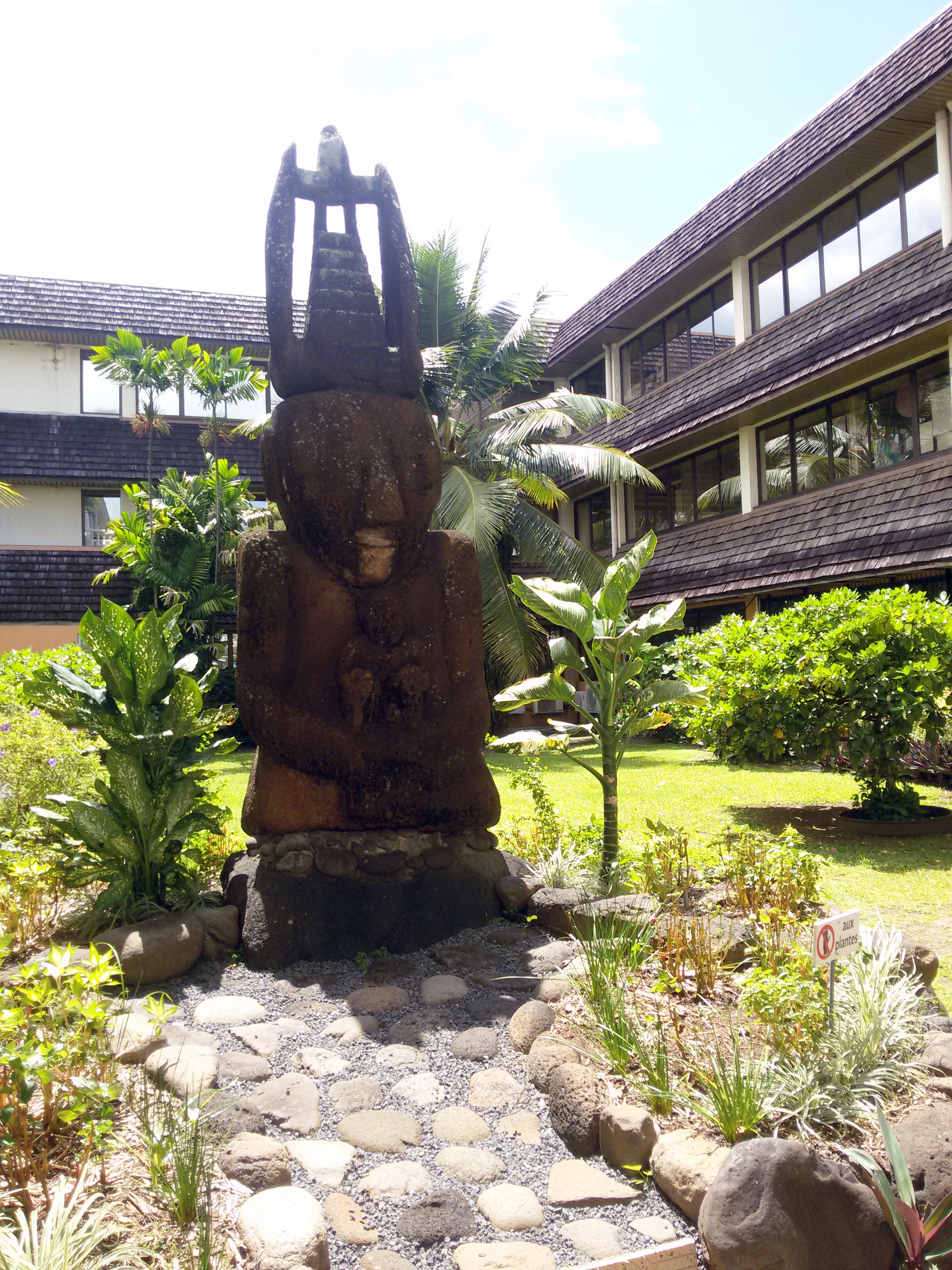 Mais pour le moment, direction l'hôtel ! J'ai décidé m'accorder ce petit plaisir après les nuits passés en tente, surtout à passé minuit. Un taxi me dépose donc à l'Hôtel Tiki, une des adresses "bons plans" quand on veut séjourner à Tahiti. L'hôtel est en fait tenue par l'école hôtelière de Polynésie, quasi tout le personnel sont des étudiants en formation .