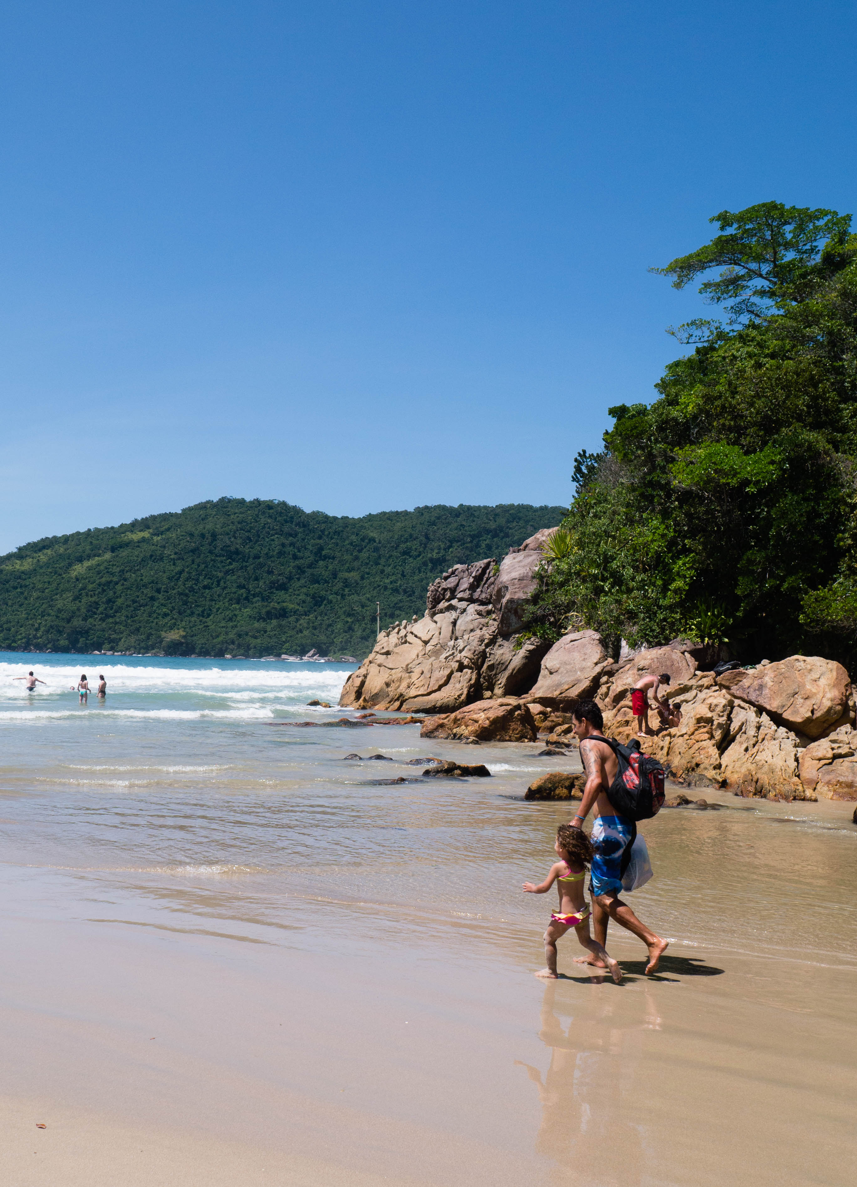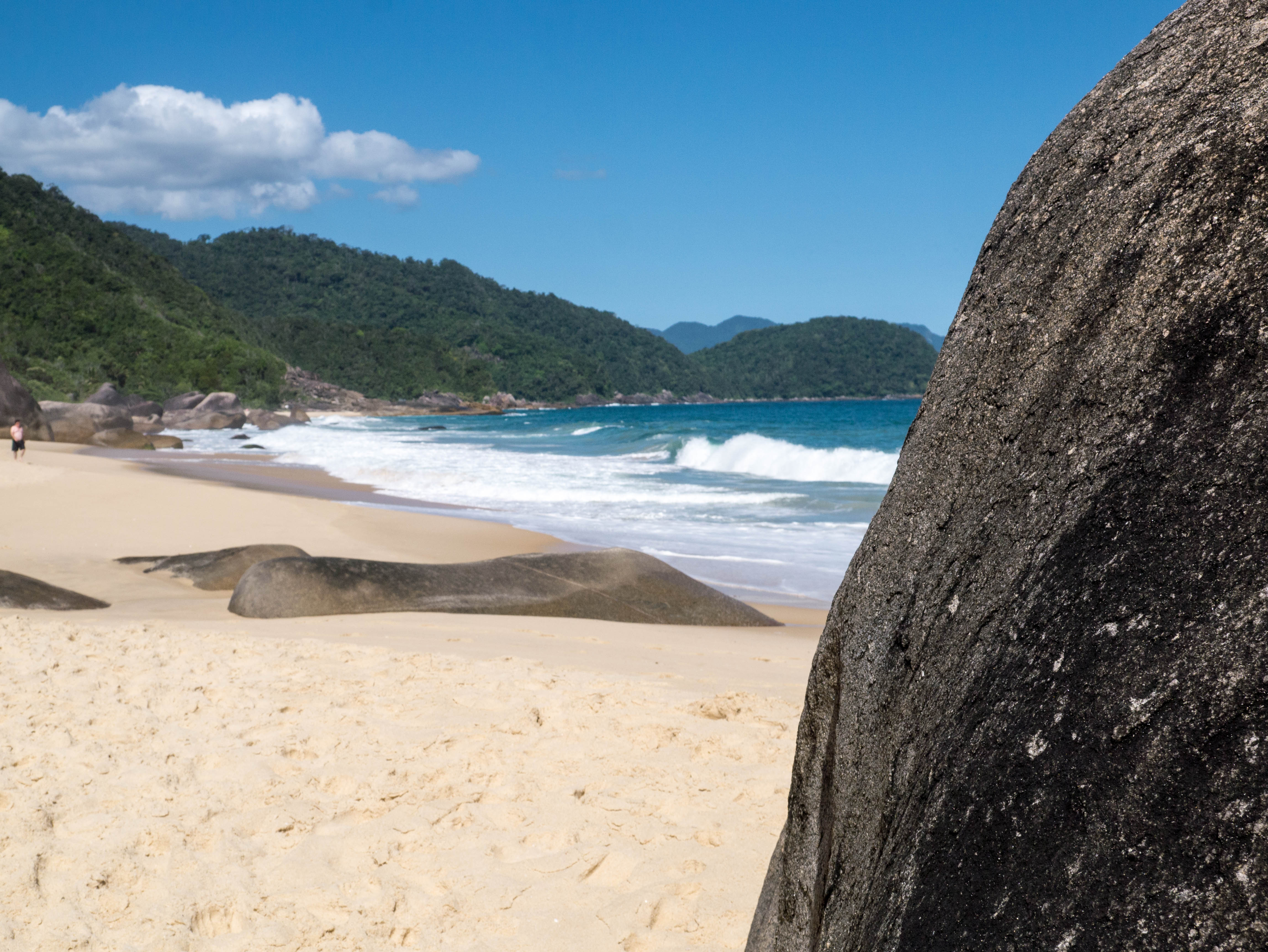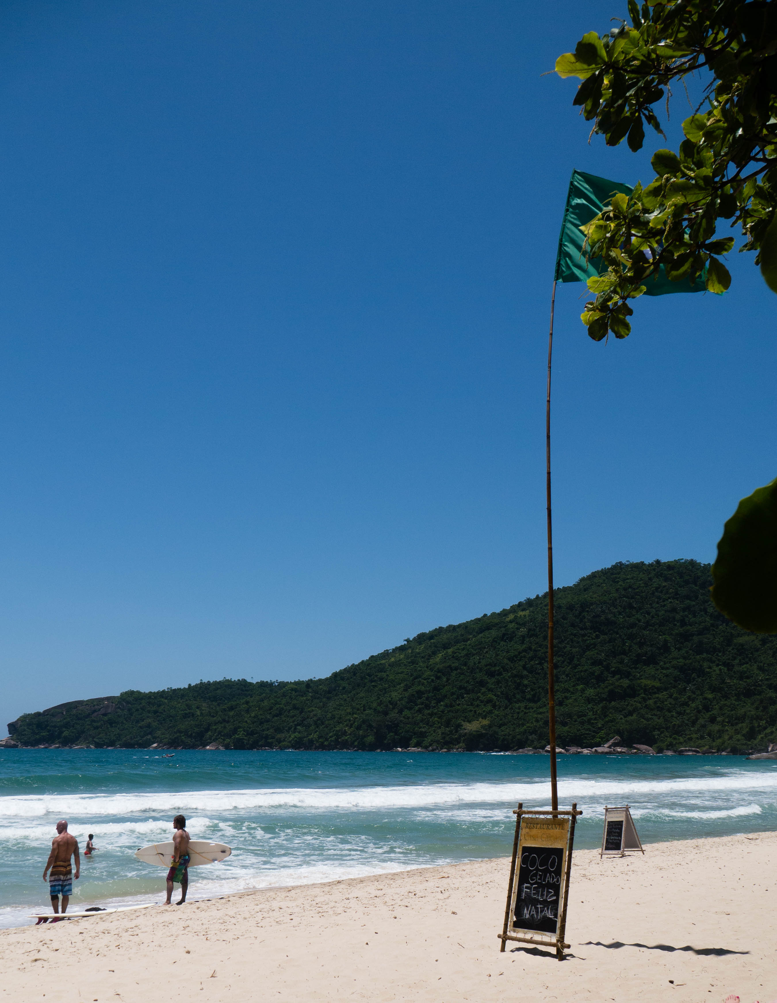 Les plages, c’est pour cela que les plus curieux viennent à Trindade et le village n’en compte pas moins de 5 dans ses environs immédiats. On vient officier au culte du Dieu Soleil, du Body-Board et du Surf. Avec un peu de snorkeling, de plongée et même un peu de randonnée, c’est tout ce qu’il y a faire dans le coin. Le genre d’endroit qui laisserait tenter une beach bum comme moi pendant au moins deux semaines… mais voilà, je n’ai que 3 jours et j’entame donc directement les débats sur la plage principale de Trindade, Praia dos Ranchos !