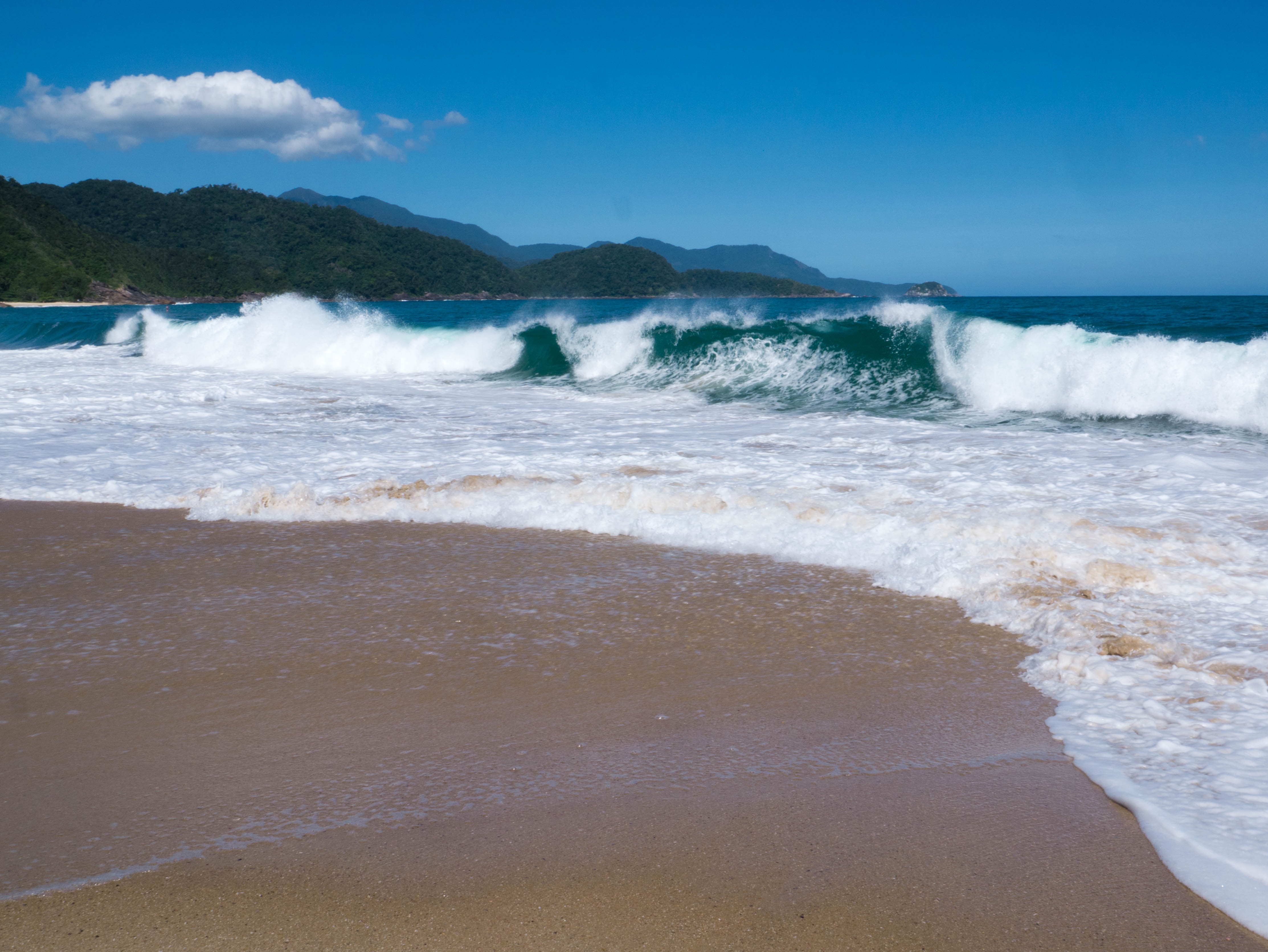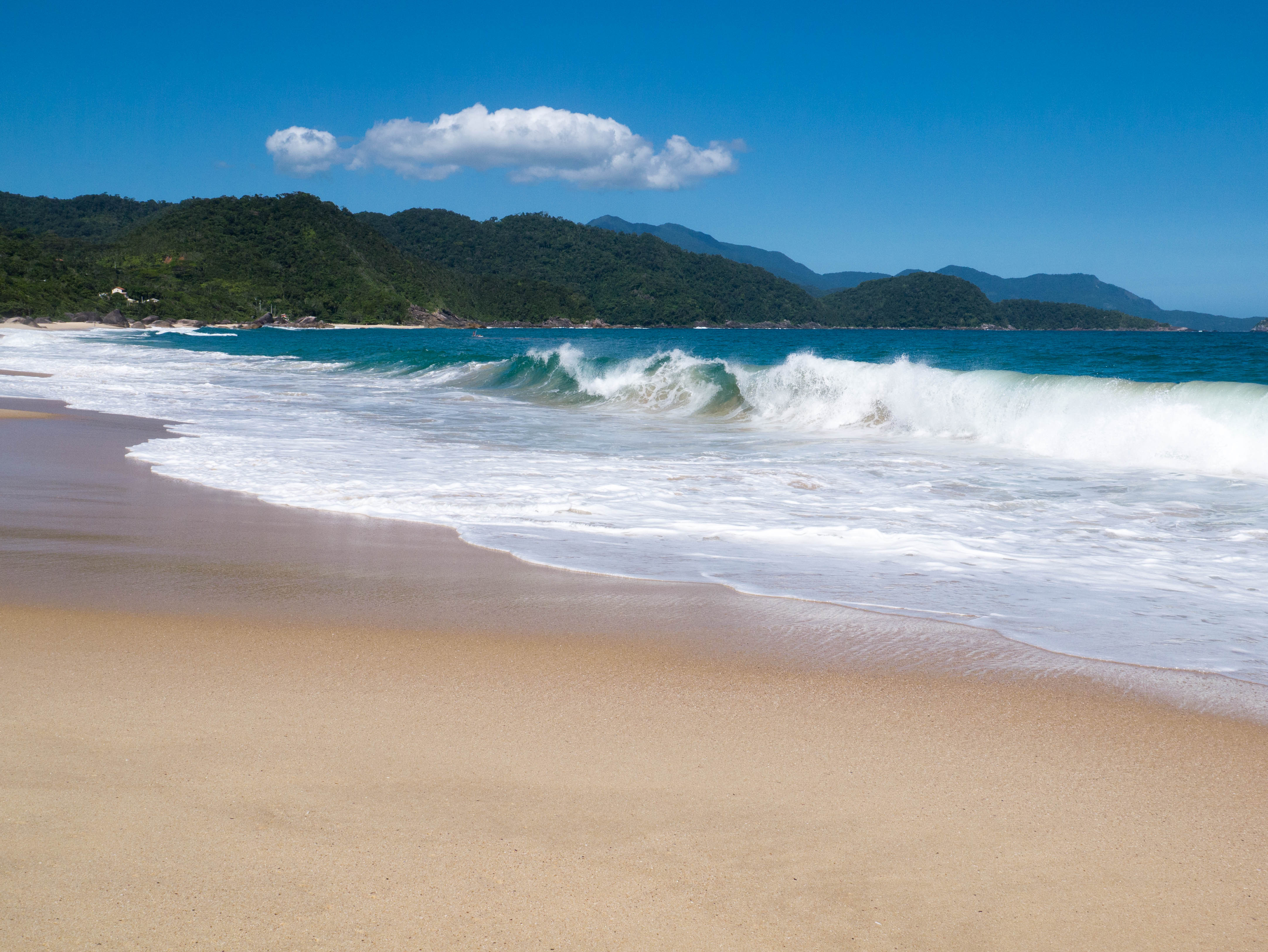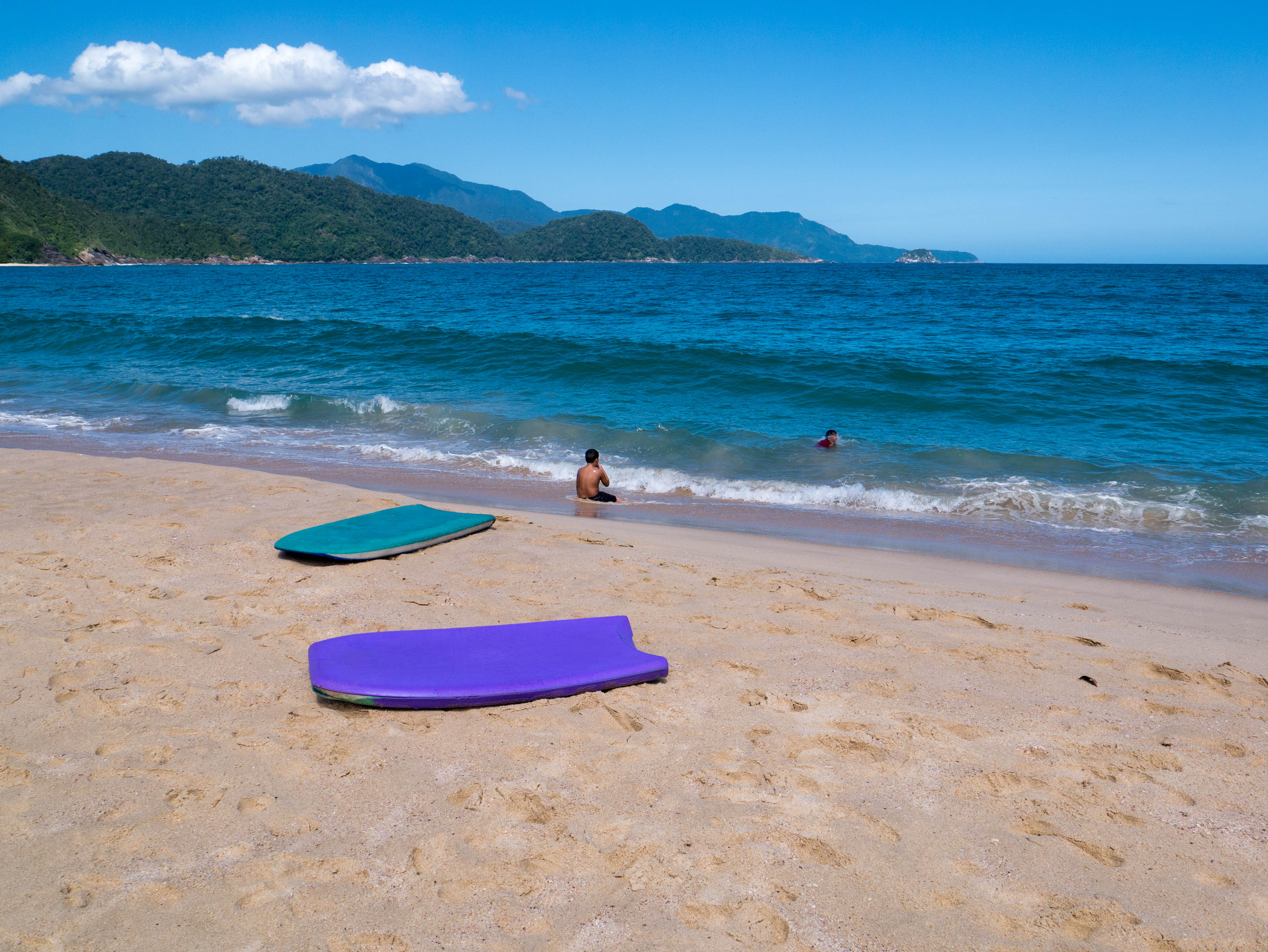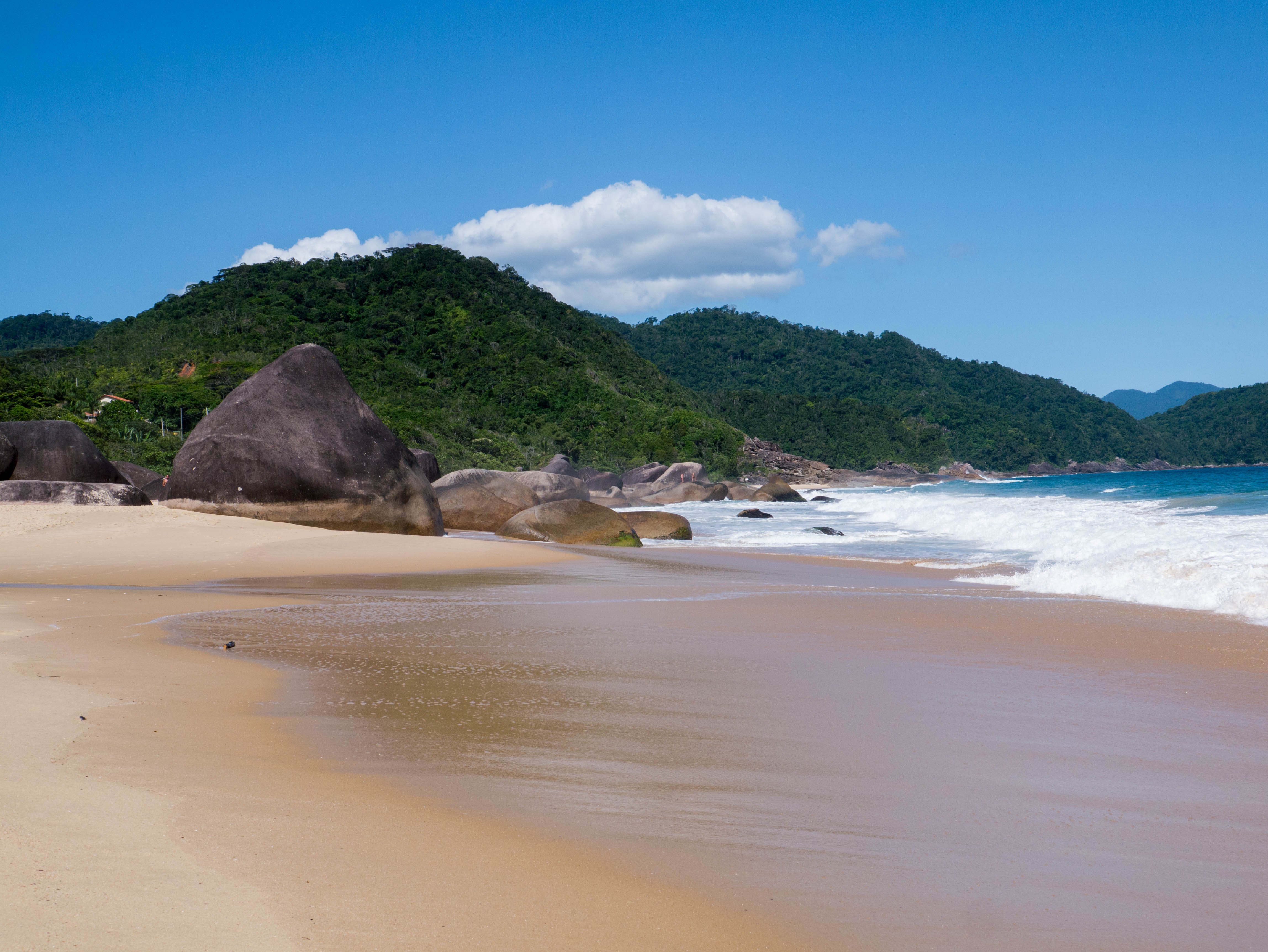 Les plages, c’est pour cela que les plus curieux viennent à Trindade et le village n’en compte pas moins de 5 dans ses environs immédiats. On vient officier au culte du Dieu Soleil, du Body-Board et du Surf. Avec un peu de snorkeling, de plongée et même un peu de randonnée, c’est tout ce qu’il y a faire dans le coin. Le genre d’endroit qui laisserait tenter une beach bum comme moi pendant au moins deux semaines… mais voilà, je n’ai que 3 jours et j’entame donc directement les débats sur la plage principale de Trindade, Praia dos Ranchos !