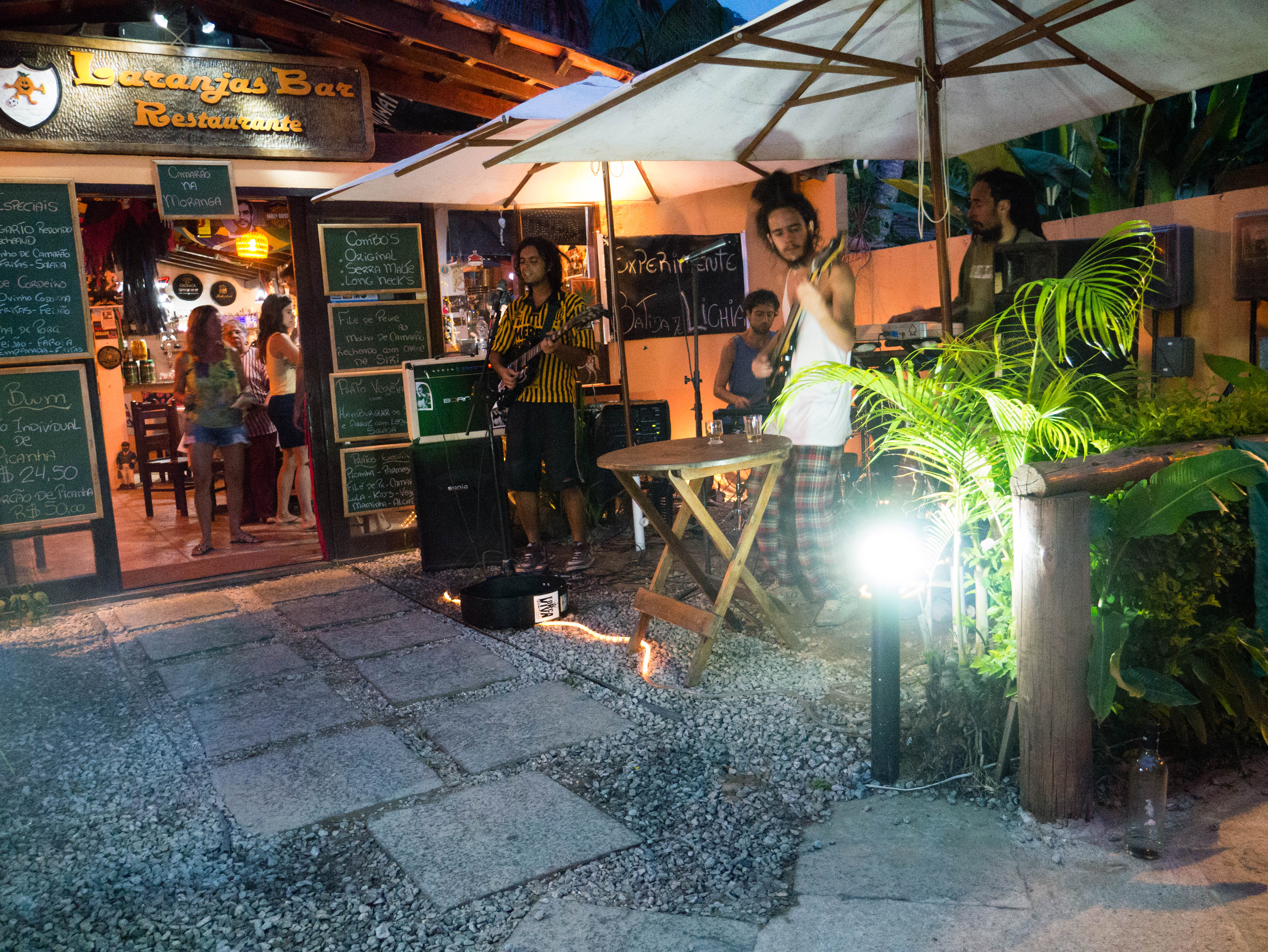 - Laranjeiras : dans la rue principale, à deux pas du cyber-café. Carte un peu générique mais il y a des groupes qui viennent mettre de l’animation en terrasse le soir.