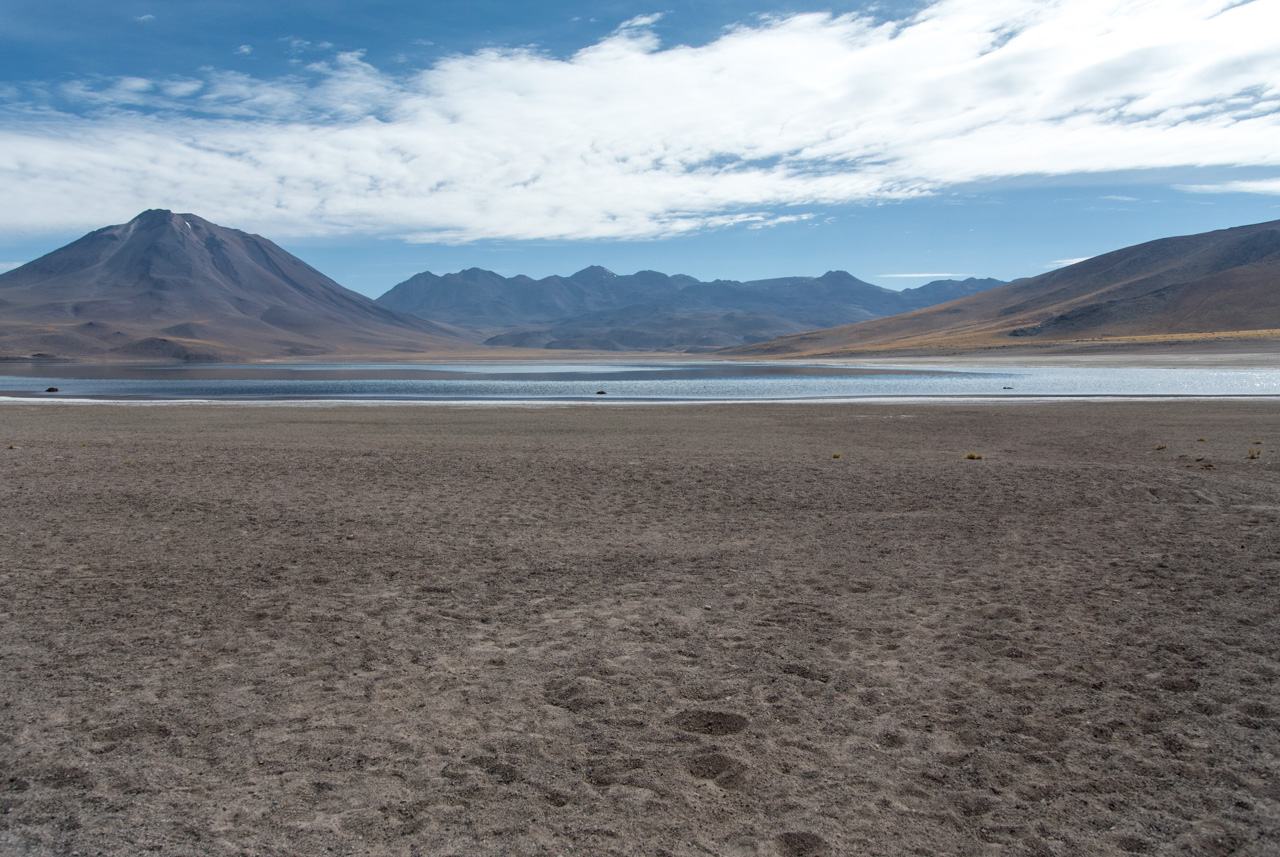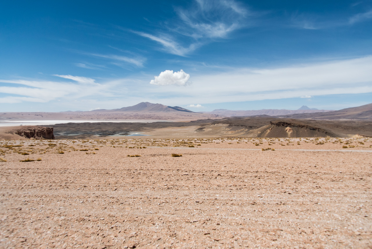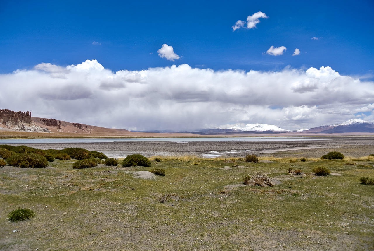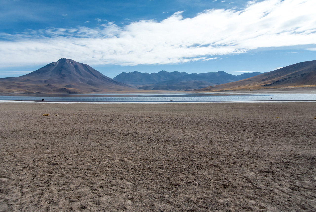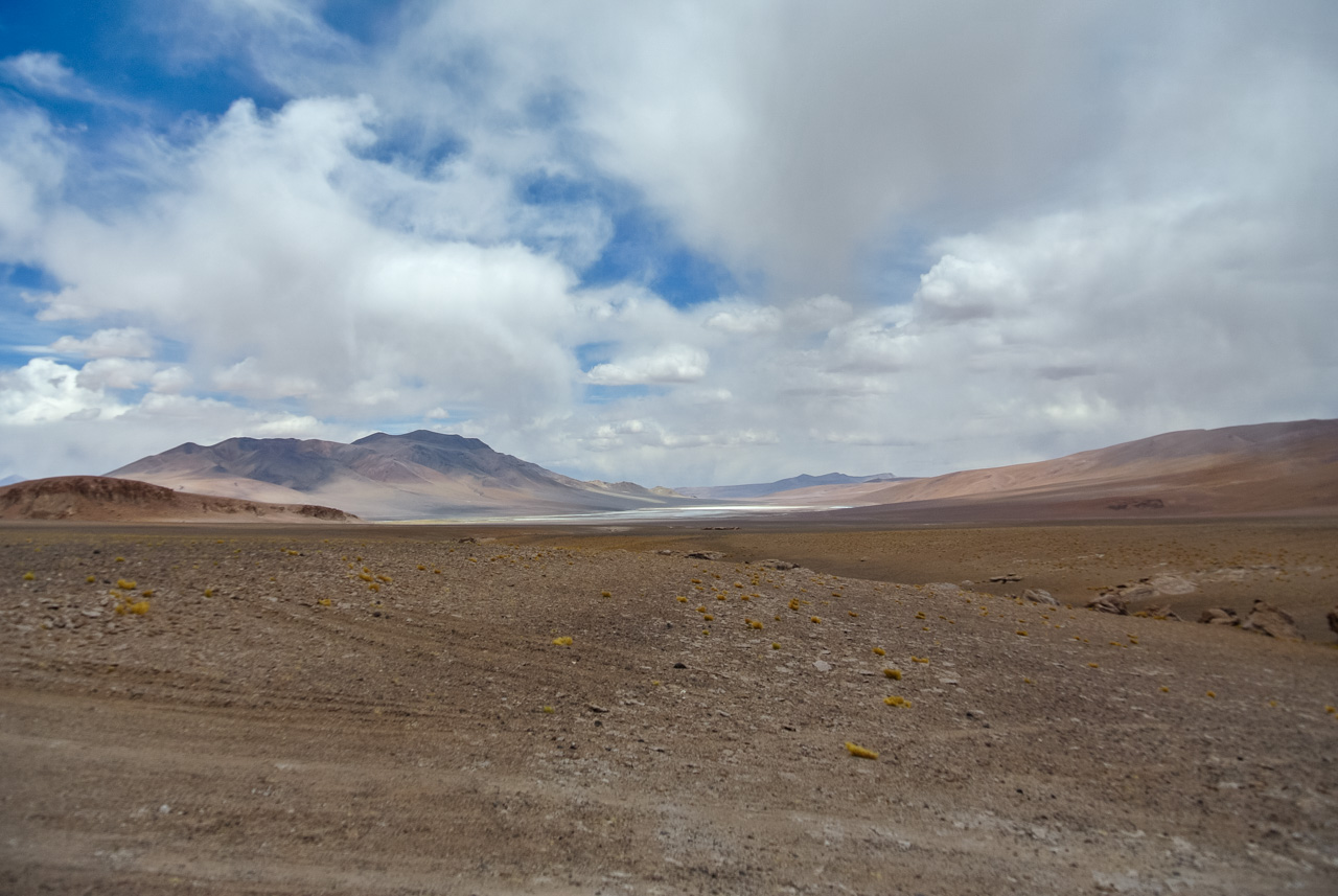 Si vous ne devez faire qu’une excursion, je vous recommande celle-ci. Départ TRÈS tôt le matin (à 7 heures) car il y a de la route à faire pour atteindre le but et crois-moi, Lectrice, Lecteur, ça en vaut VRAIMENT la peine. Avant de te lancer néanmoins, petit avertissement : le point le plus haut de cette excursion monte à 4900 mètres!!! Ce n’est pas rien, il faut donc être prudent lorsqu’on est pas habitués. L’excursion commence donc par un arrêt au Salar de Pujsas, une zone humide où la vie abonde, un étrange écran vert dans un paysage où rien ne pousse. Aux alentours, on ne voit que des collines et des montagnes dénudées. et pourtant… la lagune est remplie, ici aussi, de flamants. La vie a ce talent de trouver où s’infiltrer n’importe où!