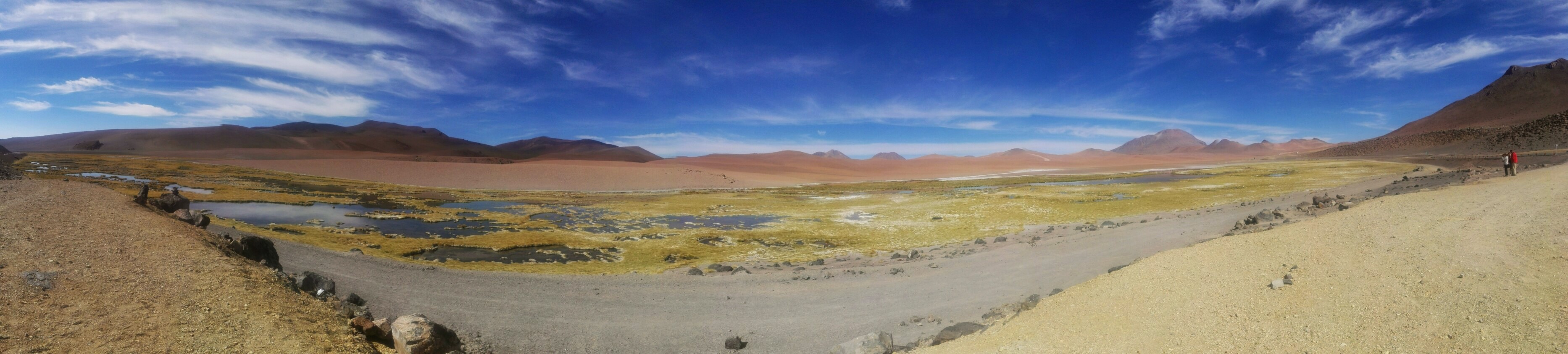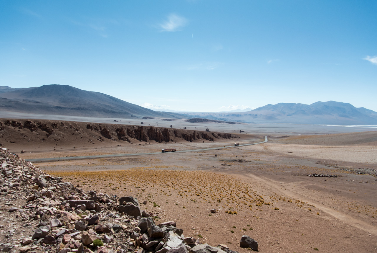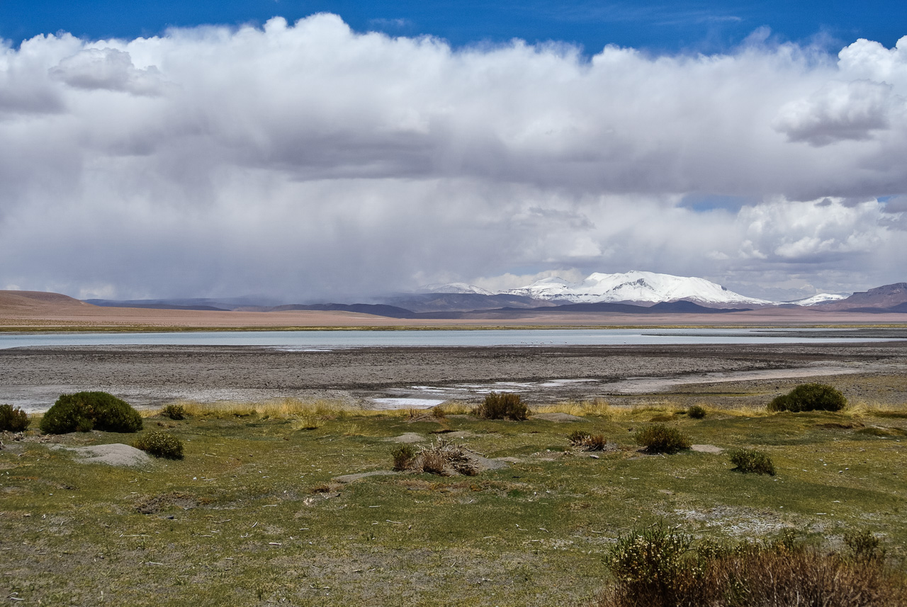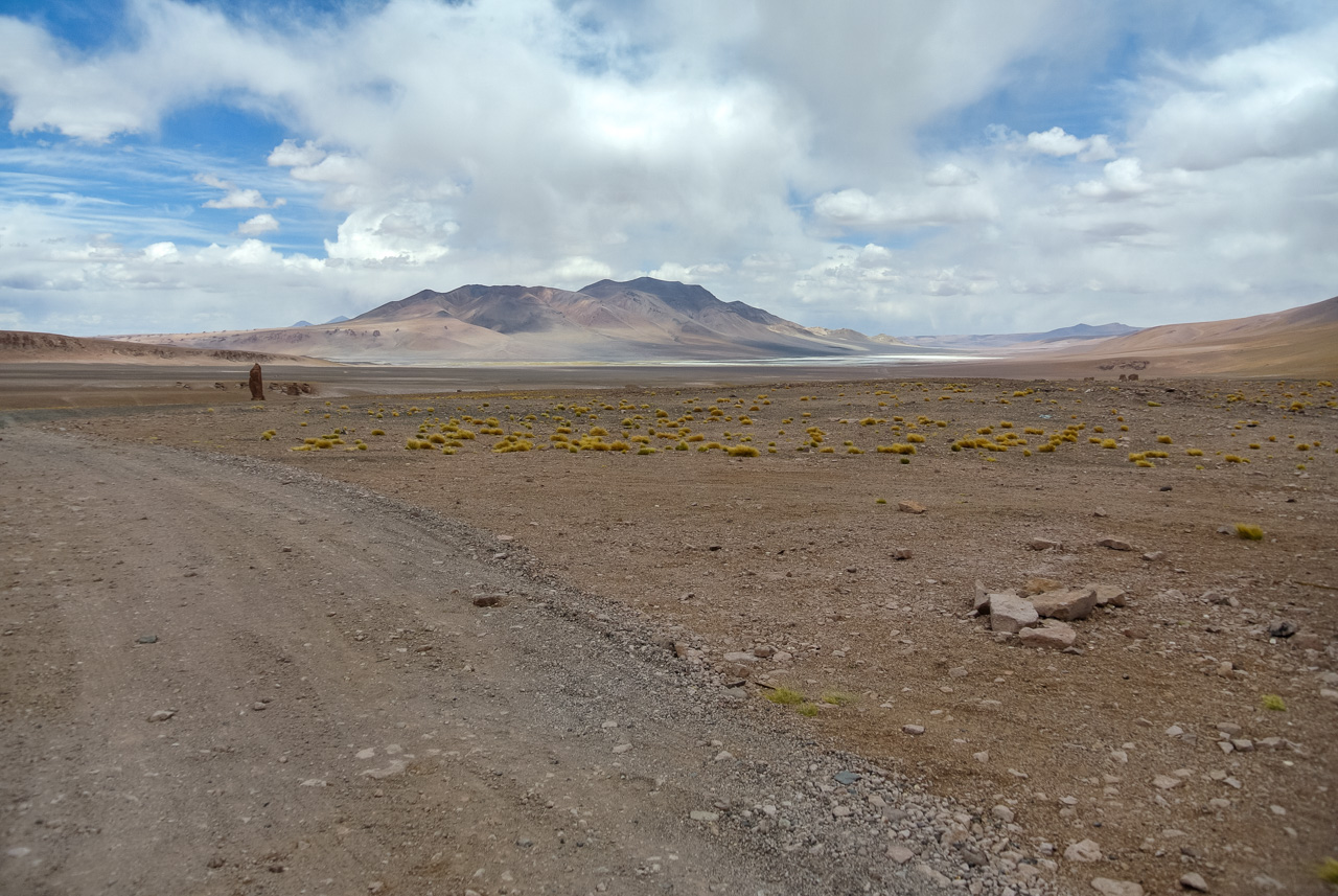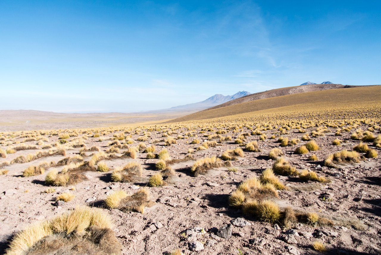 Si vous ne devez faire qu’une excursion, je vous recommande celle-ci. Départ TRÈS tôt le matin (à 7 heures) car il y a de la route à faire pour atteindre le but et crois-moi, Lectrice, Lecteur, ça en vaut VRAIMENT la peine. Avant de te lancer néanmoins, petit avertissement : le point le plus haut de cette excursion monte à 4900 mètres!!! Ce n’est pas rien, il faut donc être prudent lorsqu’on est pas habitués. L’excursion commence donc par un arrêt au Salar de Pujsas, une zone humide où la vie abonde, un étrange écran vert dans un paysage où rien ne pousse. Aux alentours, on ne voit que des collines et des montagnes dénudées. et pourtant… la lagune est remplie, ici aussi, de flamants. La vie a ce talent de trouver où s’infiltrer n’importe où!