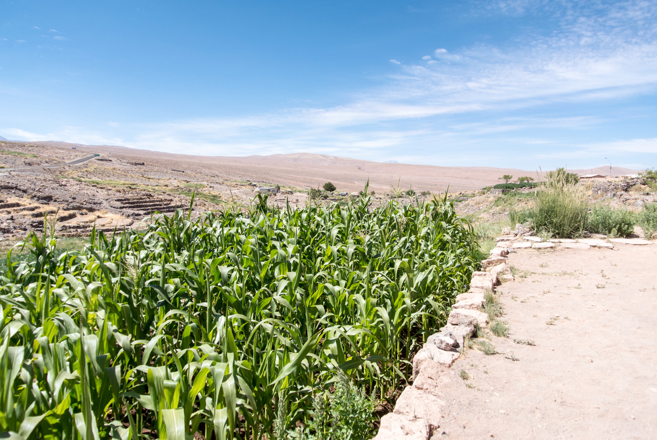La deuxième partie de la journée se déroule dans le Salar de Atacama, autour de la Laguna Chaxa. C’est ici que niche les flamants. Mais avant cela, vous ferez sans doute un arrêt au village de Socaire, un tout petit village dont la particularité est sa jolie petite église mais surtout, ses cultures en terrasse, en plein désert d’altitude! Vraiment étonnant.