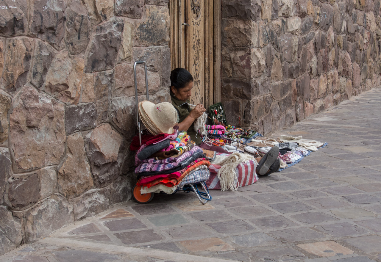Pour arriver jusqu’ici, j’ai décidé d’investir dans un ticket « Cama » depuis Cordóba. « Cama« , c’est une classe de bus super confort qui vous permet d’incliner votre dossier presqueà l’horizontale et où l’on vous sert de petits plateau repas et des snacks. De quoi faire passer un trajet de nuit un peu plus agréablement… J’arrive donc en milieu de matinée après toute une nuit sur la route à Salta dans l’extrème-nord de l’Argentine. La grande pampa s’est transformée pendant mon sommeil! Si Salta est dans une vallée, elle est entourée de montagne et c’est la porte des Andes. Et ça se sent dès mon arrivée! Le climat plus aride, les couvertures colorées, les visages… ici, la population est plus métissée qu’à Buenos Aires ou a même à Corboda… Le temps de parcourir les dix minutes qui séparent la gare routière de mon auberge et j’ai le temps de me faire une petite idée de la ville… Un air sec et chaud, une ville à taille humaine, des petites rues… je m’y sens déjà bien! « Salta la linda » (Salta la belle) est en pleine effervescence : dans quelques jours, elle accueille le passage du Dakar. Dommage, à deux jours prêts, je louperai l’événement!