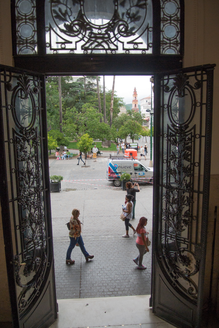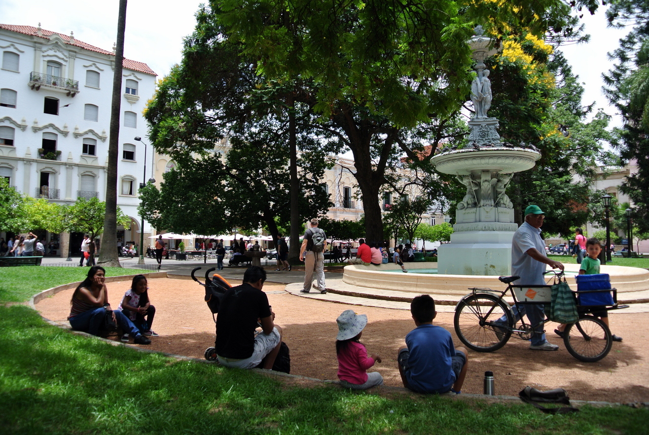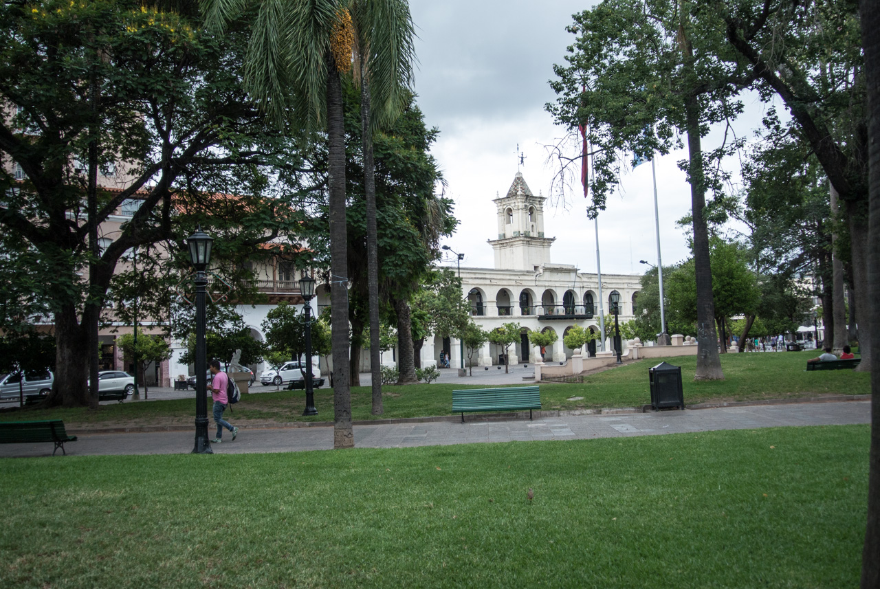 Mon auberge aussi me fait le signe que j’entre dans une autre Argentine… bois colorés, effigie de lamas et dans ma chambre, des taies d’oreillers multicolore. Je commence enfin à me sentir réellement dépaysée! Après une petite sieste, je me décide à me balader : Salta n’est pas très grande et on peut s’y promener à l’aise à travers ses rues bordées de bâtiments coloniaux et de parcs.
