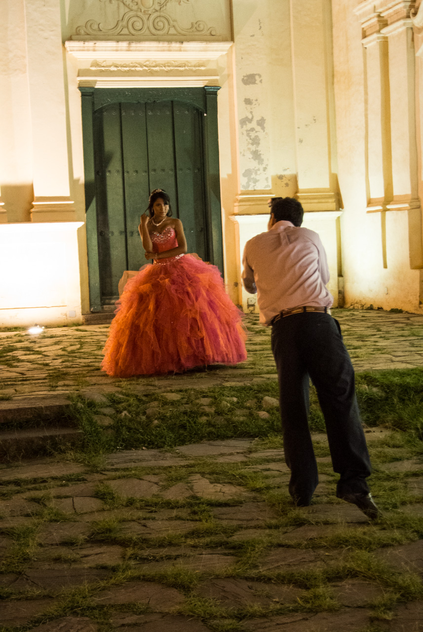 Mon auberge est à deux pas du bâtiment apparemment le plus photogénique de la ville : le Convento San Bernardo. Cet élégant complexe tout blanc et finalement simple, occupe tout un coin de rue et le ferme avec une église. Le couvent est presqu’aussi ancien que la ville (il date du XVIe siècle) et le soir, on y trouve souvent des couples d’amoureux, des sessions de photographies de mariage ou de « Quinceañera », ces jeunes filles qui fêtent leurs quinze ans, un événement essentiel dans toute l’Amérique latine. Grosse fiesta, prétendants et robe de princesses… Attention, si vous êtes allergiques aux meringues, vous friser l’intoxication fatale !
