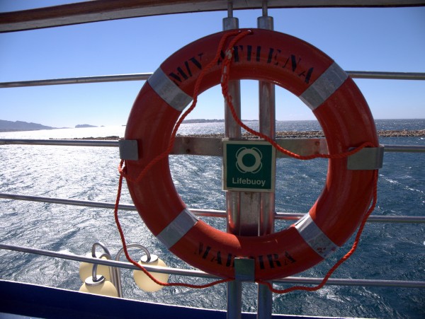 Quelques heures plus tard, nous voici au port de Marseille. Et l’Athena est là, tout blanc, l’air plus grand que je ne me l’imaginais! Après que la majorité des passagers ait embarqué, c’est mon tour: à l’ancienne, sur un petit escalier en fer. Avec mon statut de « staff », j’ai droit à un traitement spécial, une carte spéciale et, honneur suprême, la clé de mon propre local: le local blog. Je suis aux anges! Le temps que les cabines soient prêtes, je fais un petit tour au restaurant. S’il y a bien une chose qui obsède les passagers qui embarquent pour une croisière, c’est la nourriture! Les journées sont rythmées par les repas: petit-déjeuner, dîner, thé, souper, en-cas de minuit. Certains paquebots ont même des cafés ouverts 24h/24! Le brunch est en train de se terminer, avant de se transformer en lunch. Je m’assieds à la table « des célibataires ». Ils s’étaient trouvés dans le bus et finalement découvrent qu’ils ont tous été mis à la même table lors du dîner! Nous nous taquinons mutuellement avec Roland le Breton homme-à-femme, Philippe l’ancien biologiste, Tess qui a repris le travail pour terminer sa carrière et Francine, la casse-cou du groupe. J’en profite également pour visiter le navire… Ce ne sera pas long, avec 7 ponts! Une salle de spectacle, une boite de nuit, un cinéma, un mini-spa, des boutiques, un cigar lounge, deux restaurants, une piscine, le tout dans un look rétro. C’est que l’Athena n’est pas de prime jeunesse, c’est même le plus vieux transatlantique encore en activité! J’ai hâte qu’il prenne la mer pour voir comment il se comporte!