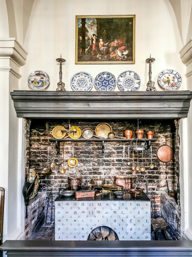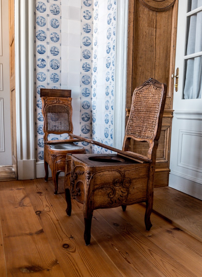 Juste à côté se cache le cabinet de porcelaine, pensé comme un contrepoint délicat à l’opulence de la chambre d’or. Dans un écrin bleu poudré, sont exposées les précieuses porcelaines orientales que collectionnaient les ducs. Une marotte que j’allais retrouver plus tard.