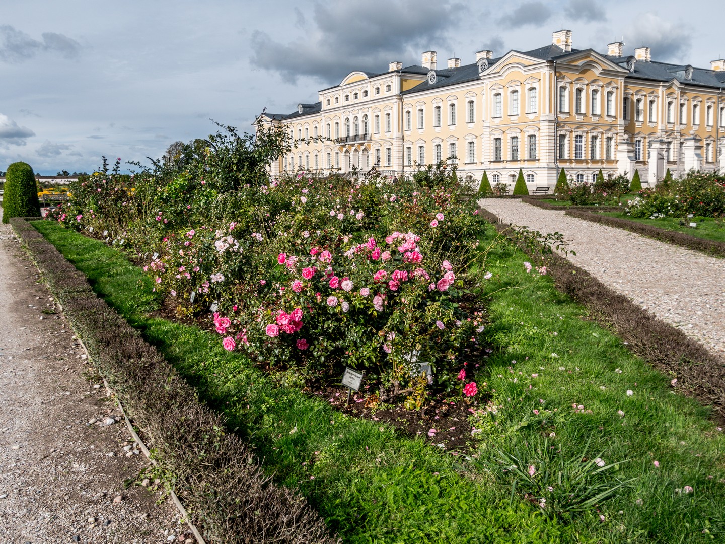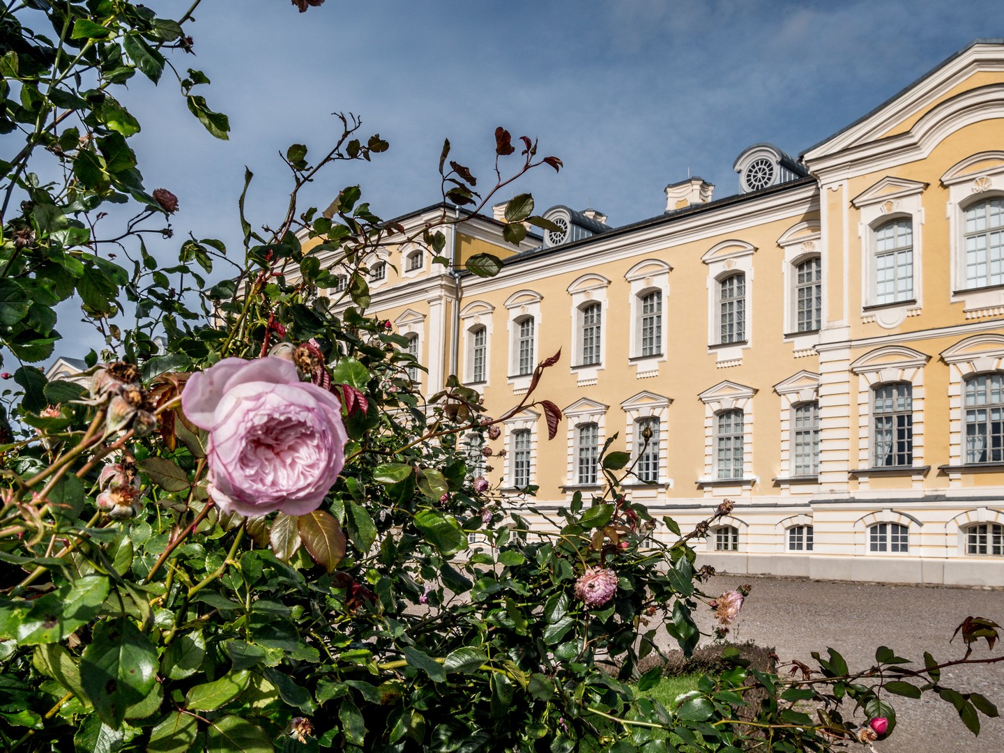 Ce qui n’existait pas à l’origine, c’est la roseraie. Au plus près du palais, 52 parterres de roses de toutes les couleurs s’épanouissent (la rose semble avoir un place importante dans le cœur des Lettons, nombre de places de villes porte le nom de « Place des roses »). J’y ai passé de longs moments à humer les différents parfums et à admirer les couleurs des dernières roses de l’année, l’automne étant déjà bien avancé à la période de l’année où je visitais le palais. Du coup, j’ai aussi loupé le café qui ouvre dans un des pavillons du palais l’été ! J’ai aussi également manqué le cavau des Ducs de Courlande où reposent, entre autres, les deux von Biron et leur famille.