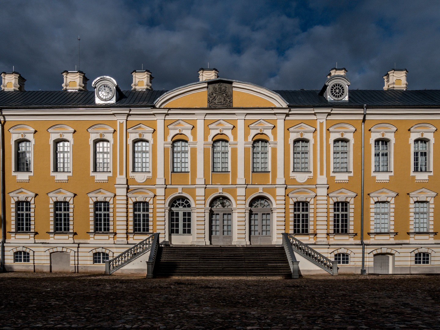 C’est en 1736 que la construction du Palais démarre. Le nouveau duc de Courlande et Sémigallie, Ernst Johann von Biron, souhaitait élever une résidence d’été dans une propriété qu’il venait d’acquérir. Pour ça, il fait appel à l’architecte italien Francesco Bartolomeo Rastrelli. Installé à Moscou, celui-ci est déjà connu pour avoir conçu le Palais d’Hiver de Saint-Pétersbourg et c’est aussi lui est à la manœuvre pour le palais principal du duc à Jelgava. Comme toutes les créations de Rastrelli, il sera de style baroque-rococo. Quatre ans après les débuts des travaux, von Biron tombe en disgrâce et est obligé de s’exiler. Ce n’est qu’en 1762, avec l’accession de Catherine II la Grande sur le trône de Russie que von Biron, tombé en disgrâce, rentre d’exil. Les travaux reprennent et le duc engage l’artiste et sculpteur Johann Michael Graff pour la décoration, et plus particulièrement les somptueux stucs qui ornent la plupart des pièces. Enfin, en 1768, le palais est terminé. Malheureusement pour le duc, il n’en profitera que 4 ans avant de décéder. Son fils, Peter, en jouira plus longtemps.
