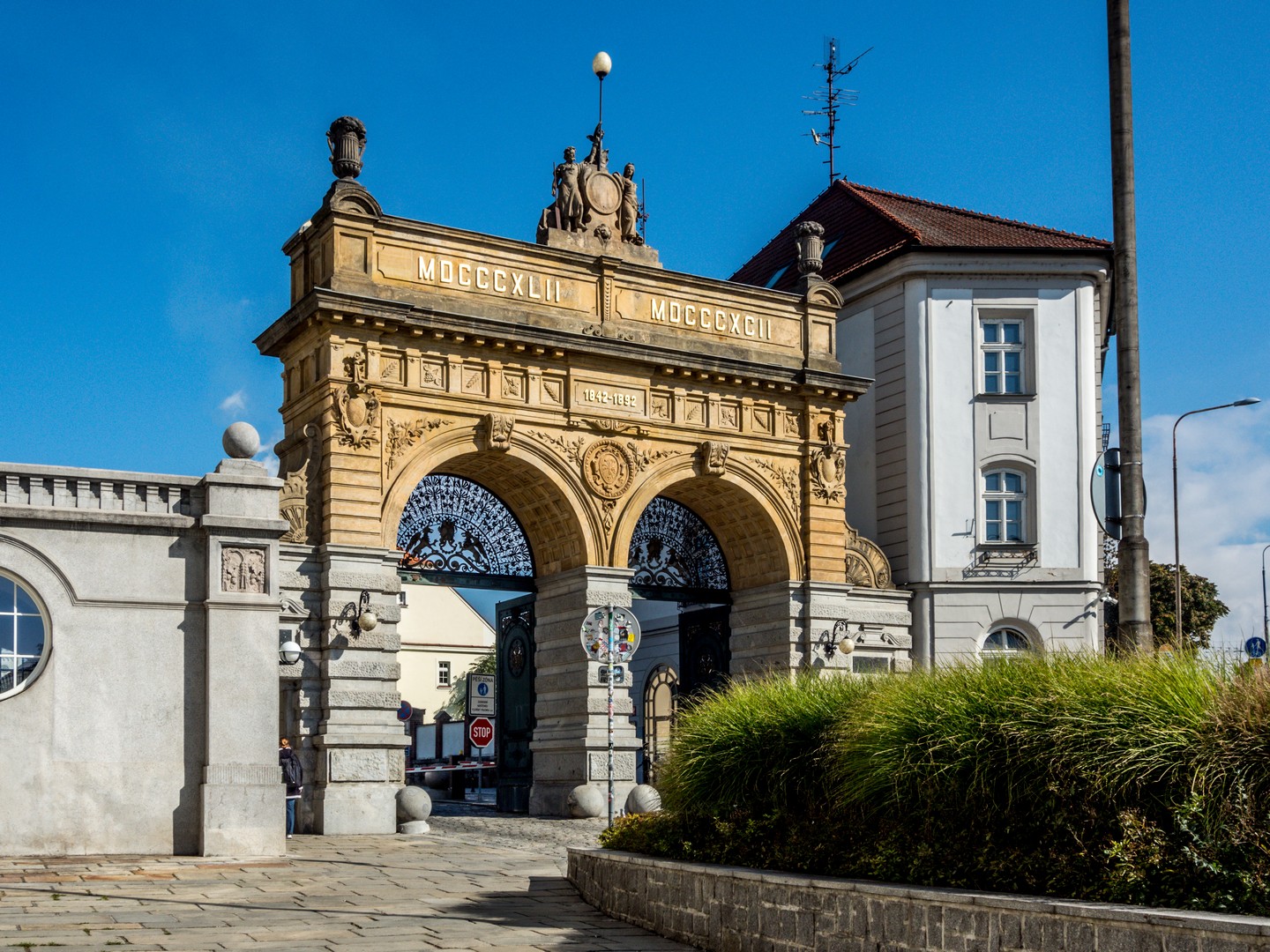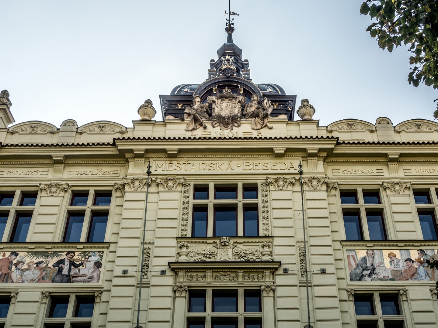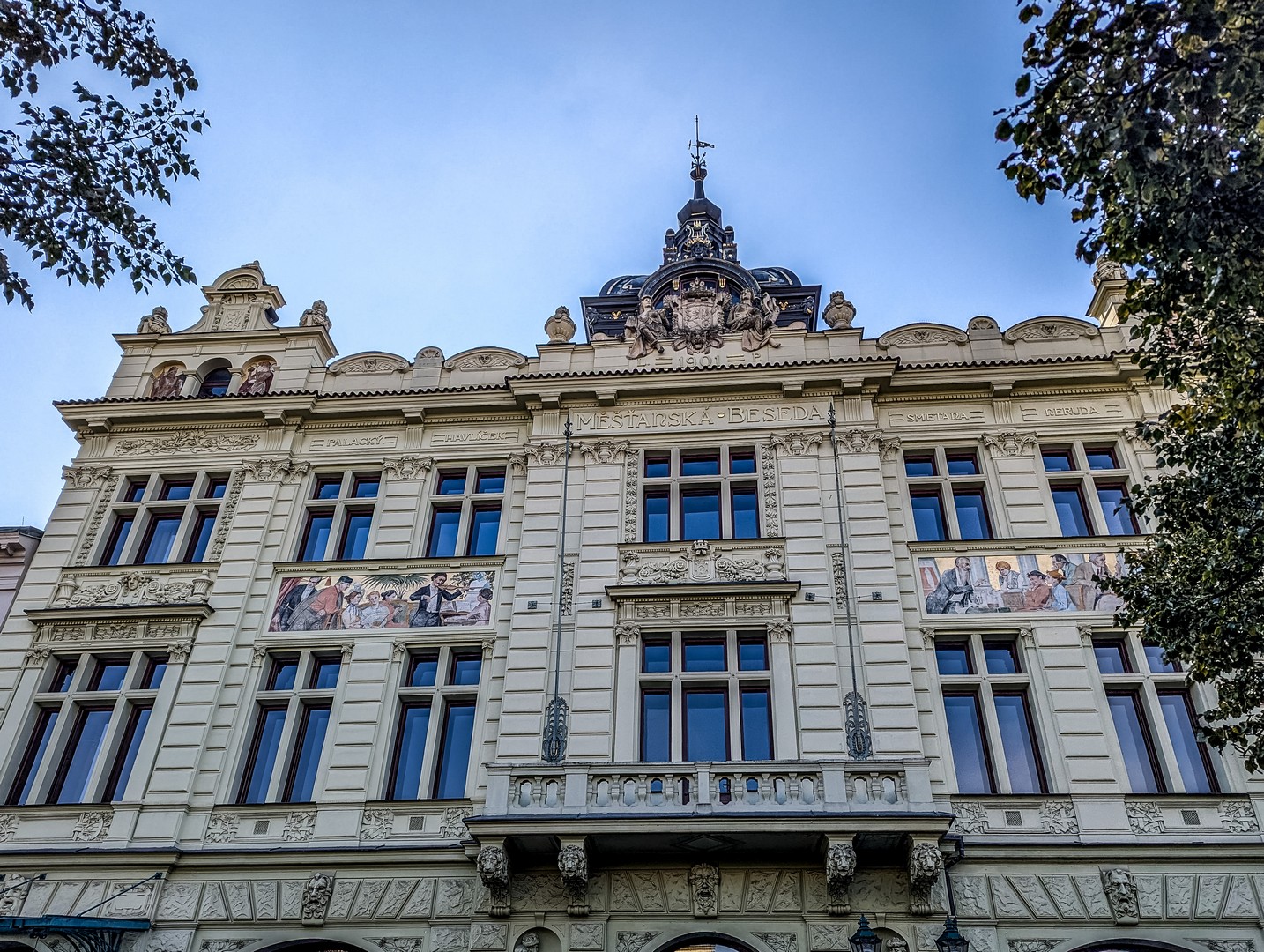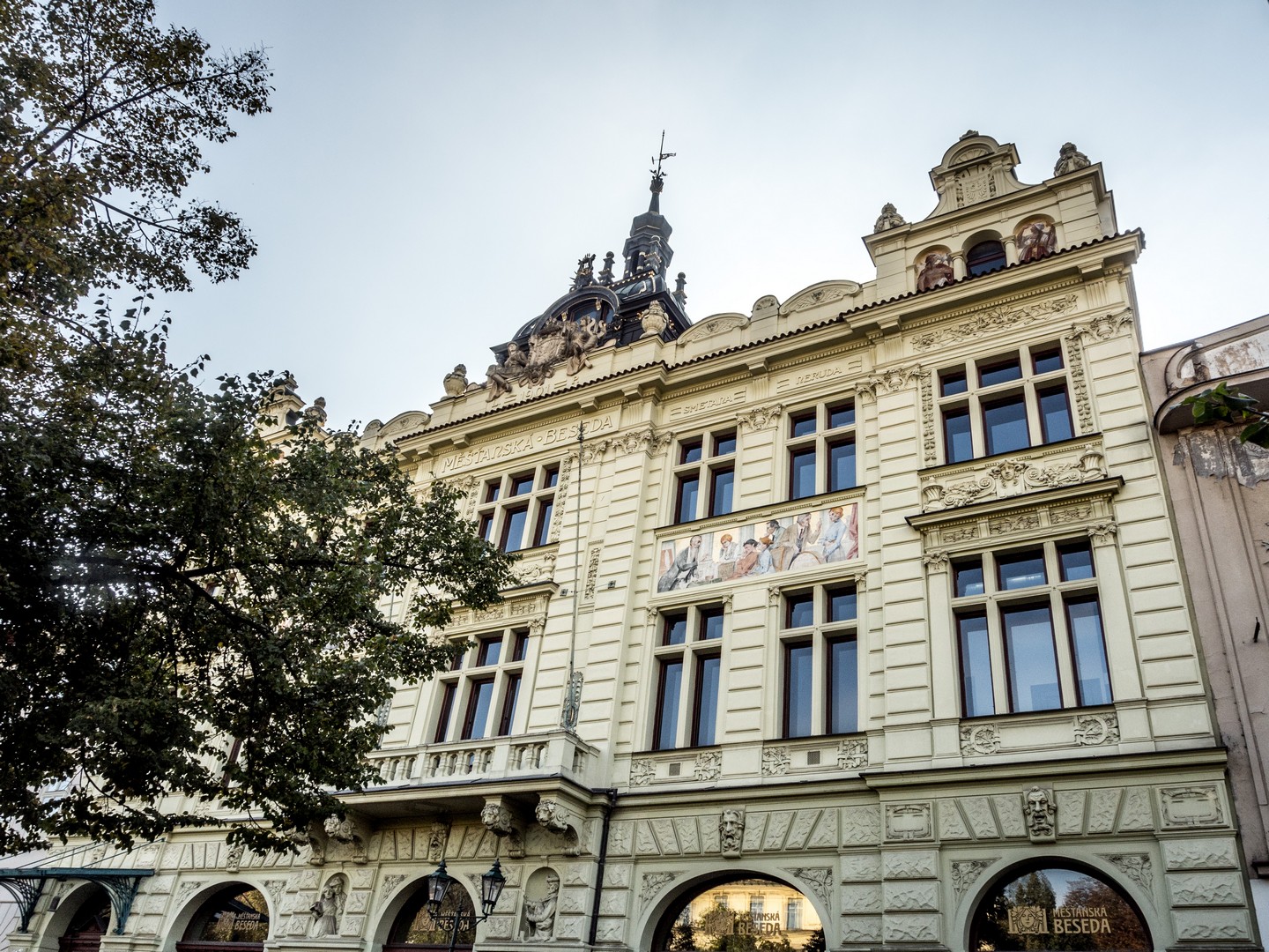 Un peu plus loin, le Burghers’ Hall, l’une des plus belles façades de la ville, se distingue par ses fresques Art nouveau célébrant le savoir et la culture. Bien des évènements (concerts, festivals, bals, réunions…) se sont tenus et se tiennent encore entre ses murs et j’aurai adoré visiter les lieux. Si le plumage se rapporte au ramage, il doit être merveilleux (je suis allée voir les photos, il l’est). Vous pourrez en avoir un avant-goût au restaurant Beseda 1901, au rez-de-chaussée. J’ai failli y aller boire un café, mais malheureusement, il ne me restait qu’une demi-heure pour compléter ma visite de Pilsen. La rue mène ensuite à un petit poumon vert marquant les limites de la vieille ville, là où se dressaient autrefois les murailles de défense : le Circuit des jardins de la ville, une chaîne de parcs et de jardins qui ceinture cette partie de Pilsen. Les jardins de Smetana et de Kopecký longent le Grand Théâtre et l’impressionnant Musée de Bohême occidentale (que je n’ai pas eu le temps de visiter).