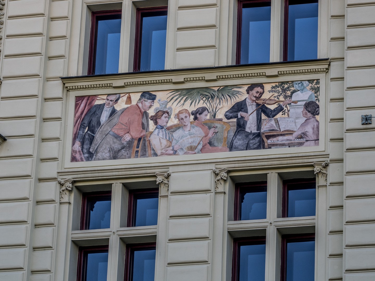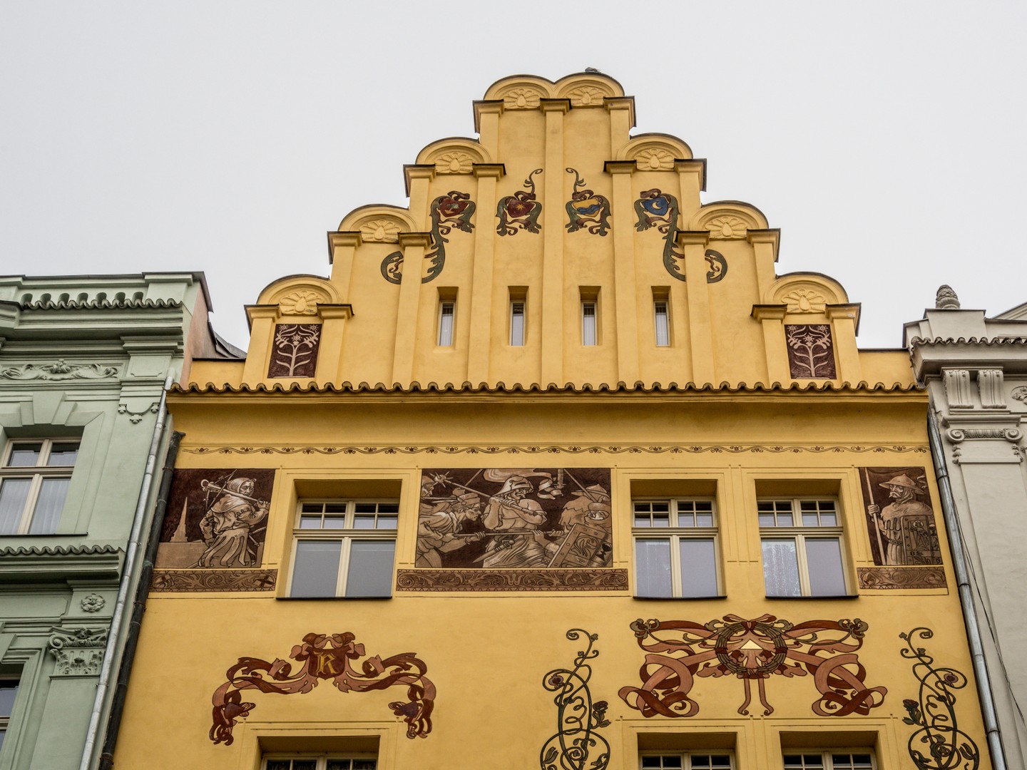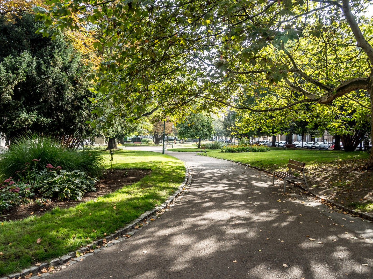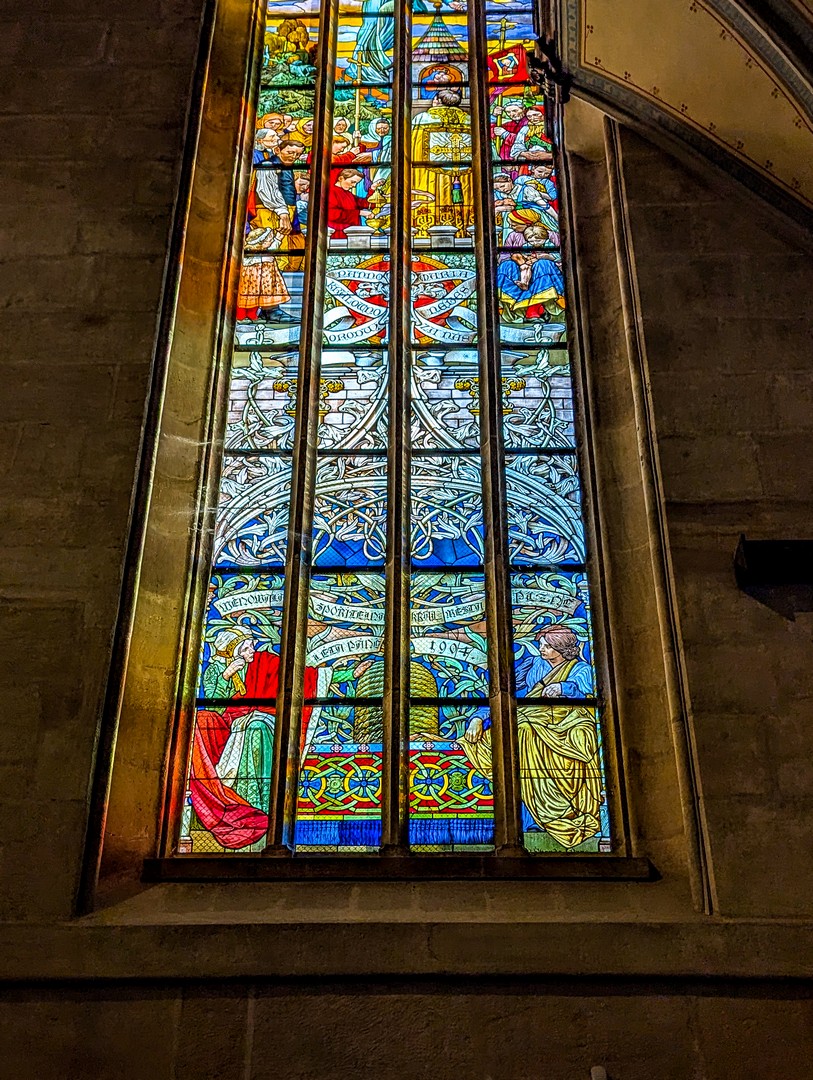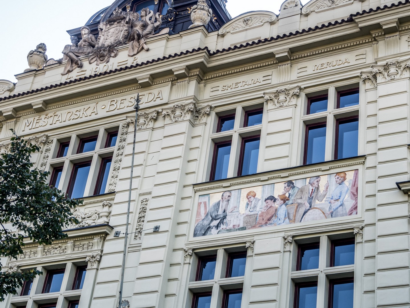 Un peu plus loin, le Burghers’ Hall, l’une des plus belles façades de la ville, se distingue par ses fresques Art nouveau célébrant le savoir et la culture. Bien des évènements (concerts, festivals, bals, réunions…) se sont tenus et se tiennent encore entre ses murs et j’aurai adoré visiter les lieux. Si le plumage se rapporte au ramage, il doit être merveilleux (je suis allée voir les photos, il l’est). Vous pourrez en avoir un avant-goût au restaurant Beseda 1901, au rez-de-chaussée. J’ai failli y aller boire un café, mais malheureusement, il ne me restait qu’une demi-heure pour compléter ma visite de Pilsen. La rue mène ensuite à un petit poumon vert marquant les limites de la vieille ville, là où se dressaient autrefois les murailles de défense : le Circuit des jardins de la ville, une chaîne de parcs et de jardins qui ceinture cette partie de Pilsen. Les jardins de Smetana et de Kopecký longent le Grand Théâtre et l’impressionnant Musée de Bohême occidentale (que je n’ai pas eu le temps de visiter).