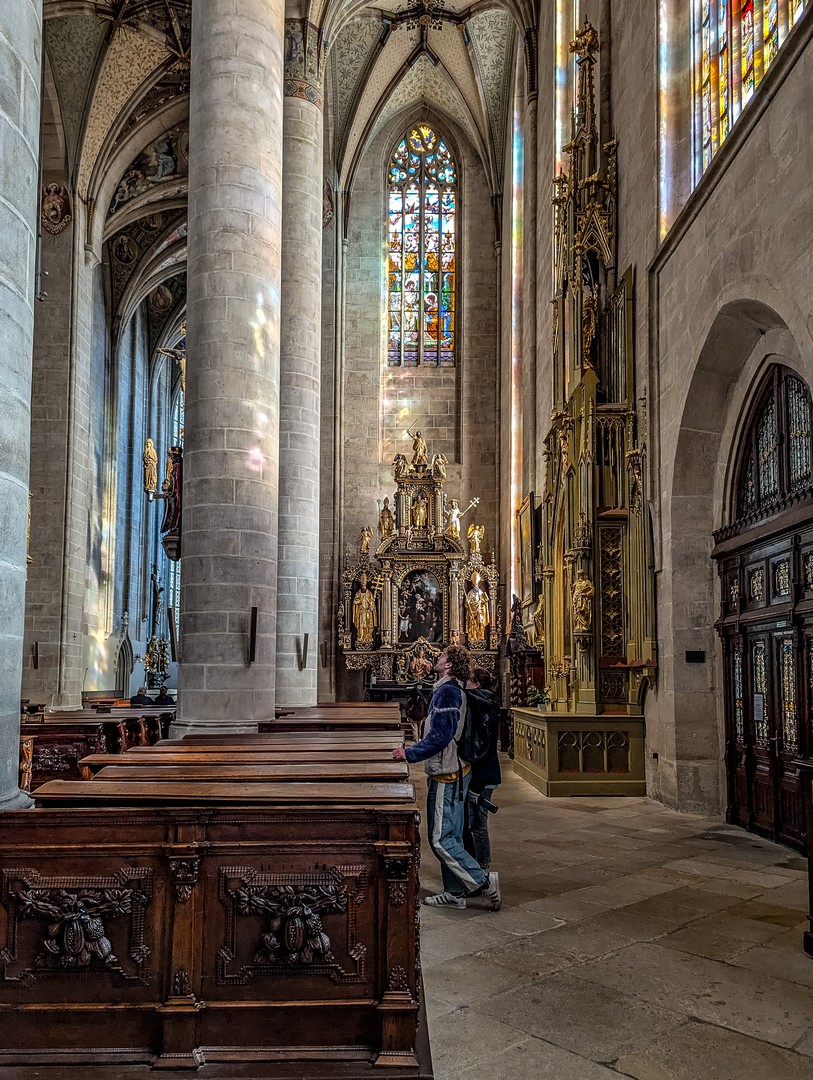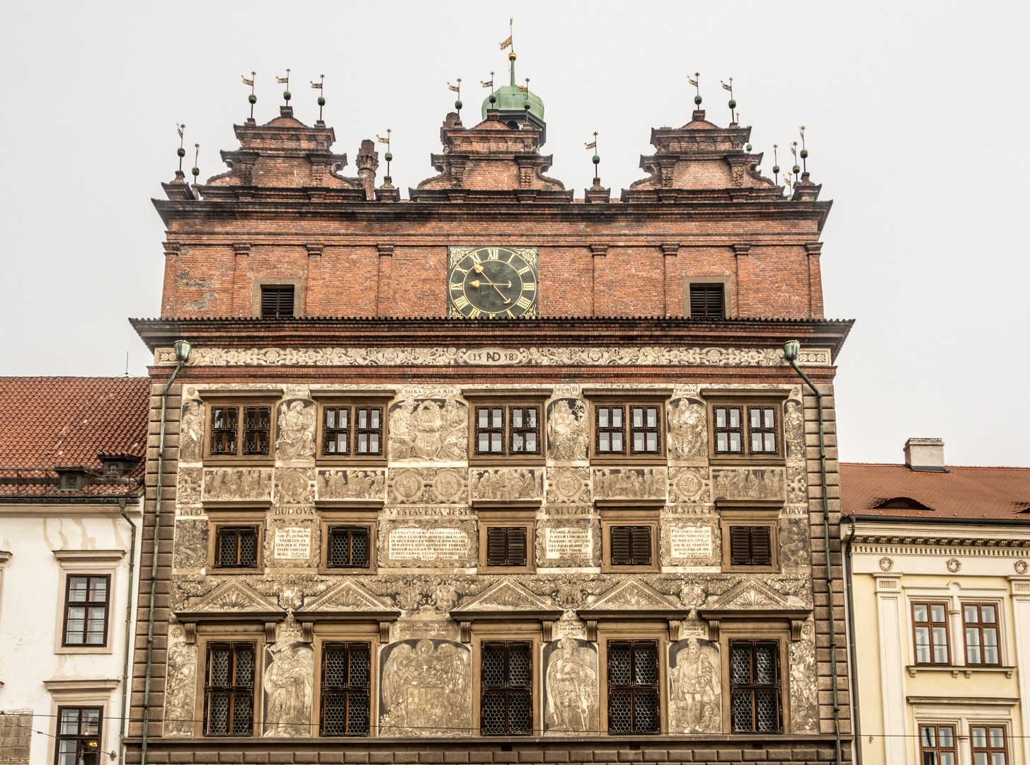 Je découvre une ville adorable, où les bâtiments baroques côtoient ceux de style éclectique du XIXe siècle, de l’Art Nouveau, voire de l’architecture brutaliste. Des façades bleues, roses, vertes, ornées de statues, de sgraffites ou de fresques murales lui donnent un air pimpant et prospère. Et pour cause : Pilsen a une riche histoire. Ville royale, et même impériale, puisque l’empereur Rodolphe II y installa un temps son siège tandis que la peste ravageait Prague, elle fut un bastion du catholicisme en Bohême.