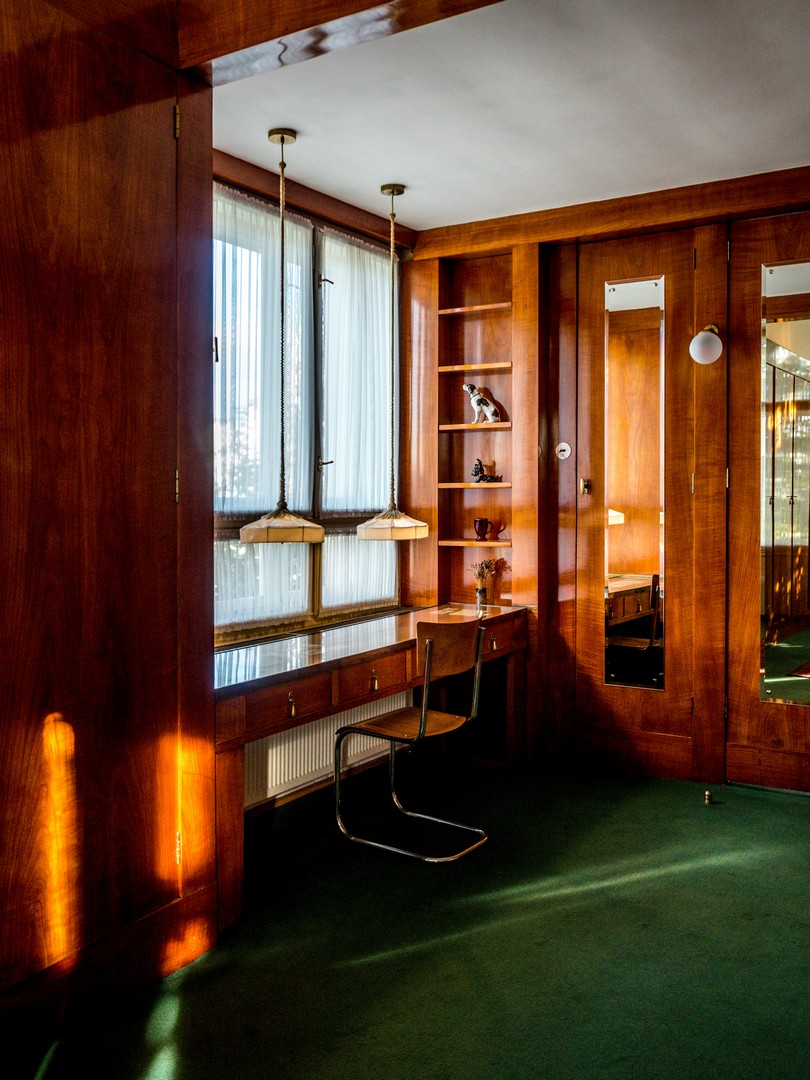 Son mot d’ordre : lumière, simplicité et fonctionnalité, comme cette penderie dans la chambre des Brummel, intégrée au mur, et qui semble y disparaître. L’espace est rythmé par les jeux de couleur et de hauteur de plafond, une véritable signature de Loos.