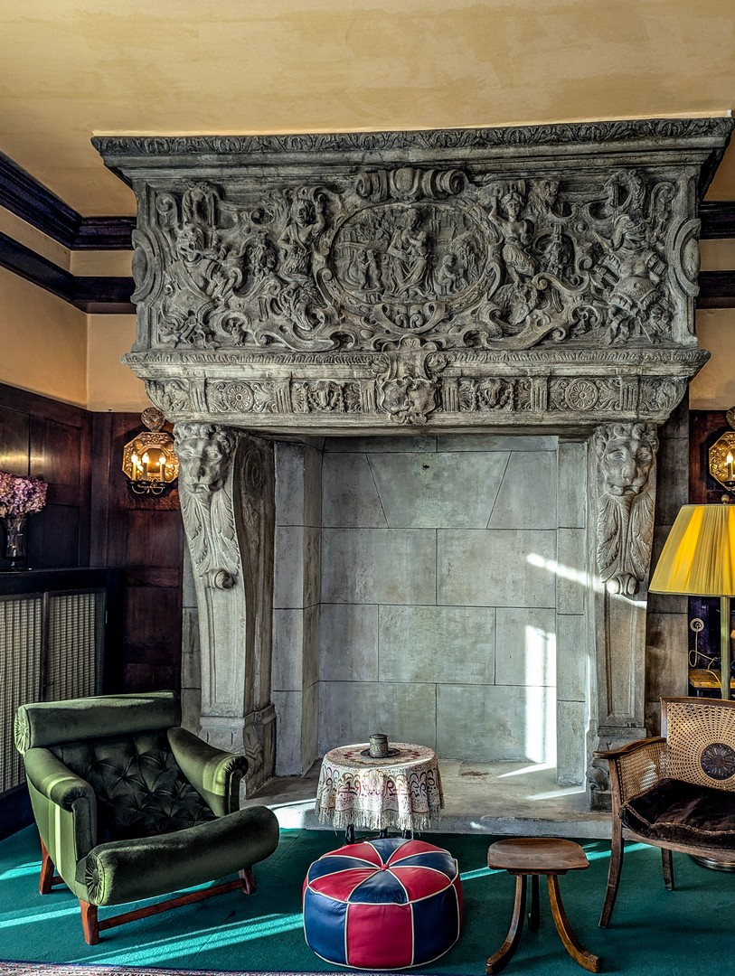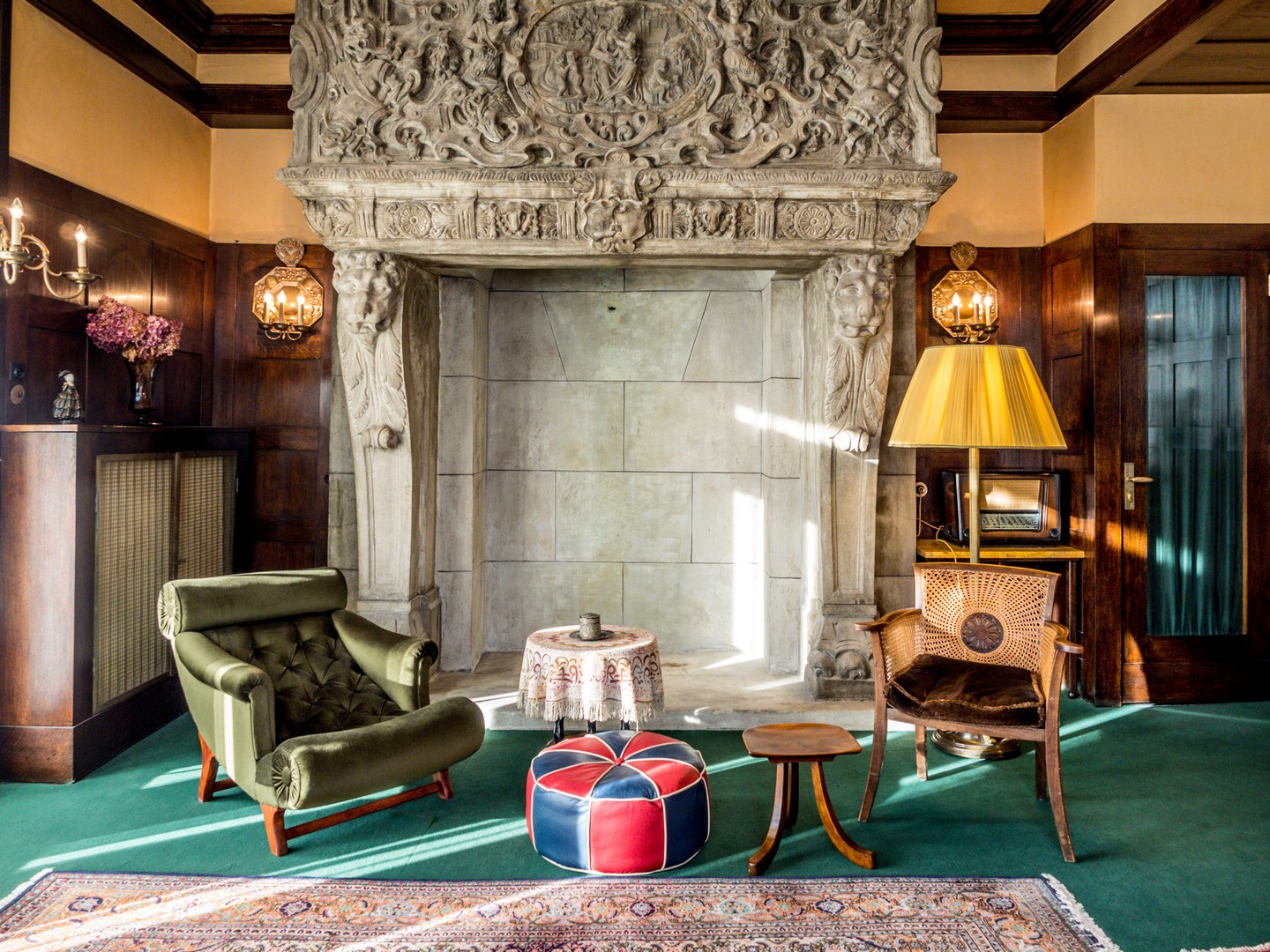 La seule véritable « folie » de l’appartement est la monumentale cheminée en béton du salon, reproduction d’un modèle de la Renaissance.