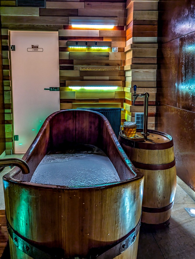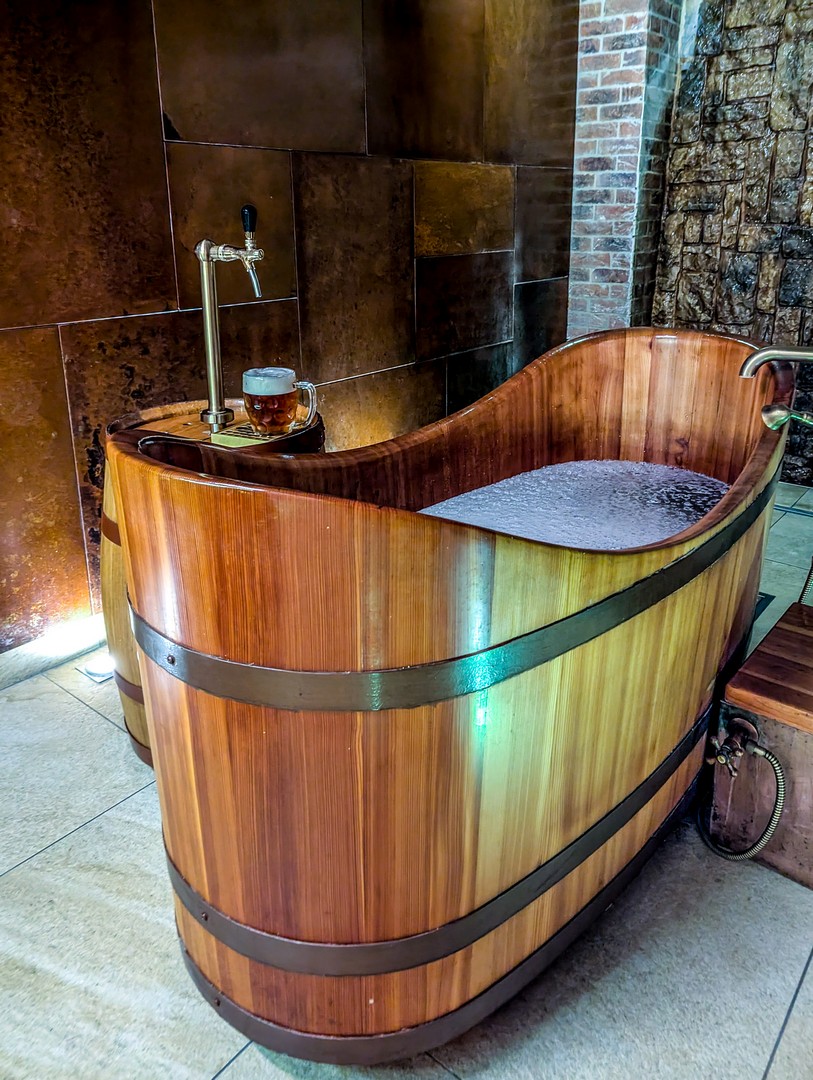 Après tout ça, place à la détente ! Les ingrédients de la bière sont riches en vertus pour la peau et la relaxation. D’où le concept des beer spas — et évidemment, impossible de ne pas tester ! Direction la périphérie de Pilsen, au Purkmistr Beer Spa, une ferme-hôtel-restaurant qui s’en est fait une spécialité.