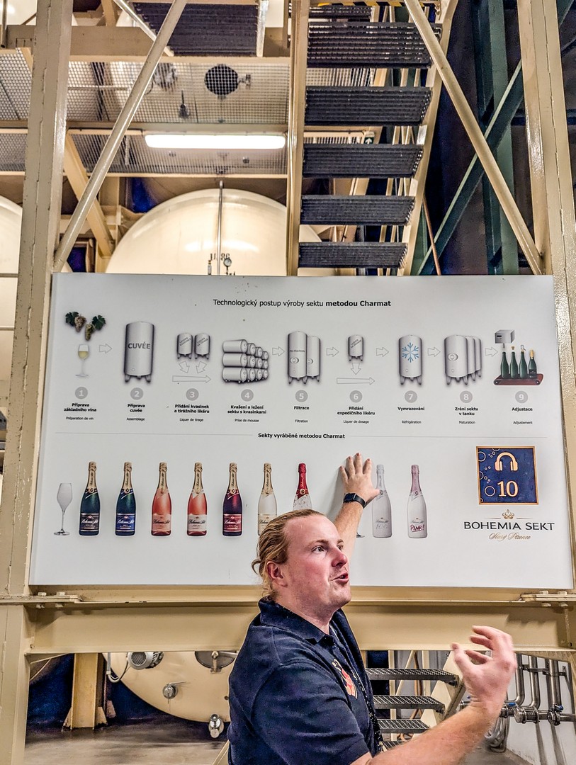Si vous ne connaissez rien à la fabrication des vins à bulles, tout vous sera révélé ici, d’autant que Bohemia Sekt utilise les deux méthodes (traditionnelle et Charmat) pour ses cuvées. Avec la méthode traditionnelle, la fermentation, qui produit l’alcool et le CO₂ qui donnent les bulles, se fait en bouteille. Avec la méthode Charmat, elle se déroule dans de grandes cuves pressurisées, ce qui accélère le processus. Les cuvées les plus emblématiques de Bohemia Sekt sont élaborées selon la méthode traditionnelle. D’autres (comme certains produits destinés à être mixés) le sont avec la méthode Charmat.