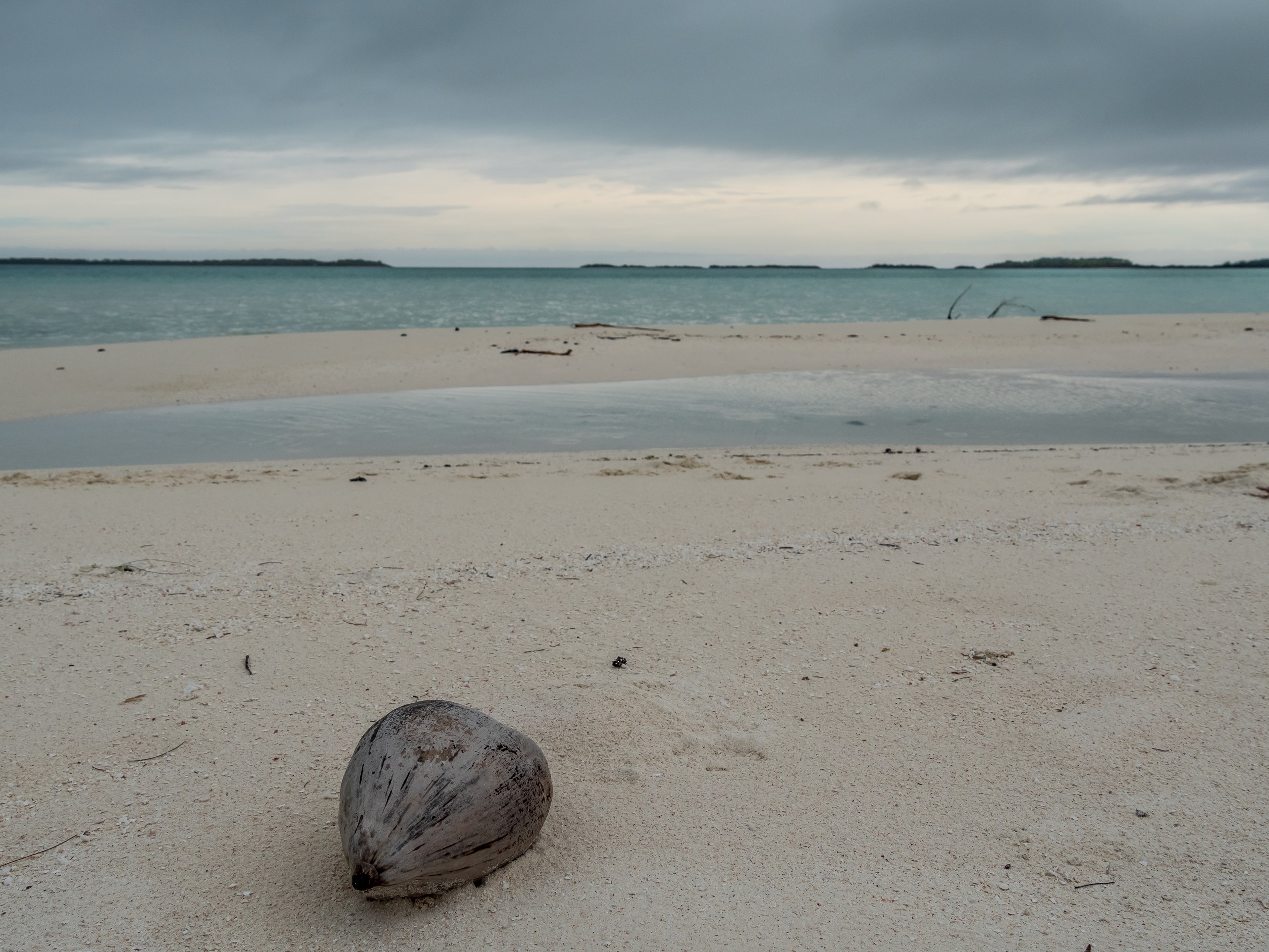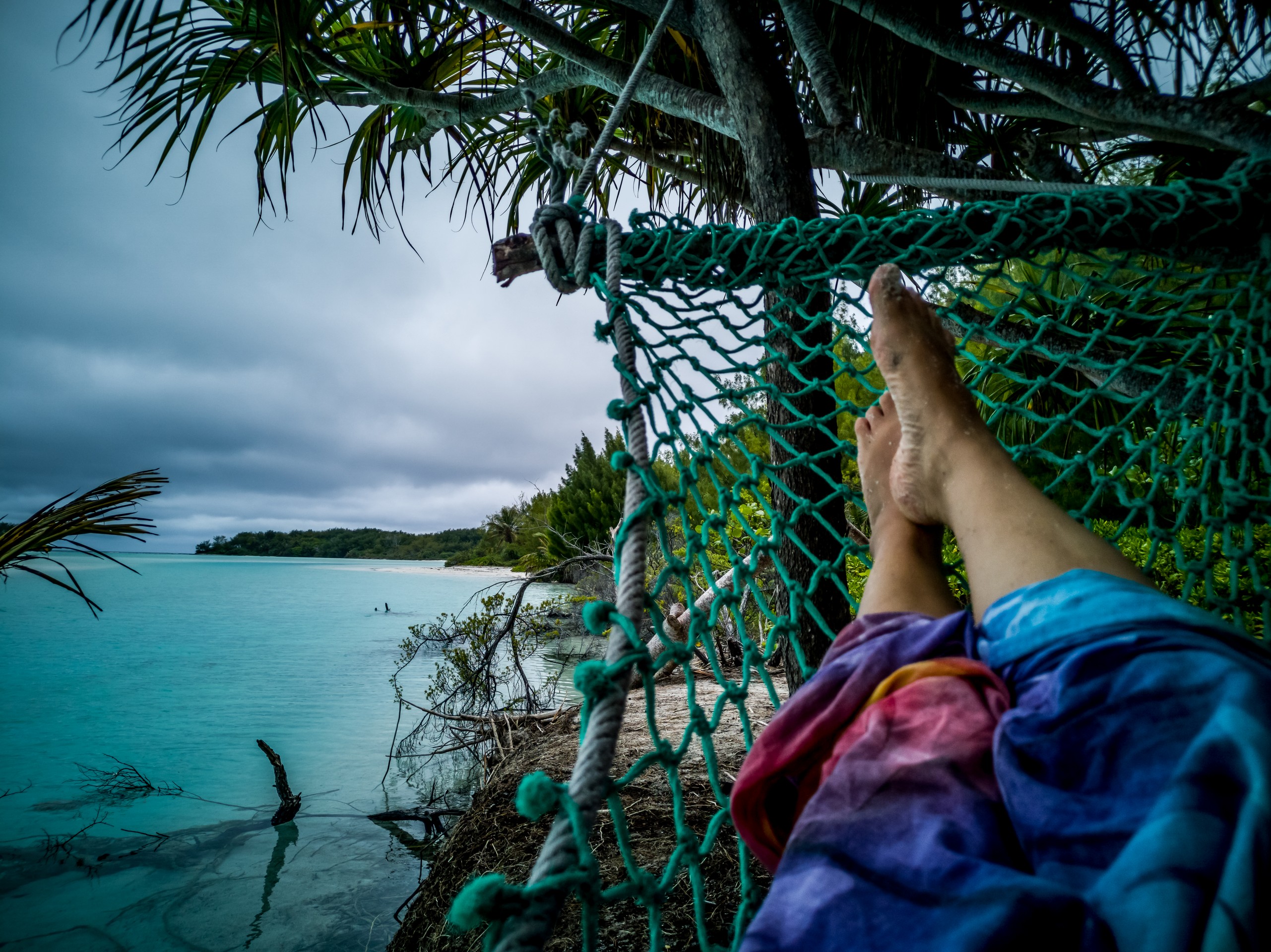 Comment t’expliquer cet endroit qui semble hors du réel, Lectrice, Lecteur où l’on entend que le vent, les vagues, l’océan et éventuellement un oiseau ? Tu croyais être au bout du monde ? Attends d’être arrivé/e sur un motu ! Même si je ne suis pas seule (un couple venu de Tahiti et une mère et son fils voyageant ensemble sont aussi de la partie), on y attrape comme un sentiment d’abandon. A la fois dans le sens d’être laissé à soi-même mais aussi, d’abandon de soi, de toutes les convenances, de toutes les règles… Bref, on a envie de courir nus de se rouler dans le sable, d’ouvrir une noix de coco et sentir son eau sur sa langue et de nager, un petit harpon à la main, pour attraper quelques poissons qu’on fera griller. Fini les problèmes d’argents, de loyer, de boulot… Et je m’étonne moi-même de la vitesse à laquelle ces pensées me viennent ! Sauf que quand vient l’orage, c’est beaucoup moins drôle.
