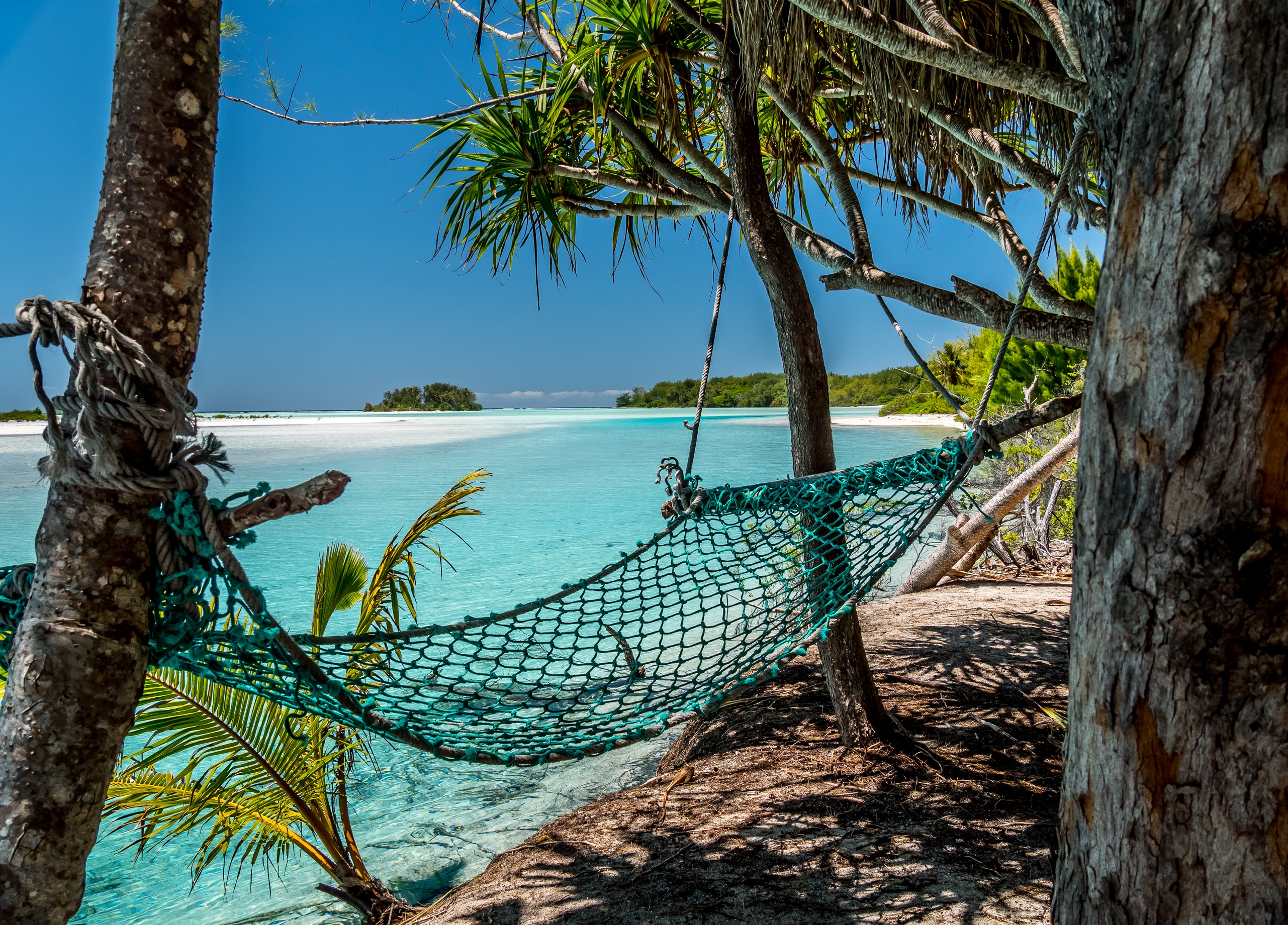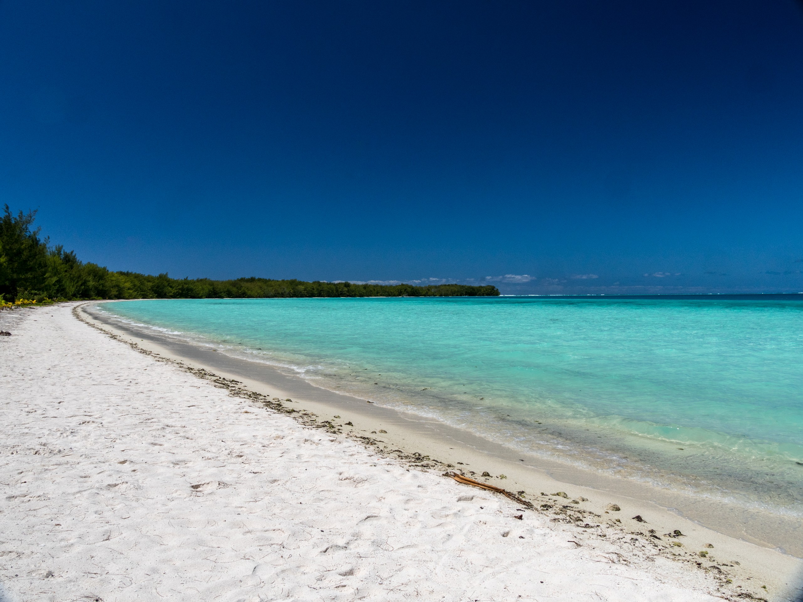 Ce ne sera que partie remise puisque deux jours plus tard, motivée par une météo au beau fixe, je décide d’y retourner. La tentation était trop forte et l’envie de faire de belles photos aussi. Et quand j’arrive sur le motu, je ne suis pas la seule : Claire et Félix aussi sont de retour, ainsi qu’un couple ch’ti qui voyage au long cours et loge à Raivavae pour quelques mois. Si le Motu Piscine était déjà beau sous un ciel chargé, que dire quand le soleil est de sortie ? C’est un véritable festival de bleus et de verts. Les couleurs sont tellement intenses que les yeux ont du mal à le supporter. Comme si on était transporté.e dans un endroit qui ne serait pas de ce monde et que nous serions à peine dignes de le contempler.