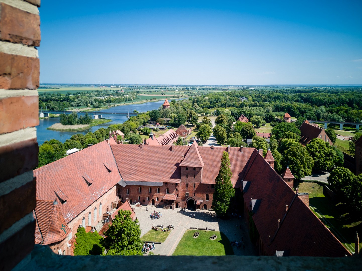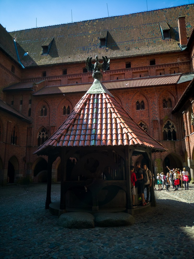 La première chose que l’on remarque en approchant la forteresse, c’est sa couleur rouge. Pas étonnant donc que le style de construction de celle-ci soit appelé « gothique de brique ». La deuxième chose, c’est qu’il y a du monde pour la visiter. Nous sommes fin mai, la fin de l’année scolaire approchant, c’est l’époque des excursions scolaires et des élèves de tous âges se retrouvent un peu partout sur le site. Heureusement, celui-ci est assez grand que pour y dénicher des endroits calmes.