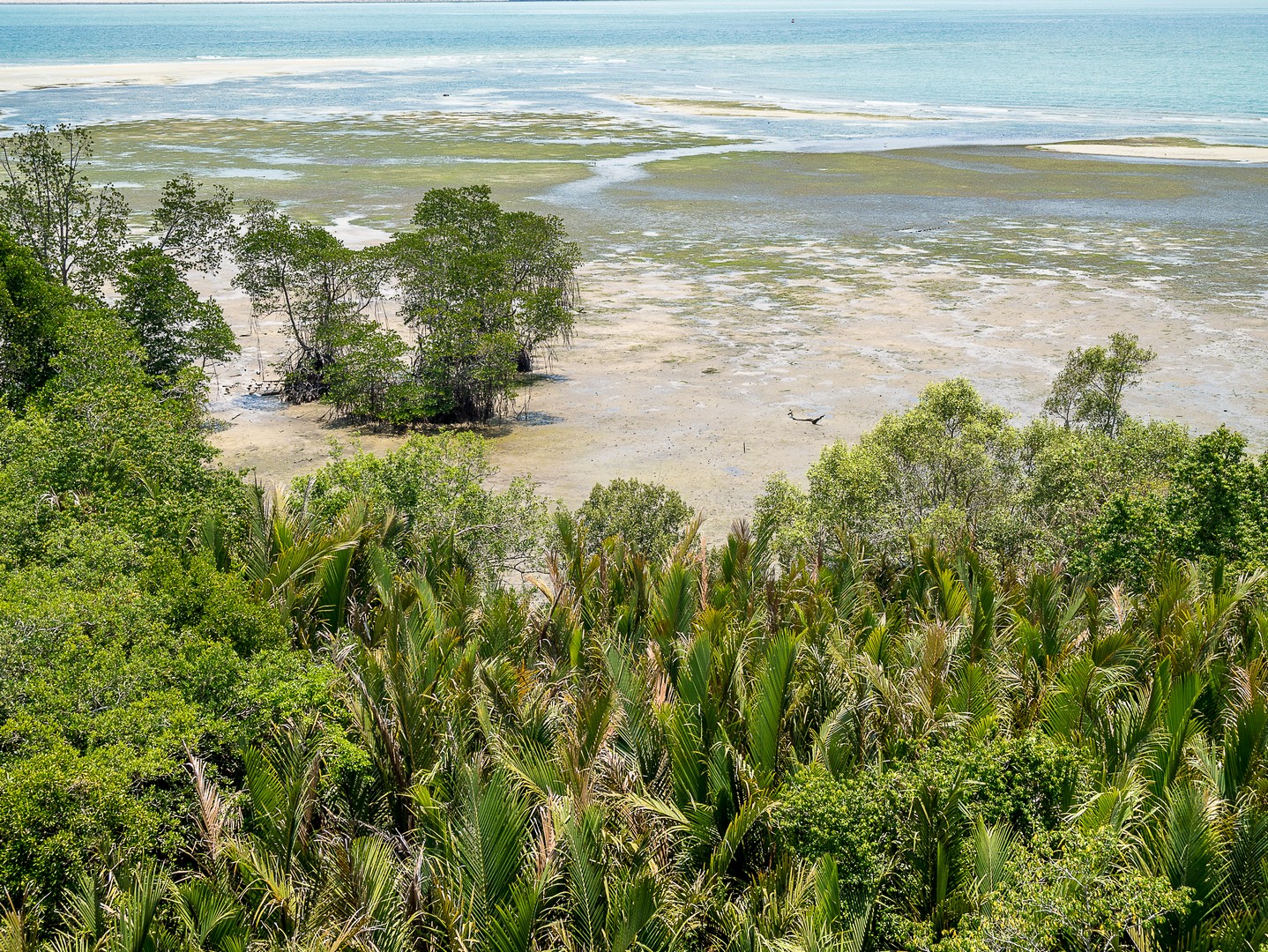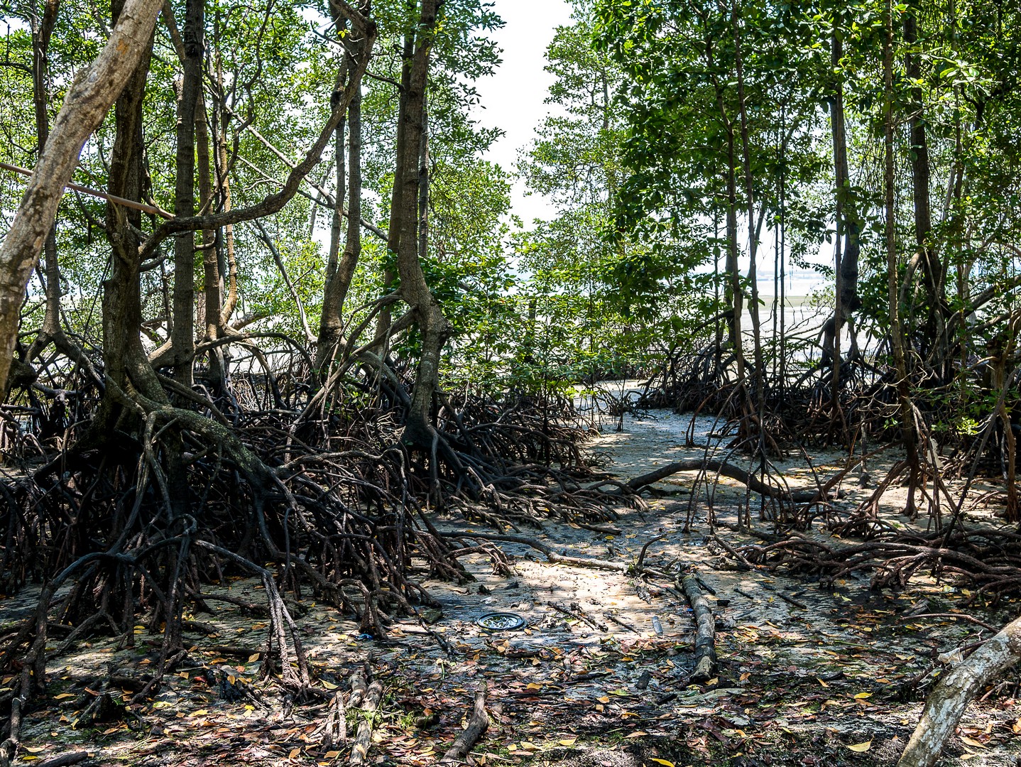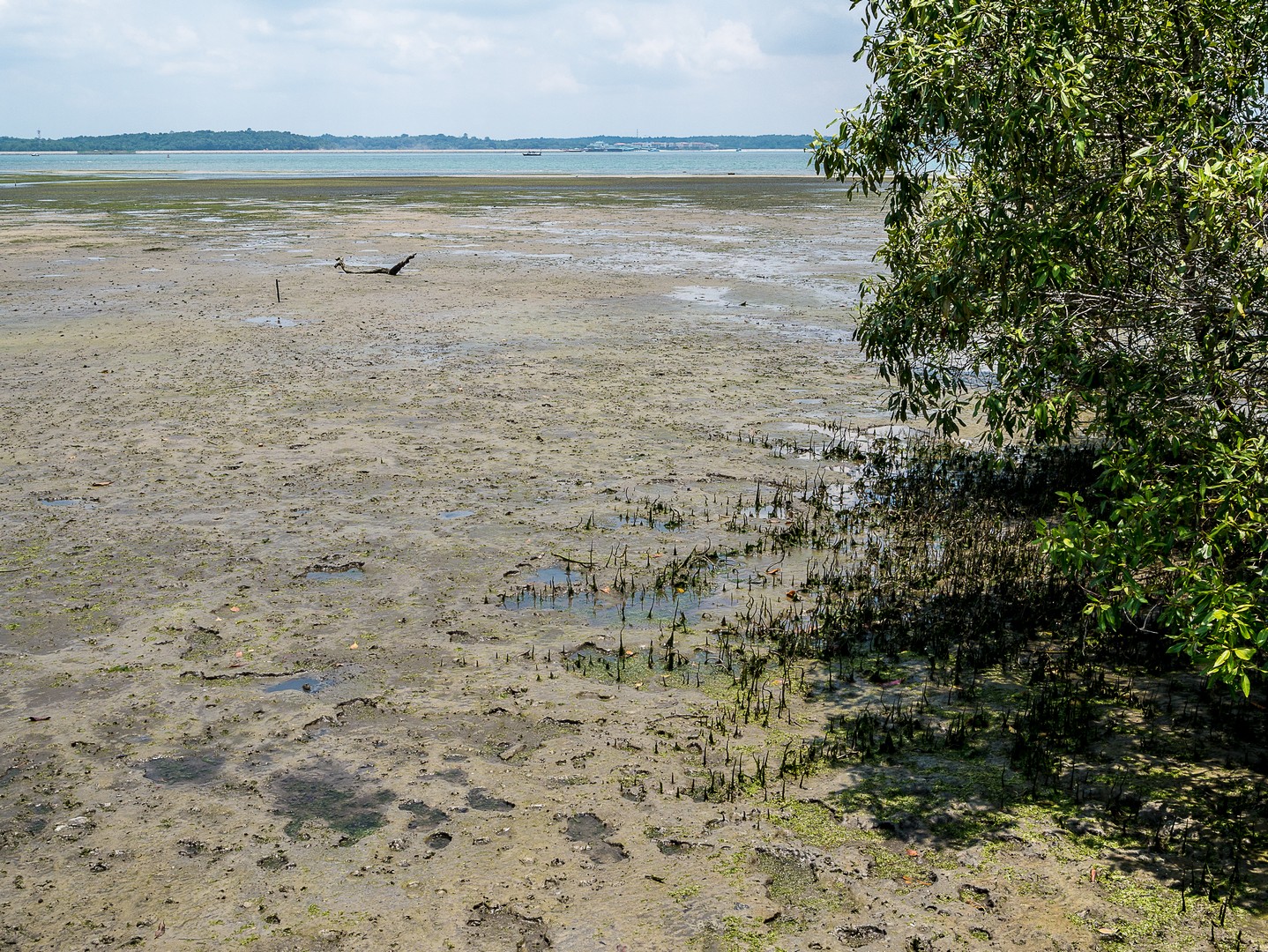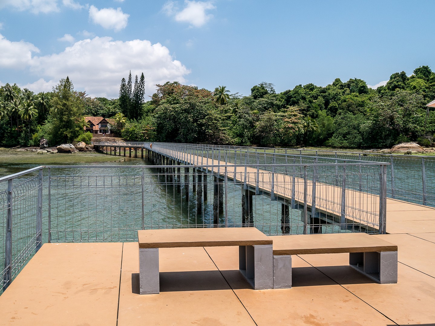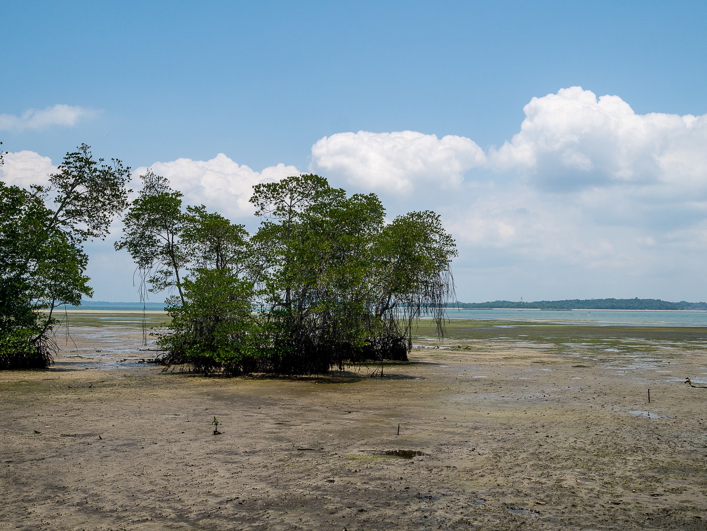 Le clou de la promenade en vélo, c’est la réserve de la zone humide de Chek Jawa, un riche écosystème entre mer et marais. Après avoir déposé mon vélo à l’entrée, je passe faire un petit tour au centre d’accueil, la « House N°1 », une maison des années 30 restaurée. Le style parfaitement européen de la maison est d’ailleurs tout à fait insolite sous les Tropiques (sans oublier la cheminée à l’intérieur… une cheminée alors que nous sommes quasi sur l’équateur).