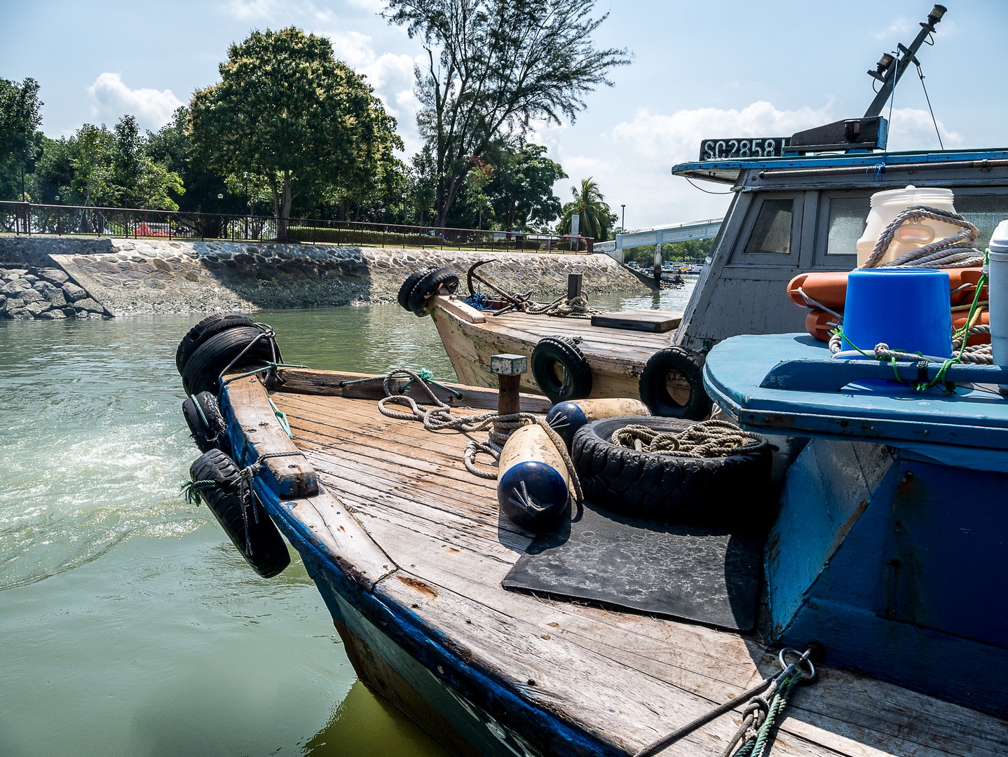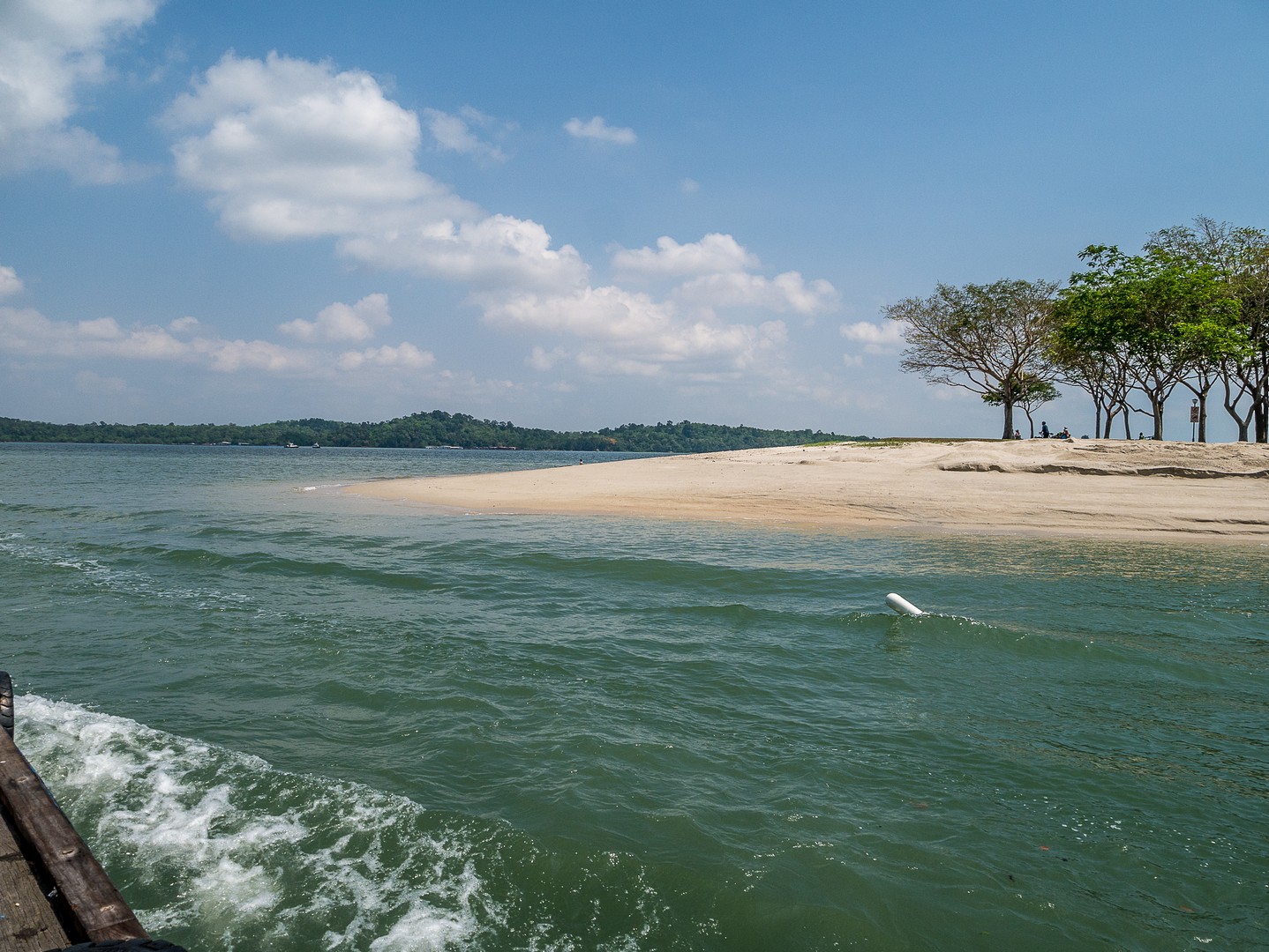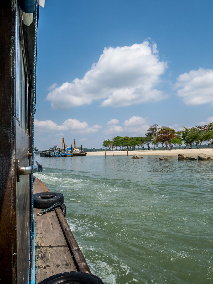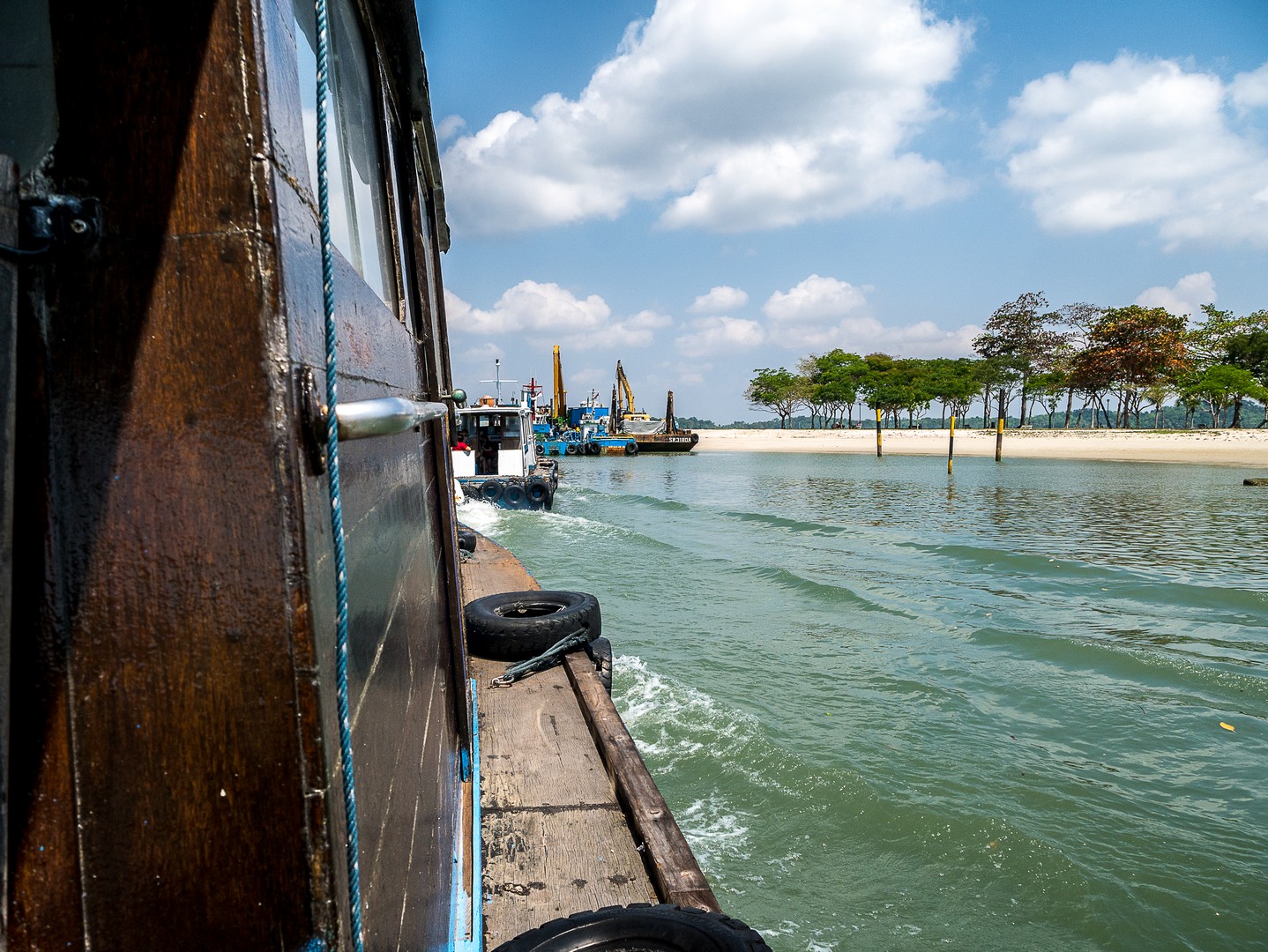 On embarque sur un bumboat, les petits bateaux d’une douzaine de personne qui relie la petite île à Singapour. Ticket : $3 singapouriens l’aller