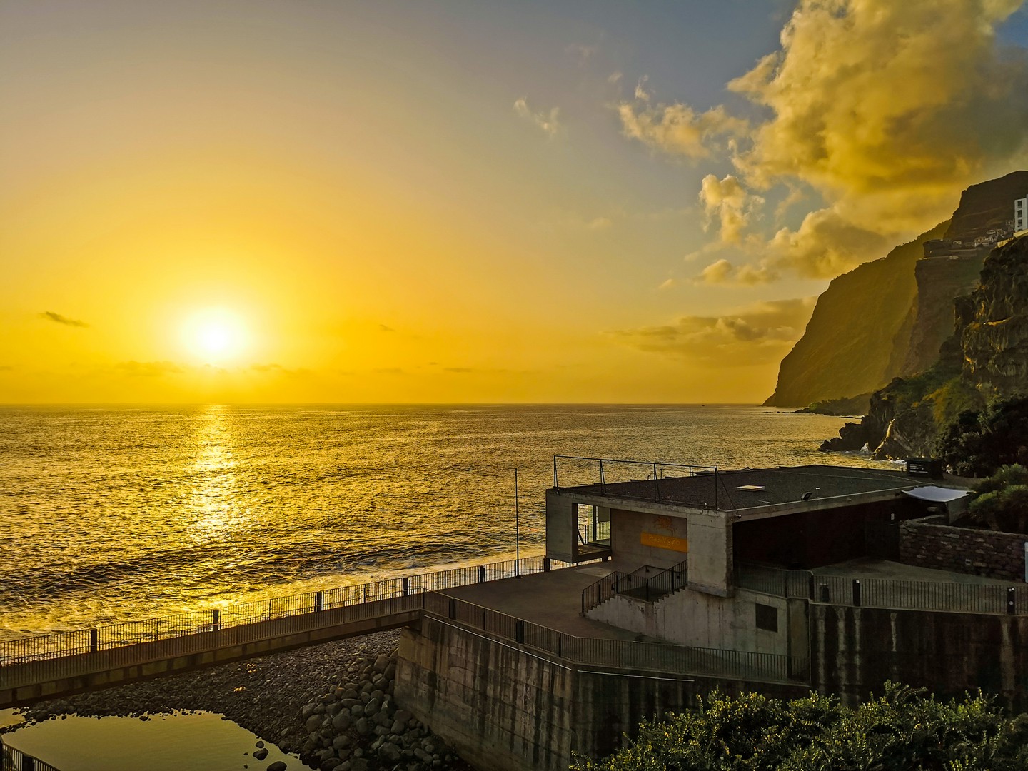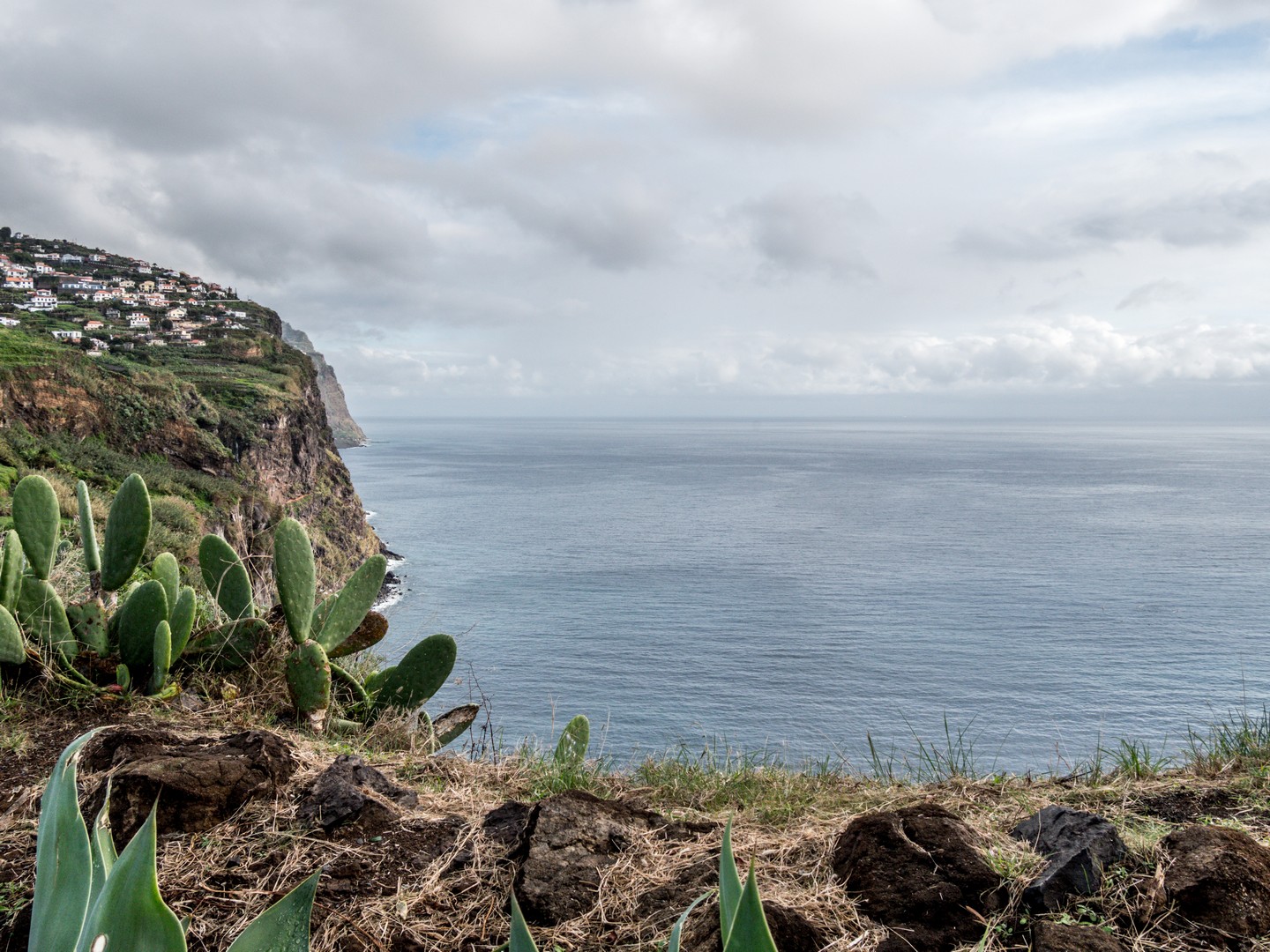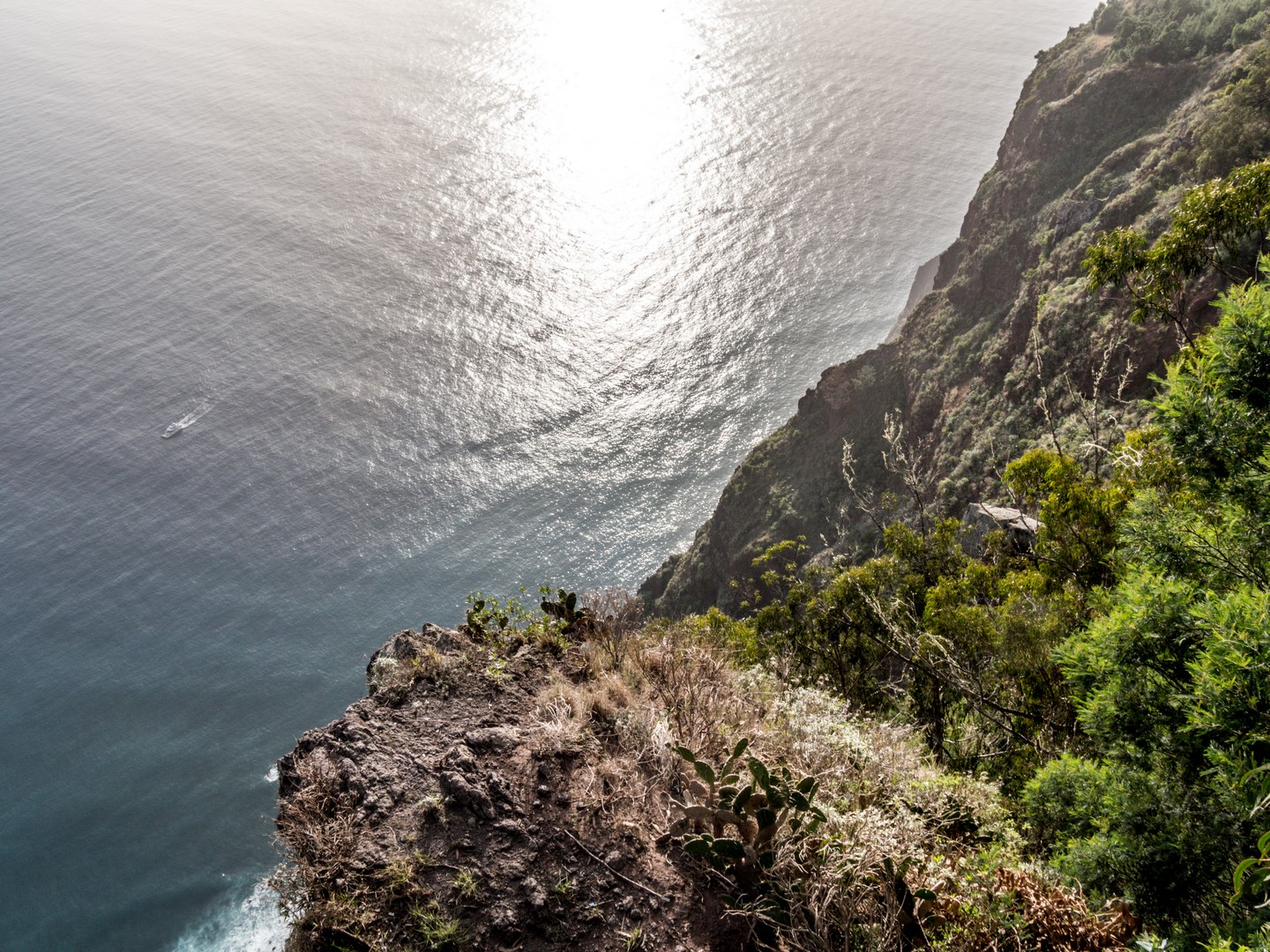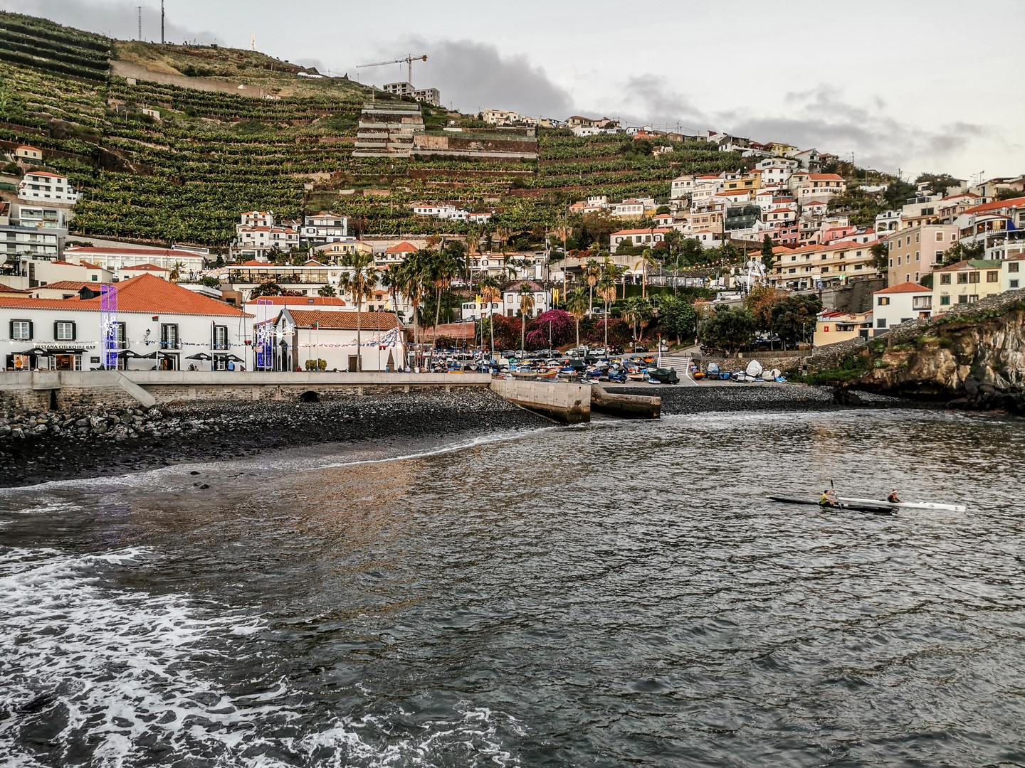 Après quelques arrêts intermédiaires pour prendre le temps d’observer ces cultures en terrasse, nous voilà arrivés à Cabo Girão. Deouis le haut de la falaise, la vue sur l’océan, la petite ville de Câmara de Lobos et Funchal est une belle explosion de rétine. Petite gimmick pour les touristes (mais bien sympathique), un skywalk qui vous permet de marcher au-dessus du vide. C’est évidemment payant pour y accéder mais au prix de 2 €, ce n’est pas exagéré. Sinon, vous pouvez essayer de vous poser sur une table bien placée du petit café qui se trouve à côté. Je bois littéralement le paysage et alors que je suis tout là-haut, je ne peux pas m’empêcher d’envier les gens qui sont eux, tout en bas, à bord des catamarans, là-bas tout en bas, et qui rentre d’une expédition pour observer les cétacés, une chouette activité à réaliser en famille, les eaux de Madère étant fréquentées par plusieurs espèces de dauphins (dont le globicéphale) et baleines (comme le cachalot). Et ce qu’il y a de cool à Madère, c’est que différentes espèces visitent les alentours de l’île à différentes périodes de l’année. Vous aurez donc la chance de voir au moins des dauphins. Ces catamarans peuvent aussi vous emmener faire une sortie pour du snorkeling ou de la plongée. Malheureusement, cette expérience n’était pas à notre programme et après avoir dégusté une petite Coral au café, nous reprenons la route pour Câmara de Lobos.