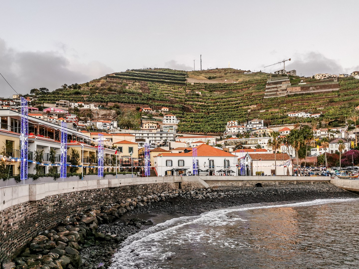 Outre l’anecdote, Câmara de Lobos est charmante, faite d’étroites rues pavées bordées de petits bars, de restaurants et de magasins. C’est mignon et accueillant. Devant l’église Saõ Sebastiaõ, une immense crèche est installée, noyée dans les poinsettias rouges et blancs. Comme à Funchal, l’étable de Jésus y est représentée, entourée de scènes de la vie quotidienne de jadis et même d’une fête de rue mais aussi de ces fameuses maisons à toits pointus qui descendent jusqu’au sol. Typiques de la région de Santana, dans le nord de Madère, je n’aurai pas la chance d’en voir en vrai lors de ce voyage.
