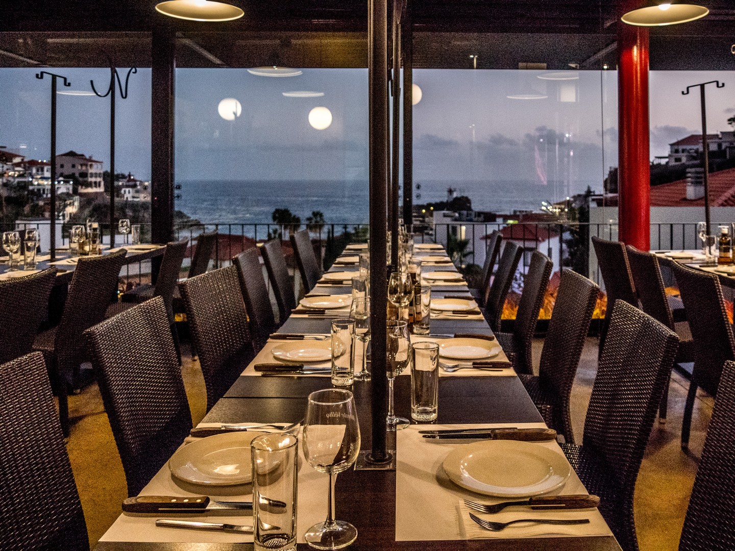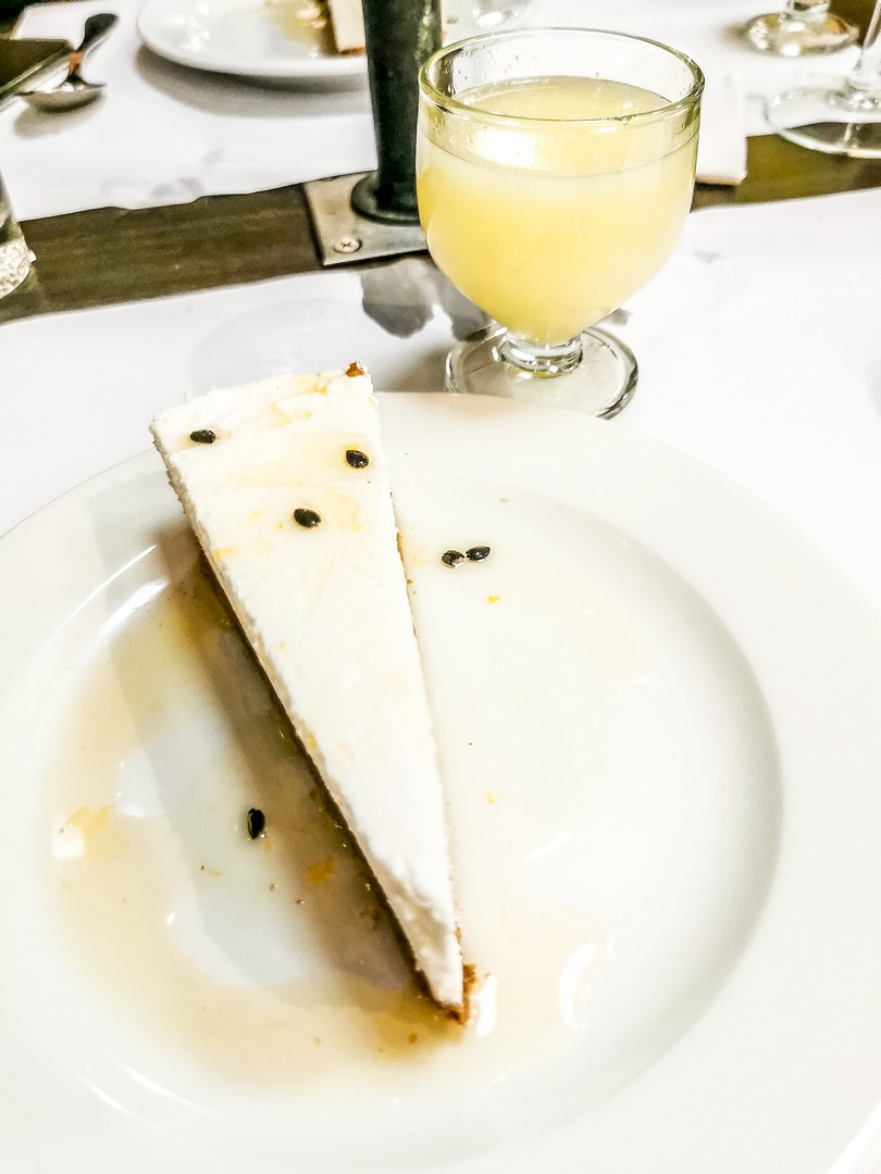 Etonnamment (ou pas, je crois que c’est un peu de ma faute vue ma révulsion face aux fruits de mer), c’est dans un restaurant à viande que nous allons manger (son établissement-frère, le Vila do Peixe, 100% poisson, est juste à côté). Situé sur les auteurs de Câmara de Lobos, les tables près des fenêtres offrent une vue de rêve sur le village et l’océan. Mais il n’y a évidemment pas que la vue qui compte ! Qu’est-ce qu’il y a au menu ? Eh bien essentiellement de la viande de bœuf de la région, maturée ou pas (d’ailleurs, on peut voir les carcasses en vitrine du resto) mais le poulet, l’agneau et le porc ne sont pas reste. Plein de pièces sont proposées en plat mais s’il faut vous conseiller quelque chose, ce serait de commander une brochette (churrasco). Une brochette taille-maxi que l’on sert suspendue à un objet qui ressemble à un porte parapluie. Et pour faire bien local, je conseille celle cuite au bois de laurier (on est à Madère). Tout cela est servi simplement avec des frites et de la salade. On accompagne le tout d’un petit rouge local et c’est un régal ! Pour terminer, une part de cheesecake, au fruit de passion, bien sûr !