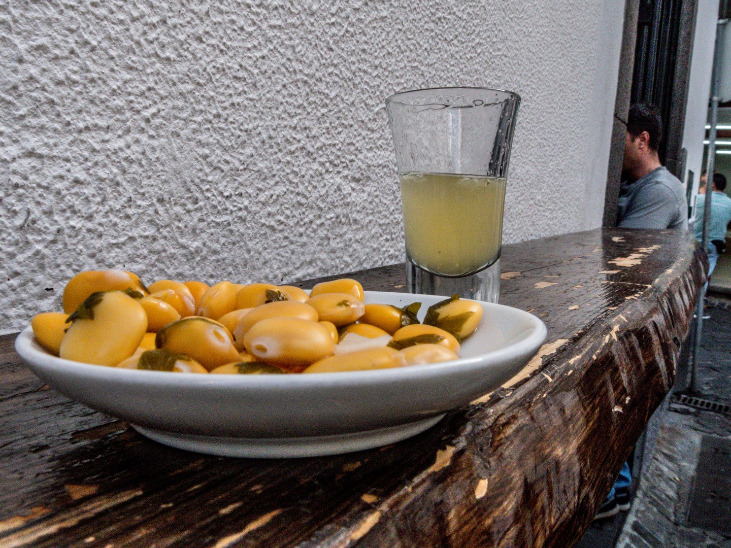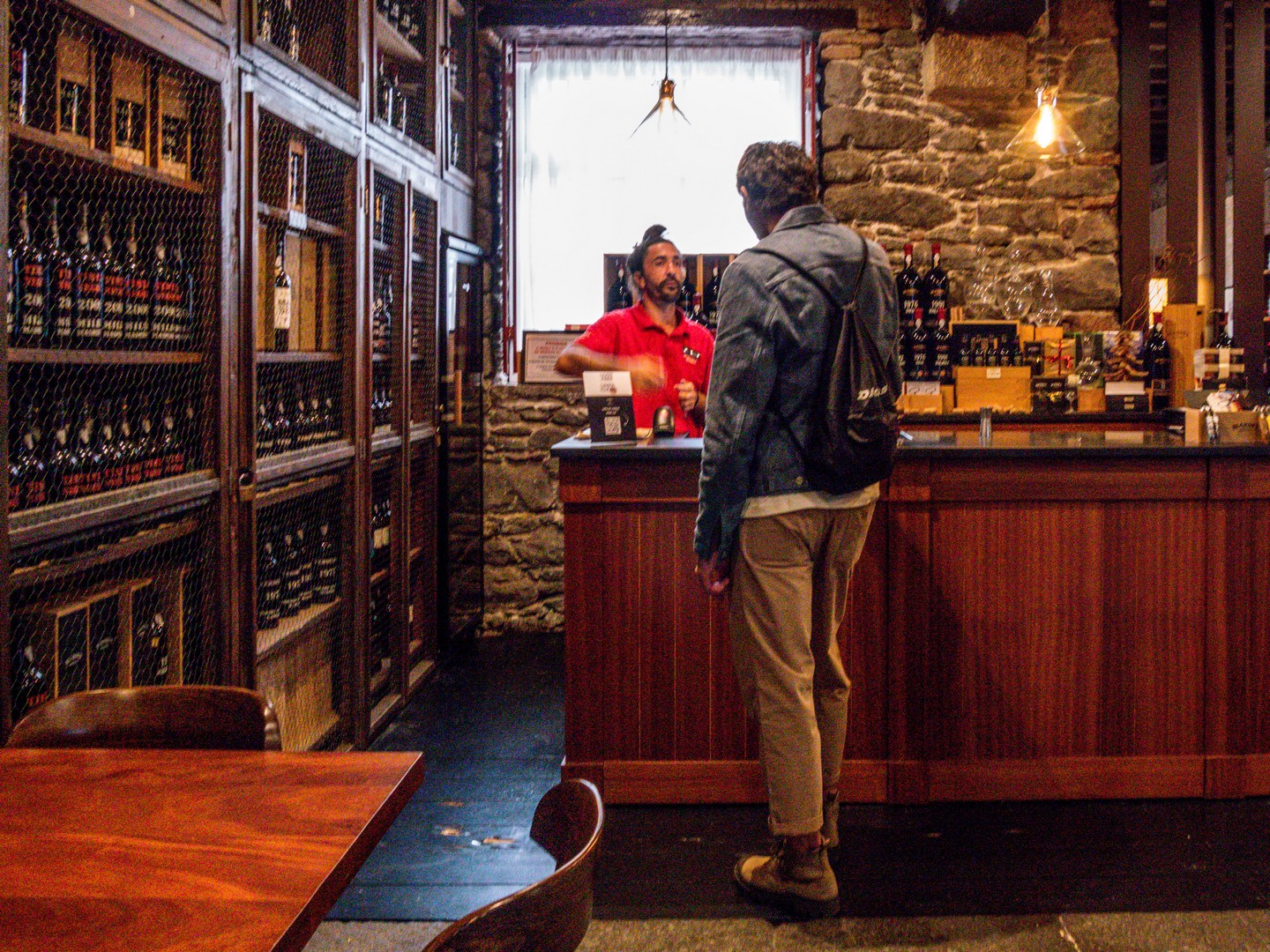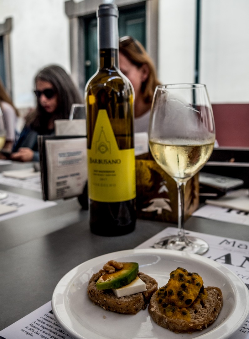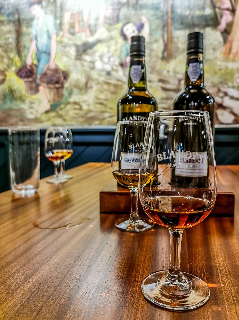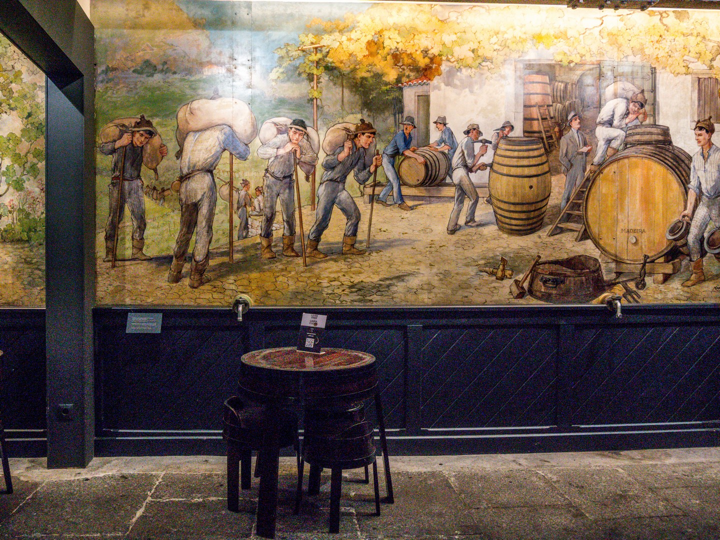 Quoi de mieux qu’une visite guidée au fil de sa gastronomie pour découvrir une destination ? Nous sommes pris en charge par Graça, de Madeira Wine Tour qui va nous emmener toute la matinée, et une partie de l’après-midi pour une balade à travers Funchal, rythmée par 9 délicieuses étapes C’est dans les Jardins municipaux que nous commençons notre exploration. Une jolie introduction à la nature exubérante de cette île. Même en plein mois de décembre, les fleurs restent abondantes. Au fur et mesure que nous traversons les jardins, Graça nous montre des arbres ou des buissons, mentionnent leurs mois de floraison… A chaque moment de l’année, ses fleurs. Mi-décembre, les hortensias fanent mais les poinsettias, les fameuses “roses de Noël”, poussent comme de la mauvaise herbe. Les oiseaux de paradis, fleurs importées d’Afrique du Sud, sont aussi au pic de leur floraison. Il est 10h et il doit faire une petite vingtaine de degrés, le soleil brille… J’ai l’impression de revivre après des semaines de météo pourrie sur la Belgique. L’air marin vient me titiller les narines. Tout à un air de vacances et les trottoirs faits de galets noirs et blancs me rappellent ceux de Lisbonne et de Rio. Je crois que je suis déjà en train de craquer ! Mais sans crier gare, nous voilà à notre premier arrêt : chez un producteur de vin de Madère.