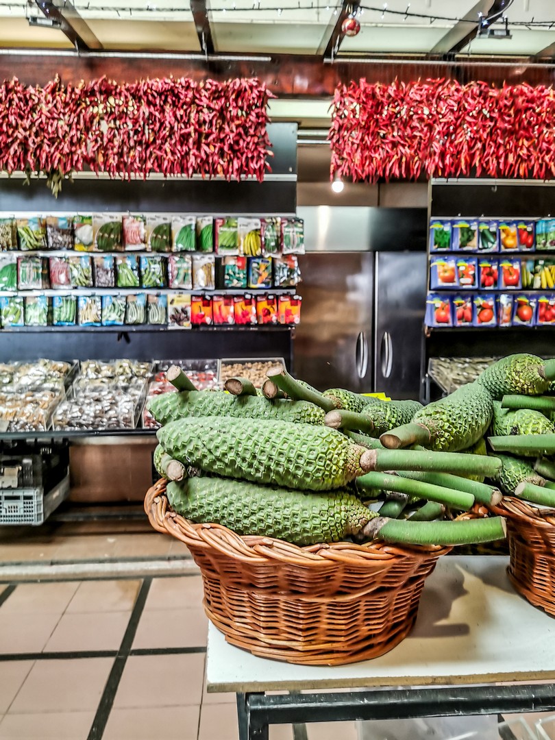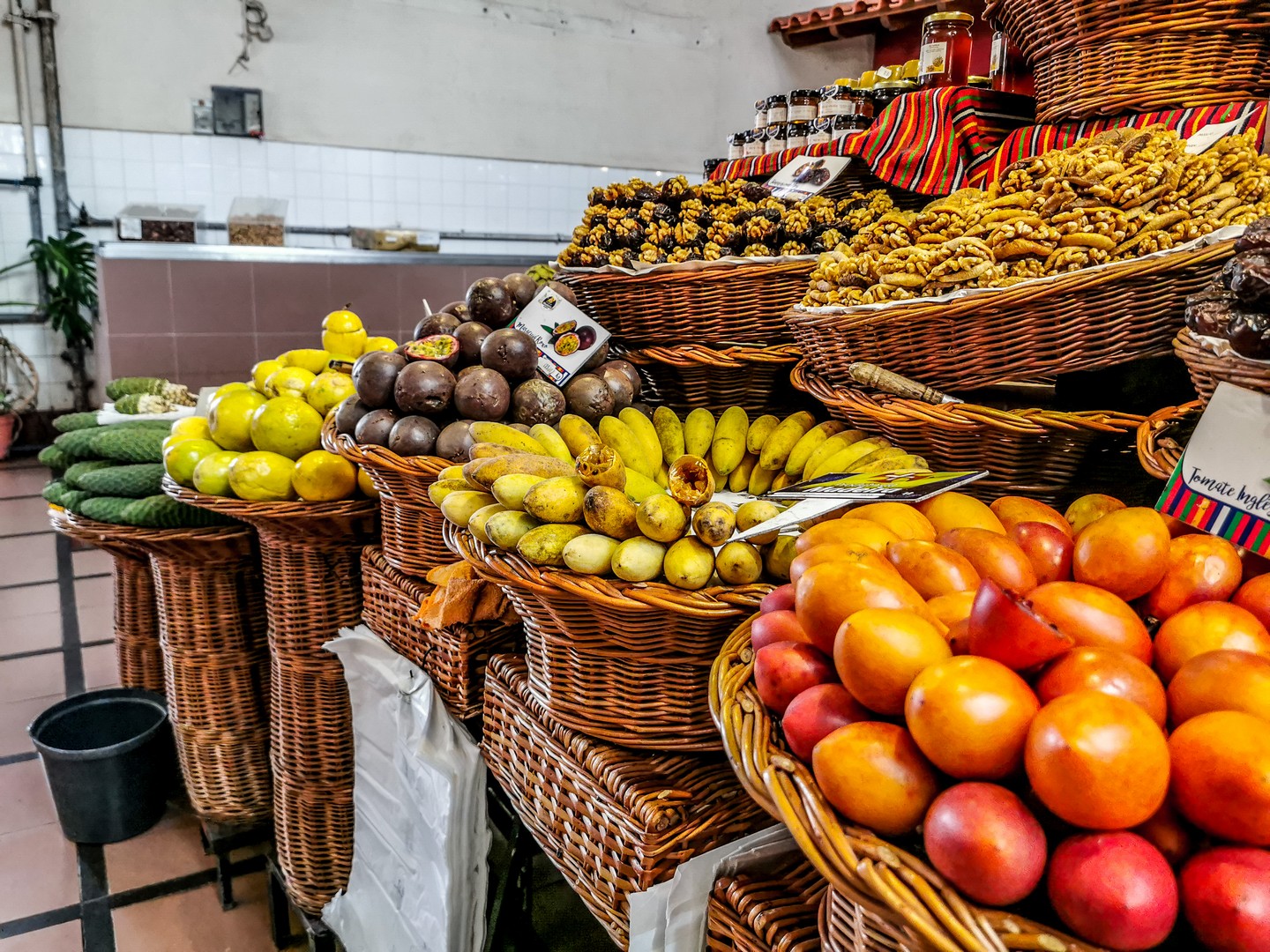 Si le fruit de la passion (maracuja), la banane (de petite taille et très sucrée) et le raisin sont les fruits rois, le climat subtropical permet de cultiver un nombre impressionnant de fruits que nous avons l’habitude voir (le kiwi, la mangue, la goyave, l’avocat, le fruit du dragon, la pomme et poire sur la côte nord…), Madère surprend avec le tamarillo (fruit de la famille des tomates), le cerisier du Brésil, l’anone (ou “banana maracuja”, qui ressemble à la banane mais est en fait un cousin du fruit de la passion) ou l’étrange fruit de la Monstera deliciosa (oui, oui, la plante aux grosses feuilles dentelées qui fait fureur dans les intérieurs depuis quelques années), qui à la taille d’un concombre et un goût entre la poire, l’ananas et la banane.