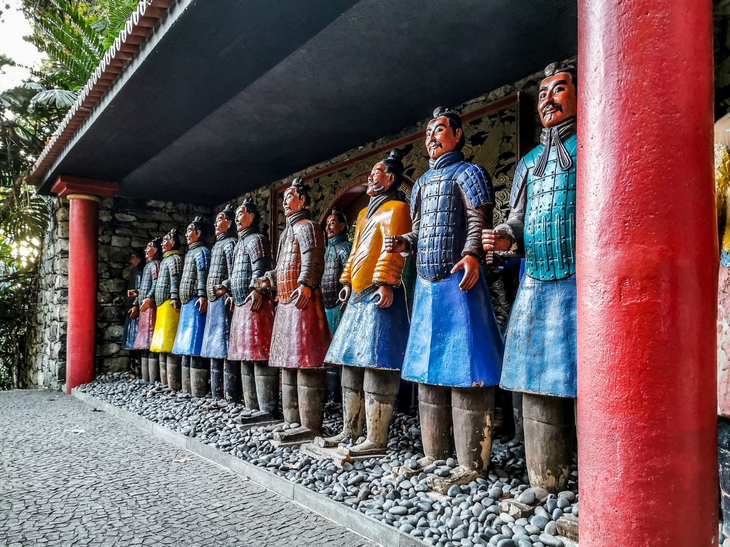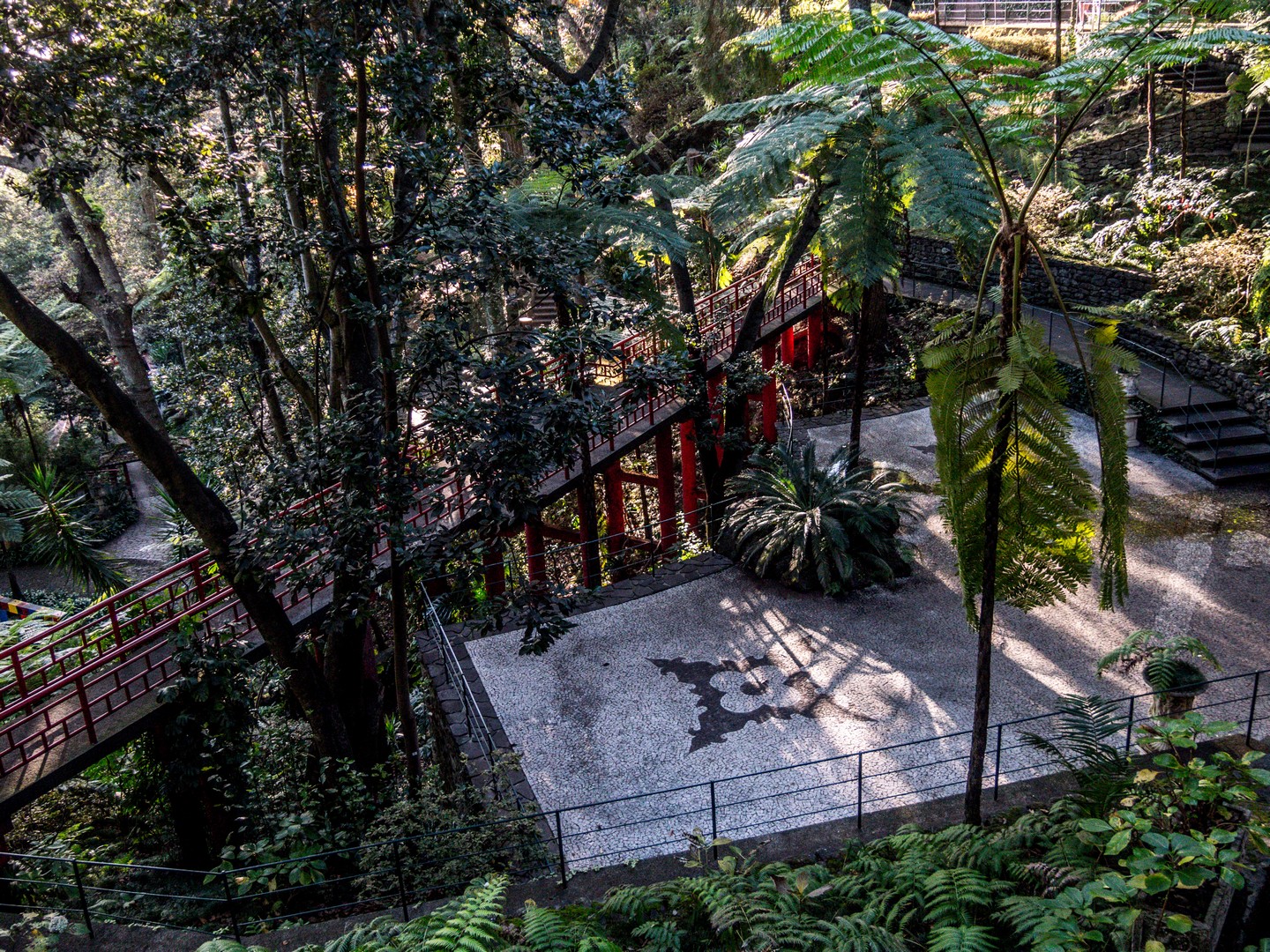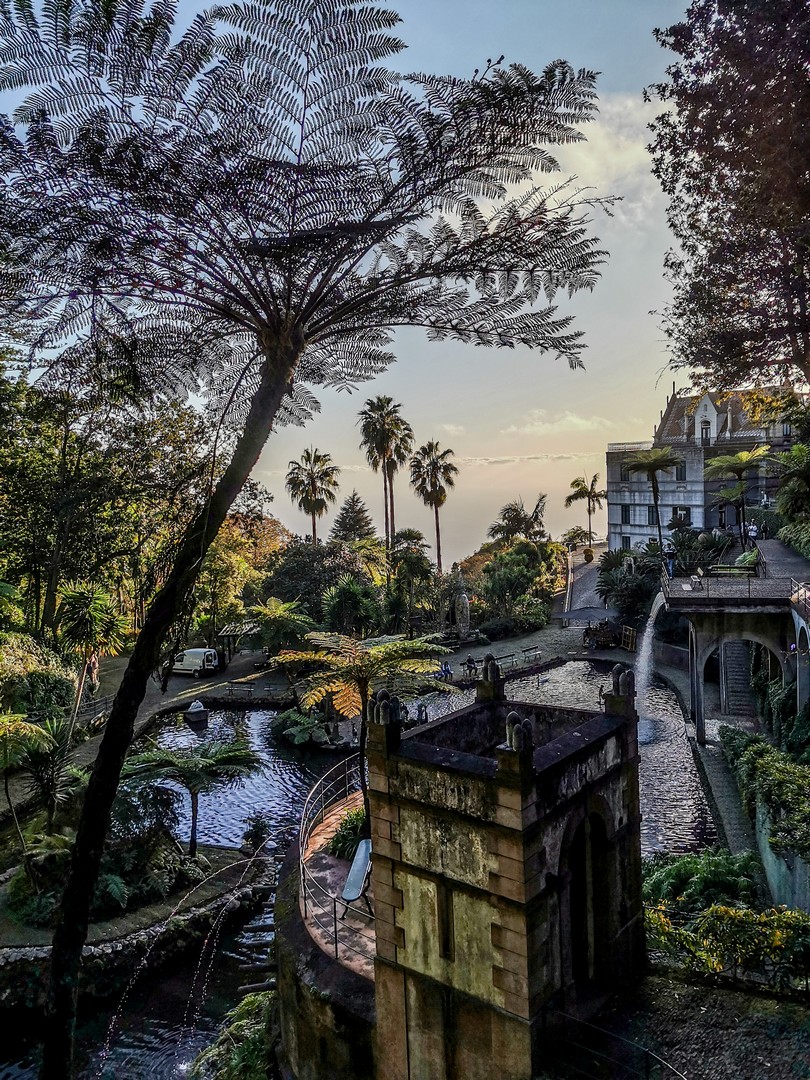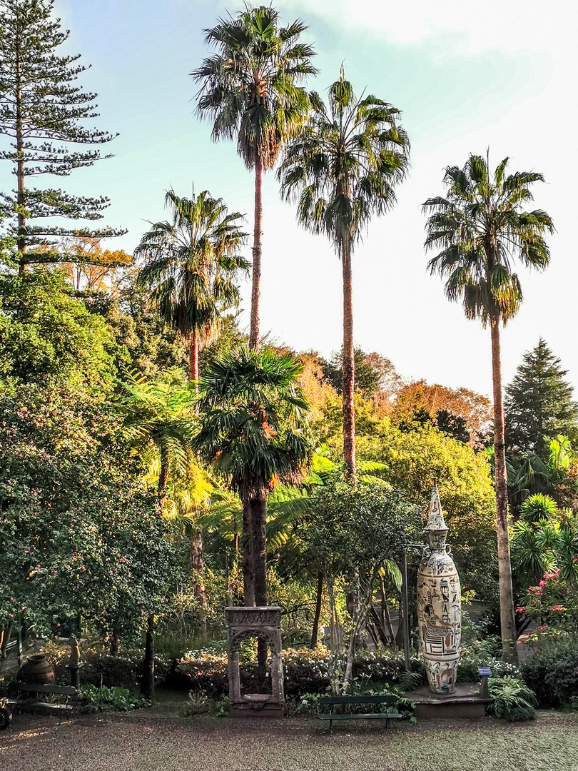 La station de téléphérique se tient à côté de deux jardins : le Jardin botanique de Monte (public) et les Jardins du Monte Palace, un immense parc privé. C’est ce dernier que nous allons visiter. Il tire son nom de l’hôtel Monte Palace, L’histoire commence au XVIIIe siècle lorsque Murray, alors consul anglais, achète cette grande propriété pour y faire construire une quinta. A la fin du XIXe, la propriété est rachetée par Alfredo Guilherme Rodrigues qui la transforme pour en faire un hôtel, le Monte Palace. Après avoir été rachetée par la Caisse économique de Funchal après le décès du propriétaire, elle est vendue en 1987 à José Manuel Rodrigues Berardo, un riche Madérien ayat fait fortune en Afrique du Sud. Amateur d’art et de botanique, il transforme l’hôtel en musée et les jardins, en galerie à ciel ouvert. Des statues d’artistes zimbabwéens côtoient des statues de terres cuites chinoises et de grands panneaux en céramiques qui racontent l’histoire du Portugal jusqu’au XXe siècle mais aussi, de céramiques et d’azulejos anciens.