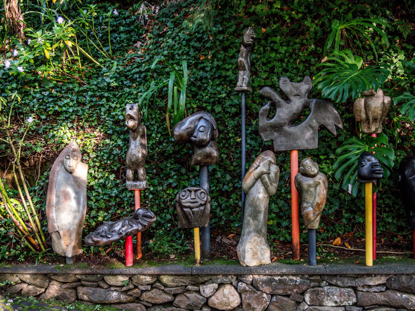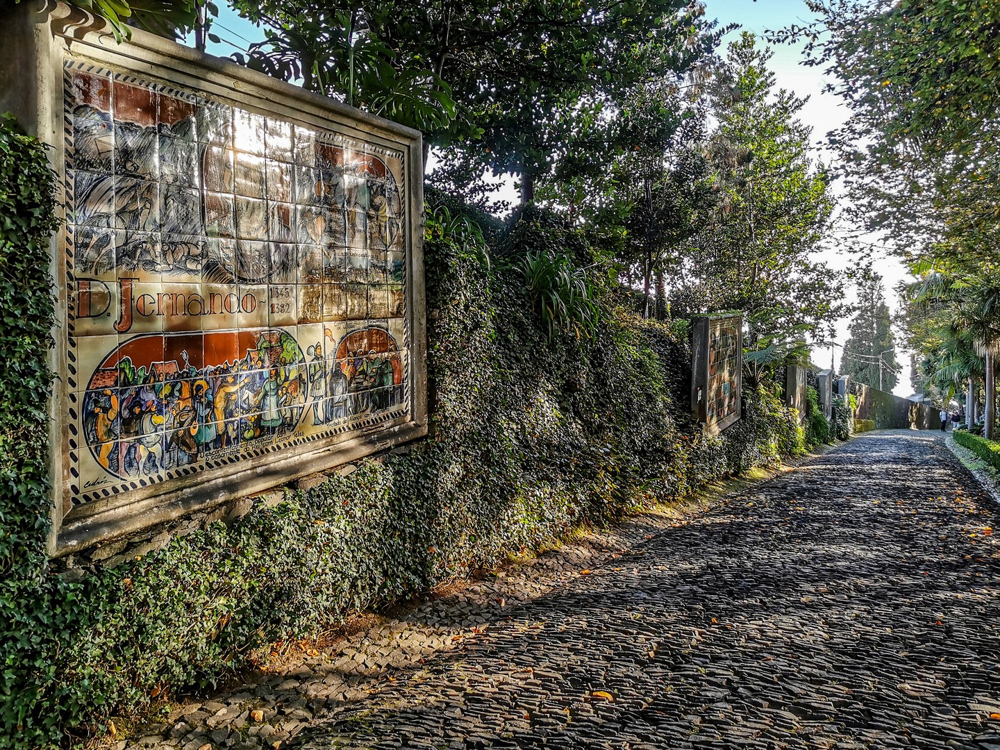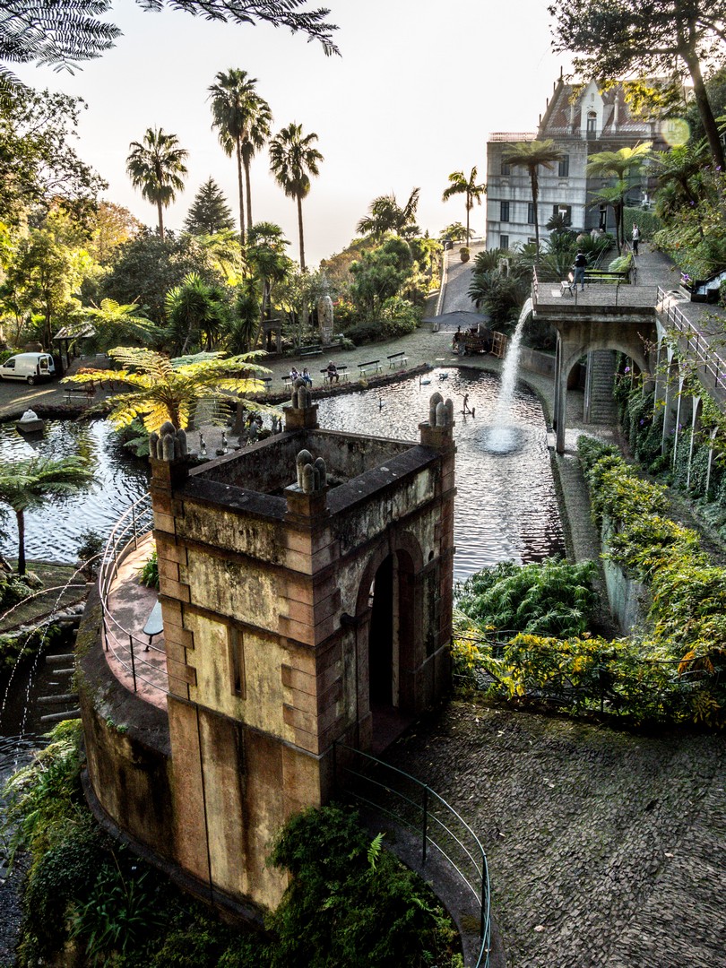 La station de téléphérique se tient à côté de deux jardins : le Jardin botanique de Monte (public) et les Jardins du Monte Palace, un immense parc privé. C’est ce dernier que nous allons visiter. Il tire son nom de l’hôtel Monte Palace, L’histoire commence au XVIIIe siècle lorsque Murray, alors consul anglais, achète cette grande propriété pour y faire construire une quinta. A la fin du XIXe, la propriété est rachetée par Alfredo Guilherme Rodrigues qui la transforme pour en faire un hôtel, le Monte Palace. Après avoir été rachetée par la Caisse économique de Funchal après le décès du propriétaire, elle est vendue en 1987 à José Manuel Rodrigues Berardo, un riche Madérien ayat fait fortune en Afrique du Sud. Amateur d’art et de botanique, il transforme l’hôtel en musée et les jardins, en galerie à ciel ouvert. Des statues d’artistes zimbabwéens côtoient des statues de terres cuites chinoises et de grands panneaux en céramiques qui racontent l’histoire du Portugal jusqu’au XXe siècle mais aussi, de céramiques et d’azulejos anciens.