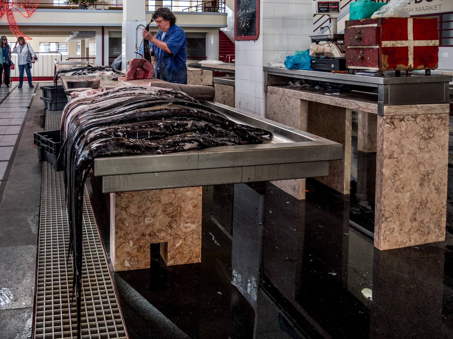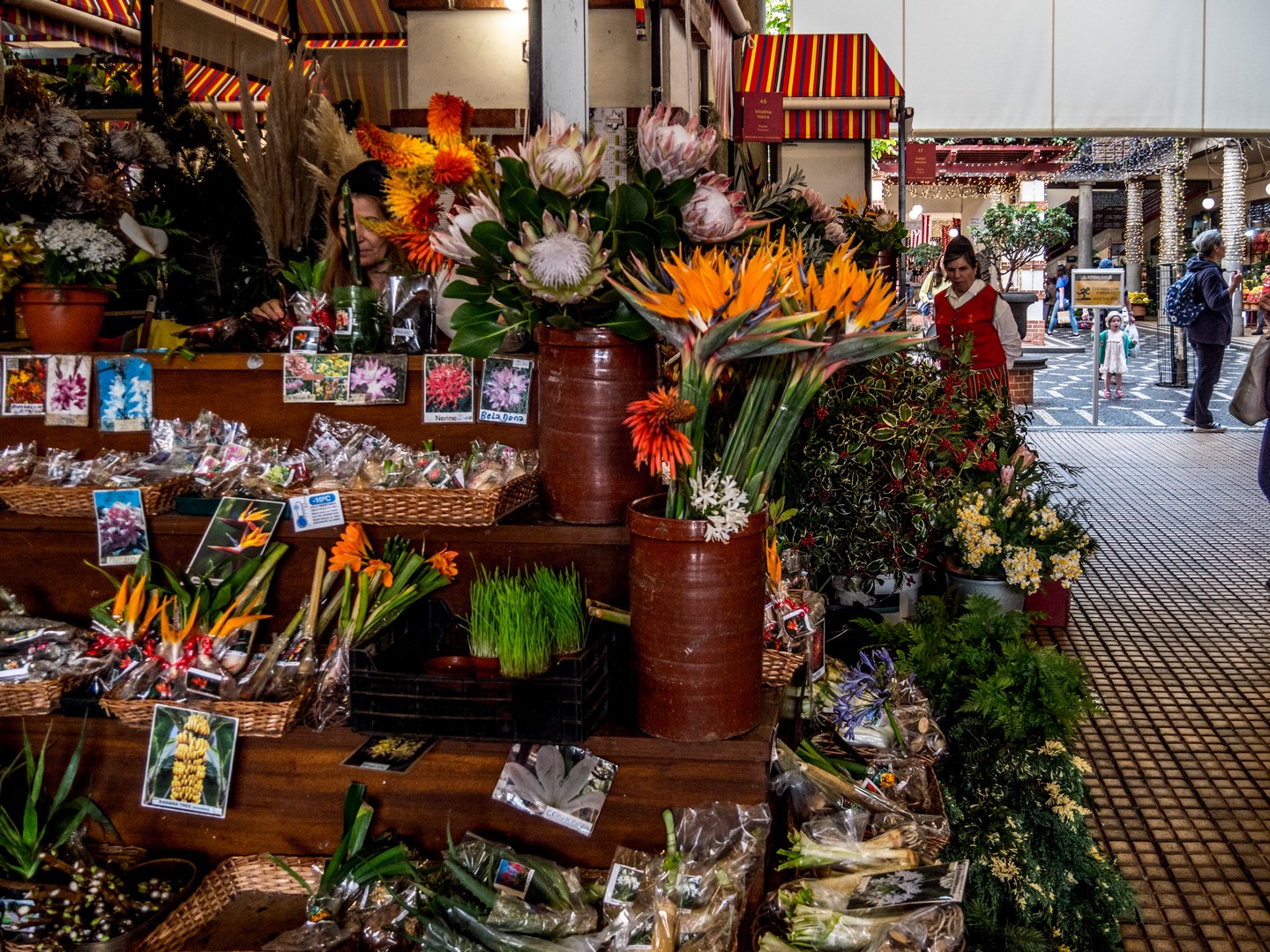 La food tour se termine sur l’un des lieux emblématiques de Funchal : son marché couvert (Mercado dos Lavradores). Cet élégant marché couvert, construit fin des années 1930 abrite tout ce dont les locaux ont besoin pour s’approvisionner. Tout en bas, le poisson, tout frais, préparé devant vous. Au niveau de la rue, le marché est organisé autour d’une “place” centrale où on retrouve les maraîchers, les fleuristes, les vendeurs d’épices… C’est un incontournable de Funchal. N’hésitez pas à vous balader pour découvrir toutes les richesses que produit le riche sol madérien. Les fleurs (dont les jolies protées, fleurs importées d’Afrique du Sud et que l’on retrouve dans tous les stands) légumes, bien sûr mais aussi les fruits et à Madère, il y a des découvertes à faire en la matière !