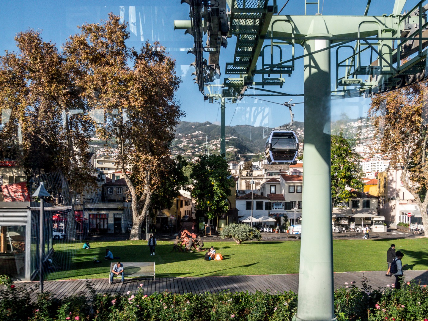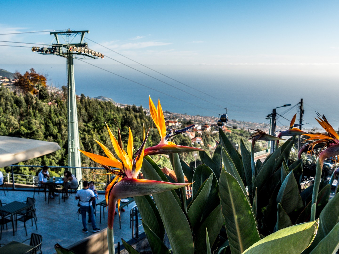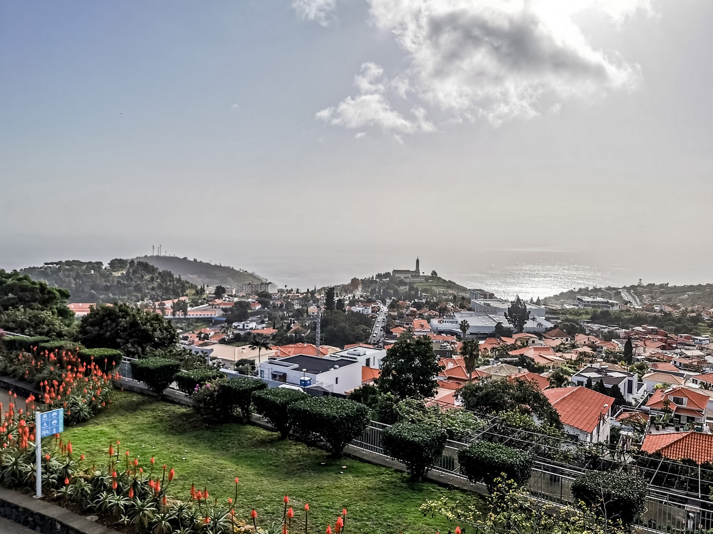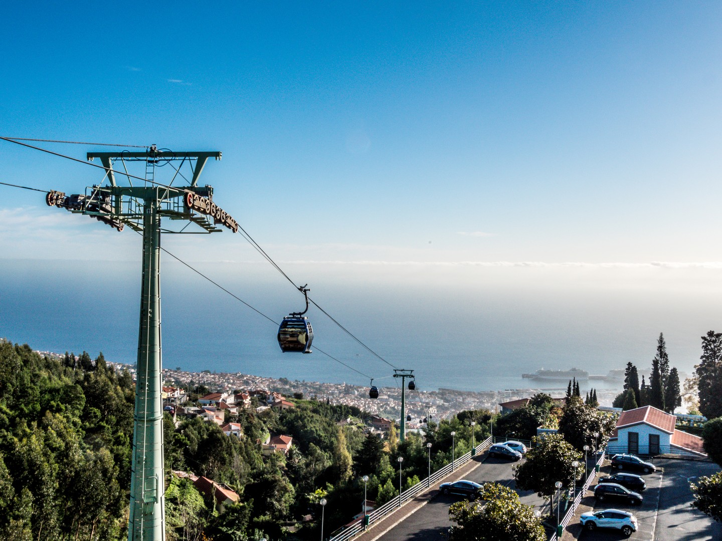 Monte est un quartier qui surplombe le vieux Funchal. On le rejoint grâce au téléphérique, une chouette traversée, suspendus dans les airs, qui dure un petit quart d’heure. Pour ceux qui n’ont as le vertige, c’est le bonheur ! On a tout le loisir d’observer les toits de tuiles et l’océan qui brille sous le doux soleil d’hiver.