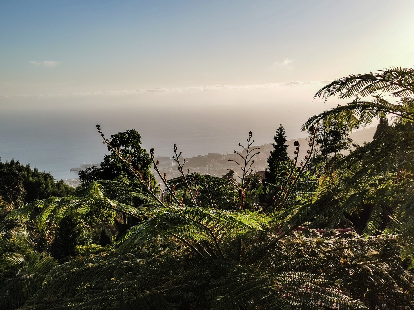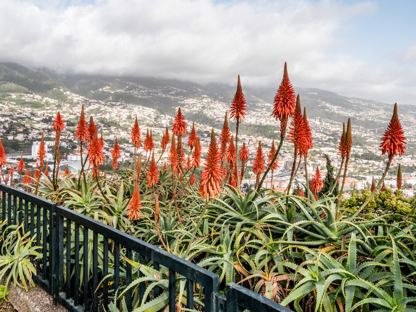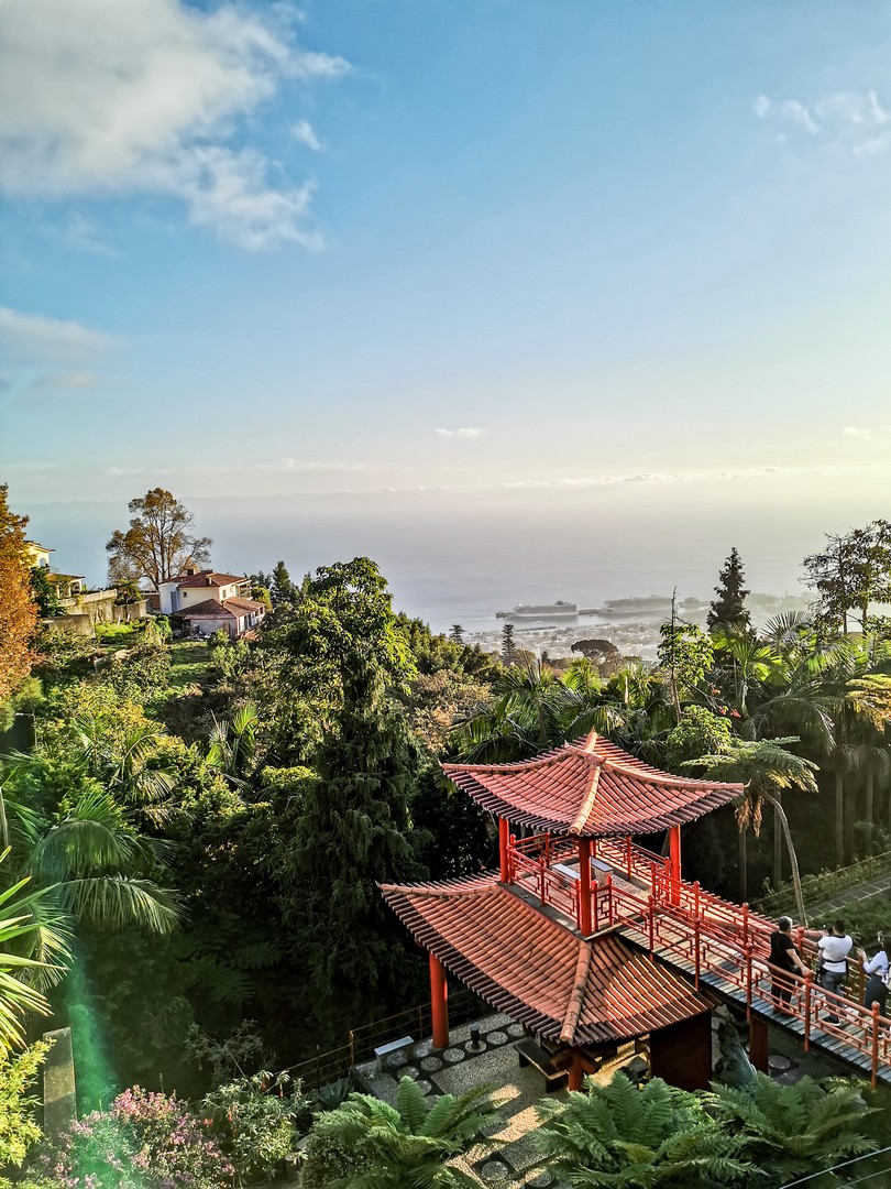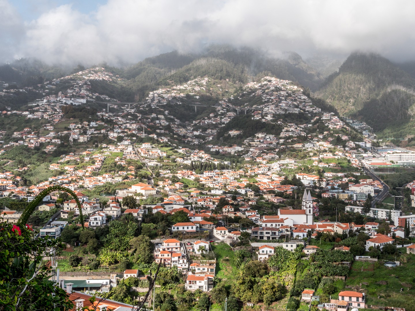 Monte est un quartier qui surplombe le vieux Funchal. On le rejoint grâce au téléphérique, une chouette traversée, suspendus dans les airs, qui dure un petit quart d’heure. Pour ceux qui n’ont as le vertige, c’est le bonheur ! On a tout le loisir d’observer les toits de tuiles et l’océan qui brille sous le doux soleil d’hiver.