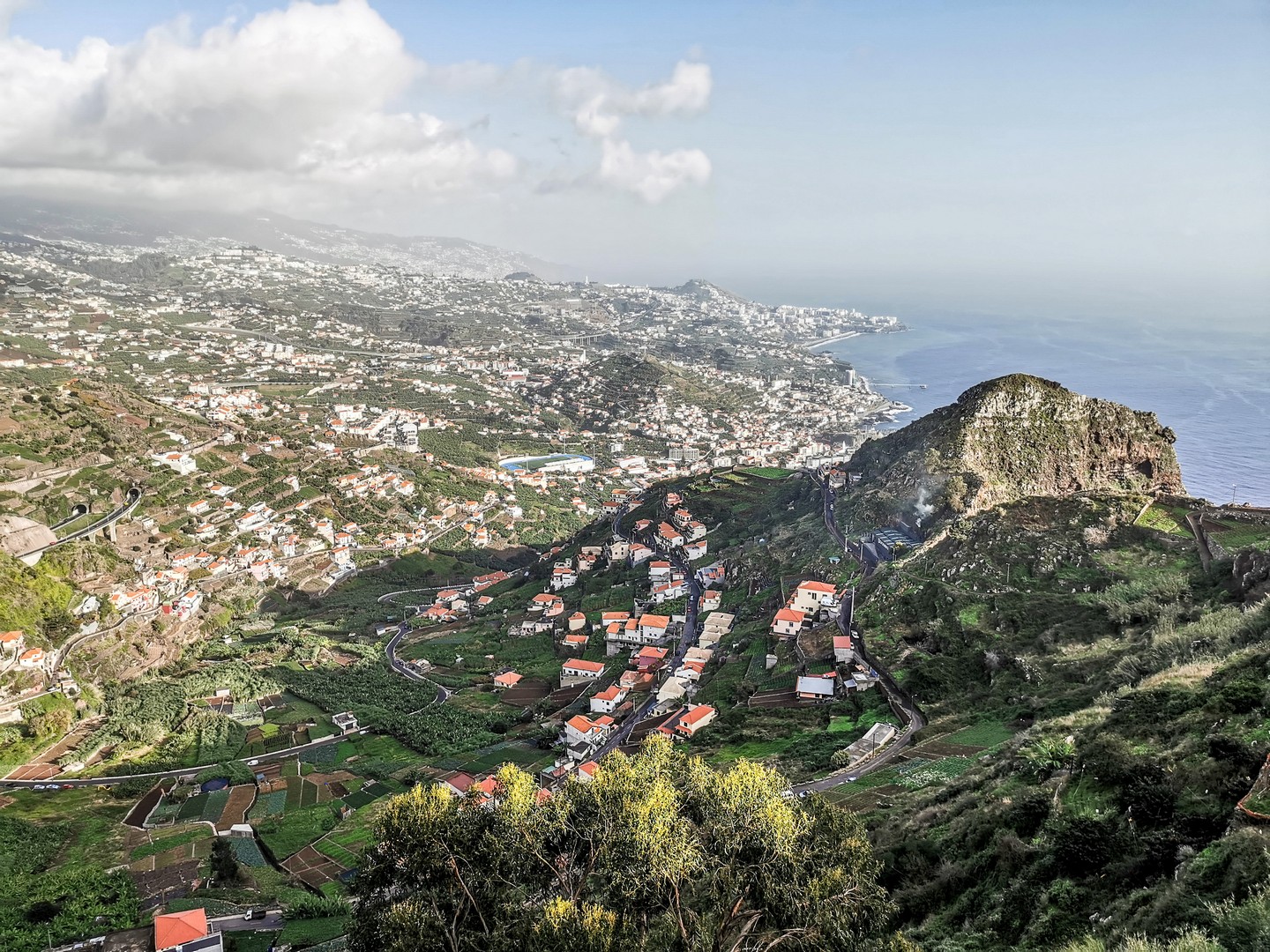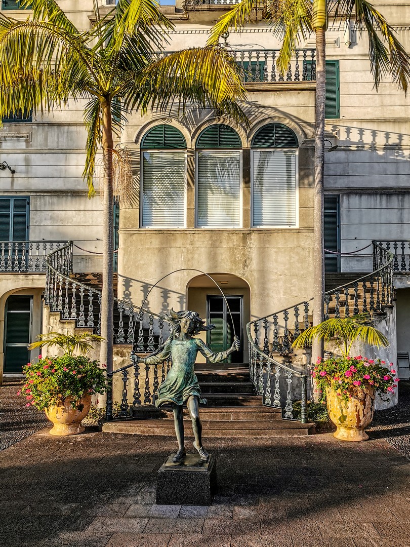 Madère… enfin, nous nous rencontrons. Je me souviens très bien d’un reportage, vu alors que je devais avoir 8 ou 9 ans, où j’avais entendu pour la première fois ton surnom : « L’île aux fleurs ». A l’atterrissage, je découvre une île très montagneuse, au relief tourmenté, et toute verte, perdue dans le grand Océan Atlantique comme une émeraude posée sur un coussin recouvert de satin bleu. Connue depuis l’Antiquité, Madère reste inhabitée jusqu’à ce que les Portugais n’y débarquent en n’en prennent possession en 1419. Située entre l’Europe, l’Afrique et les Amériques, Madère va devenir une importante escale pour les navigateurs et explorateurs. Île volcanique, au climat subtropical d’éternel printemps, où tout pousse avec abondance (pourvu qu’on s’adapte à son relief tourmenté), Madère, et surtout Funchal, devient vite prospère pendant la grande époque des explorations, avant de décliner. Si la grande partie de la population est restée pauvre jusque dans les années 1990, la construction de nombreuses infrastructures en font un haut lieu du tourisme. Aujourd’hui, c’est même la deuxième région la plus riche du Portugal.