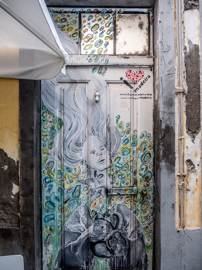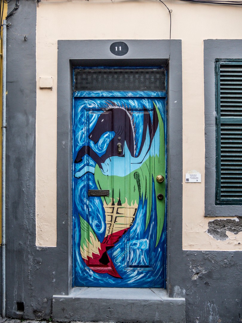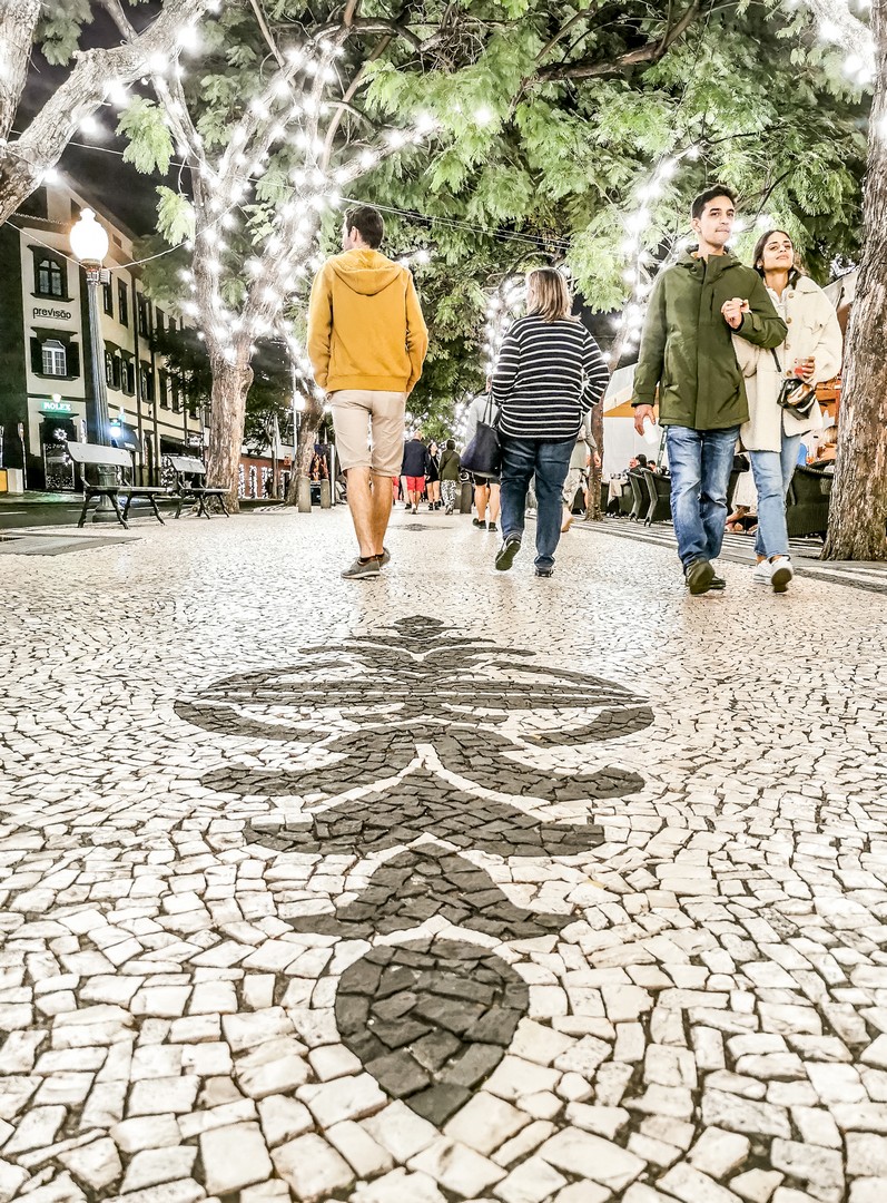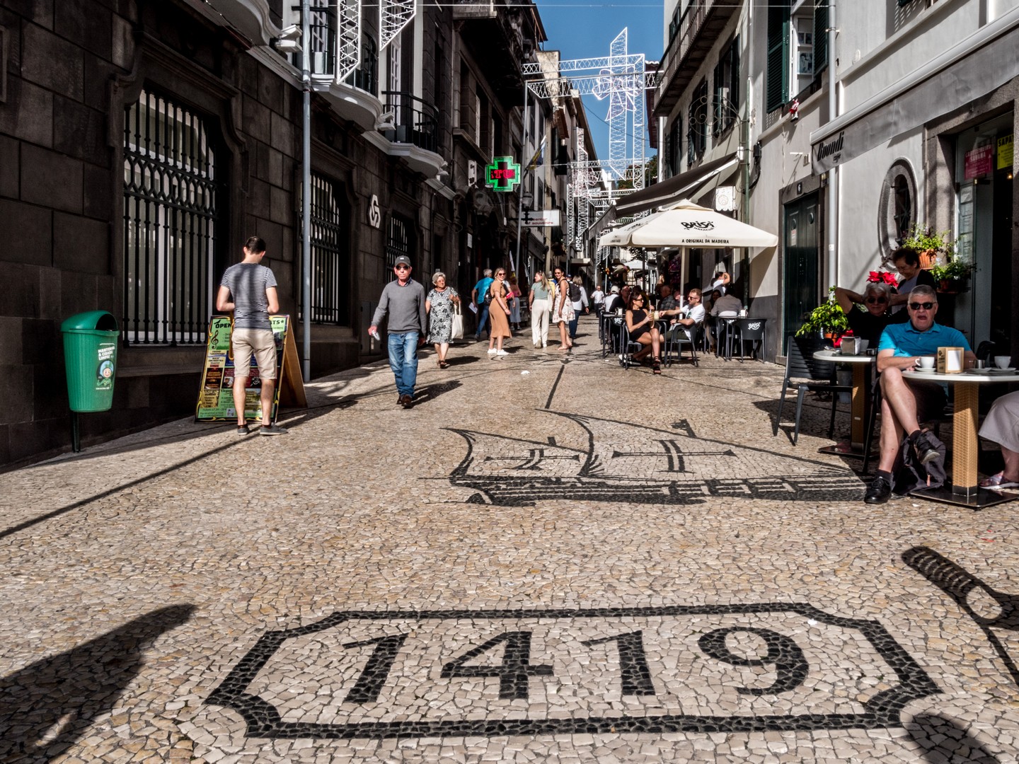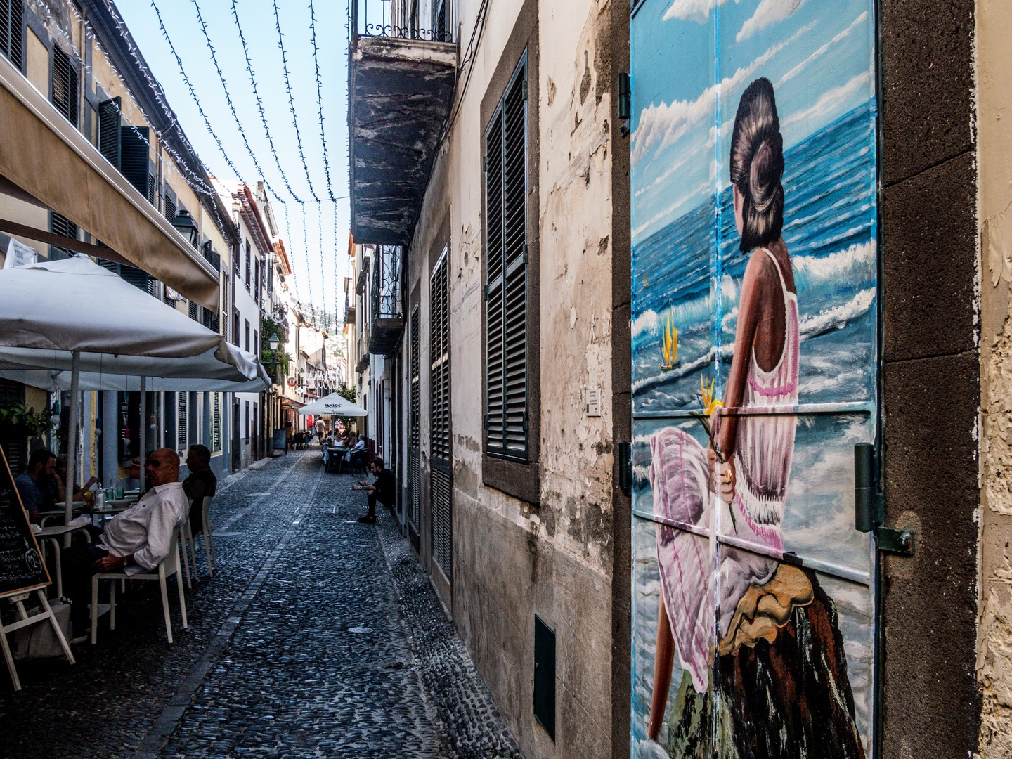 En chemin, vous découvrirez la Cathédrale Notre-Dame-de-l’Ascension (Sé do Funchal). Construite près de 100 ans après la “découverte” de Madère par les Portugais, cette cathédrale gothique, à l’impressionnante arche vaut une visite rien que pour son plafond en bois de cèdre local qui rappelle le style islamique avec des moulures en « alfarge » (stuc moulé). De là, vous pouvez prendre la Rua João Tavira, une des rues piétonnes de la vieille ville (Zona Velha da Cidade). La voirie est orné de jolis motifs en galets qui représentent différents symboles de l’île : un galion avec la date de l’arrivée des Portugais, des oiseaux de paradis, des bananes, la rosace de la cathédrale, des grappes de raisin… Nous allons également passer devant l’hôtel de ville et le Musée d’art sacré de Funchal. Ne loupez pas non plus les « portes parlantes », des portes de maisons customisées par différents street-artistes qu’on retrouve un peu partout, notamment dans la Rua Santa Maria.