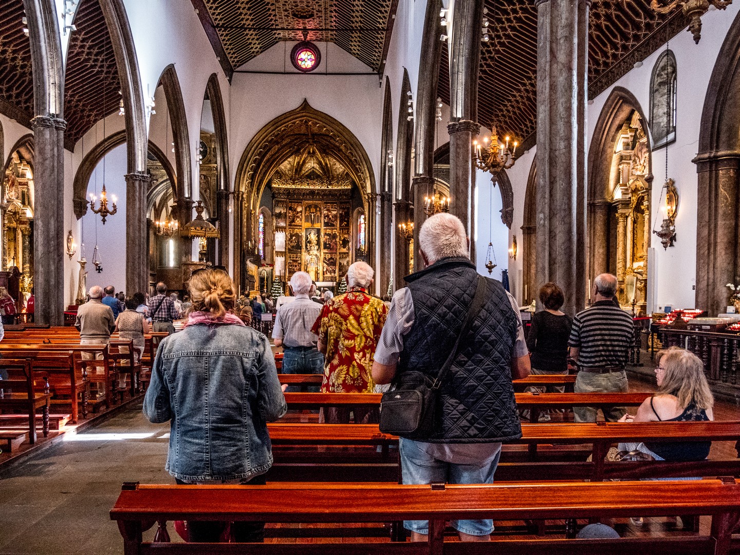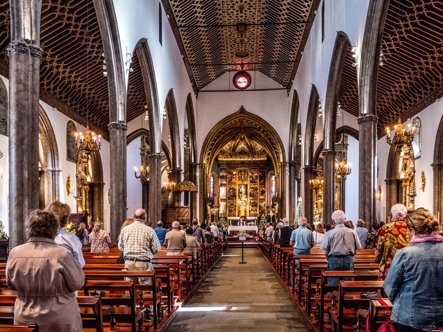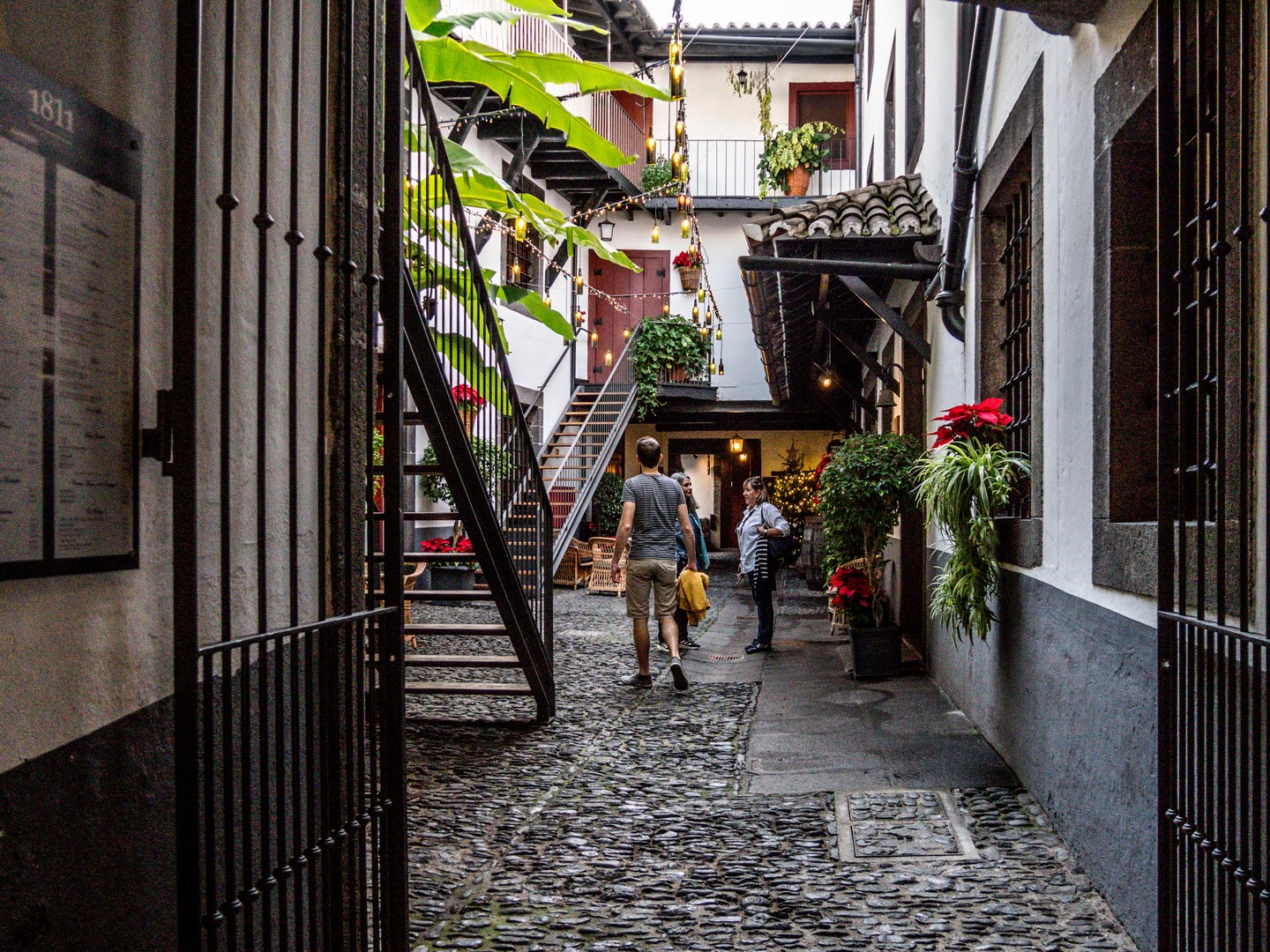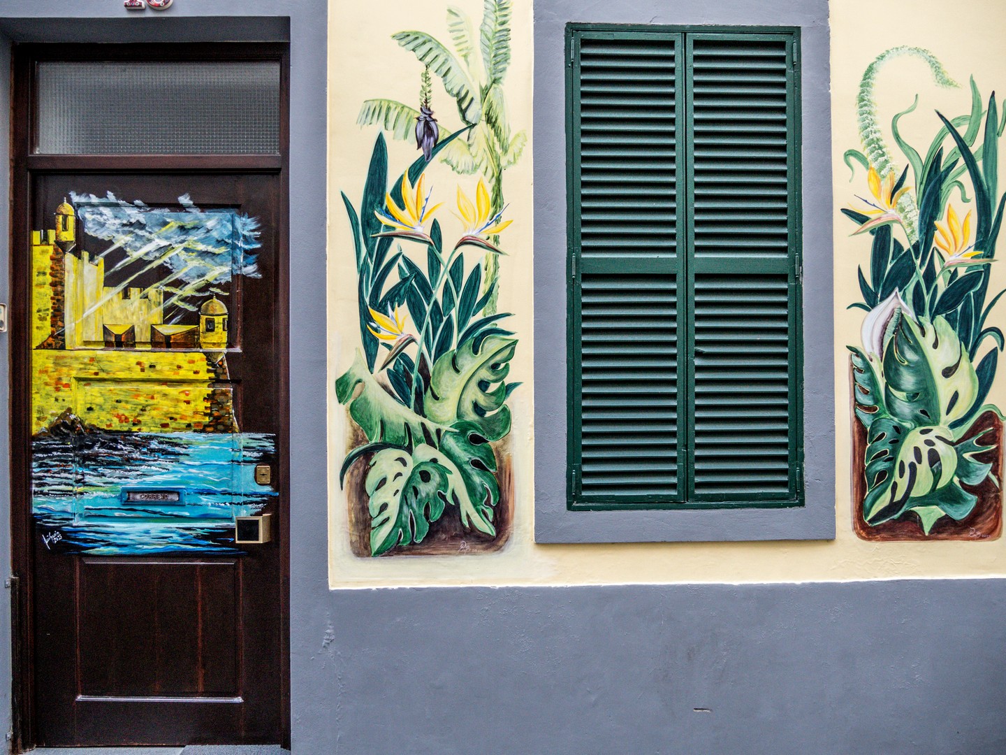 En chemin, vous découvrirez la Cathédrale Notre-Dame-de-l’Ascension (Sé do Funchal). Construite près de 100 ans après la “découverte” de Madère par les Portugais, cette cathédrale gothique, à l’impressionnante arche vaut une visite rien que pour son plafond en bois de cèdre local qui rappelle le style islamique avec des moulures en « alfarge » (stuc moulé). De là, vous pouvez prendre la Rua João Tavira, une des rues piétonnes de la vieille ville (Zona Velha da Cidade). La voirie est orné de jolis motifs en galets qui représentent différents symboles de l’île : un galion avec la date de l’arrivée des Portugais, des oiseaux de paradis, des bananes, la rosace de la cathédrale, des grappes de raisin… Nous allons également passer devant l’hôtel de ville et le Musée d’art sacré de Funchal. Ne loupez pas non plus les « portes parlantes », des portes de maisons customisées par différents street-artistes qu’on retrouve un peu partout, notamment dans la Rua Santa Maria.