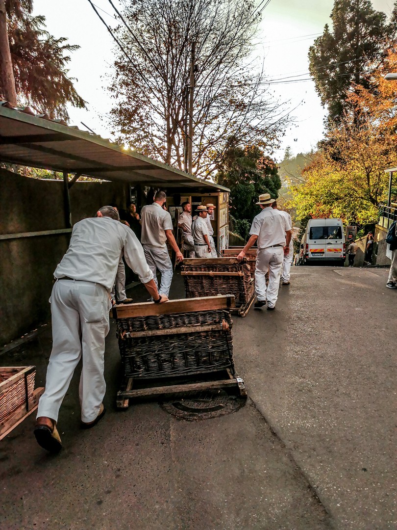 Le traineau peut accomoder 2 personnes. Il est d’abord tiré par des conducteurs (les « carreiros »), habillés de légers costumes blanc et coiffés d’un chapeau de paille. Après le tirage initial, les conducteurs se dépêchent de se mettre à l’arrière du traîneau pour le diriger et le freiner au cas où. Vous voilà en train de dévaler 2 kilomètres à (presque) toute vitesse (perso, ça aurait pu encore aller plus vite). C’est juste génial ! Et quand la rue s’aligne avec une vue sur l’océan, c’est très impressionnant ! Heureusement pour nos carreiros, si leurs prédécesseurs devaient remonter à pied avec le traîneau, ça se fait maintenant en bus.