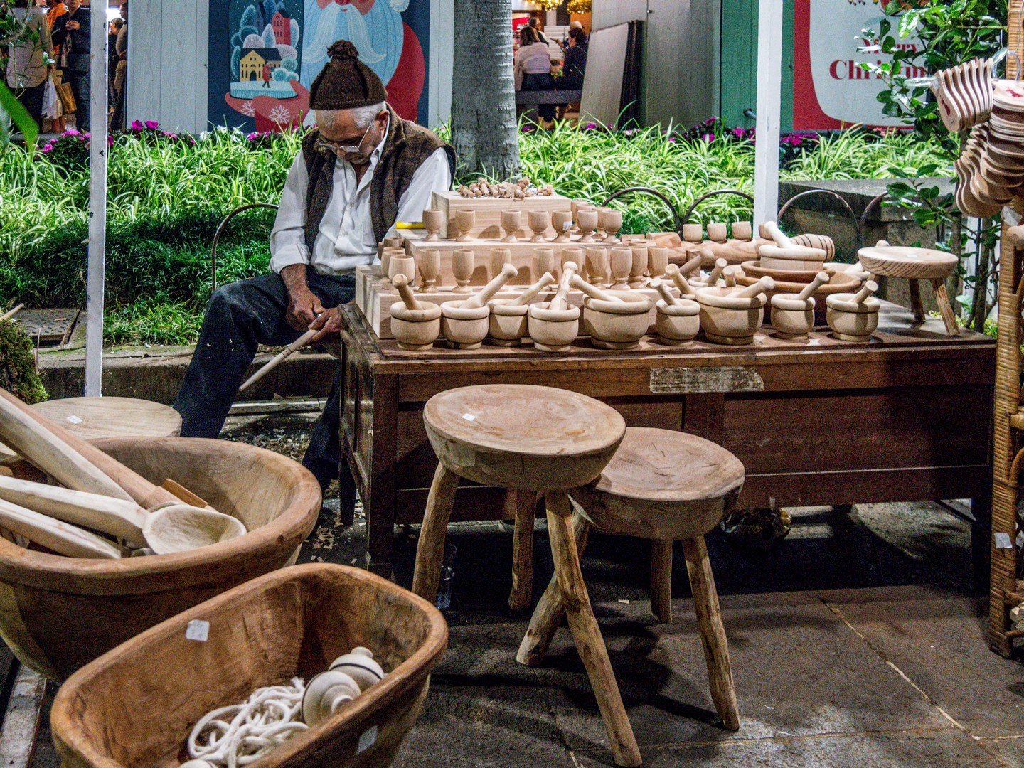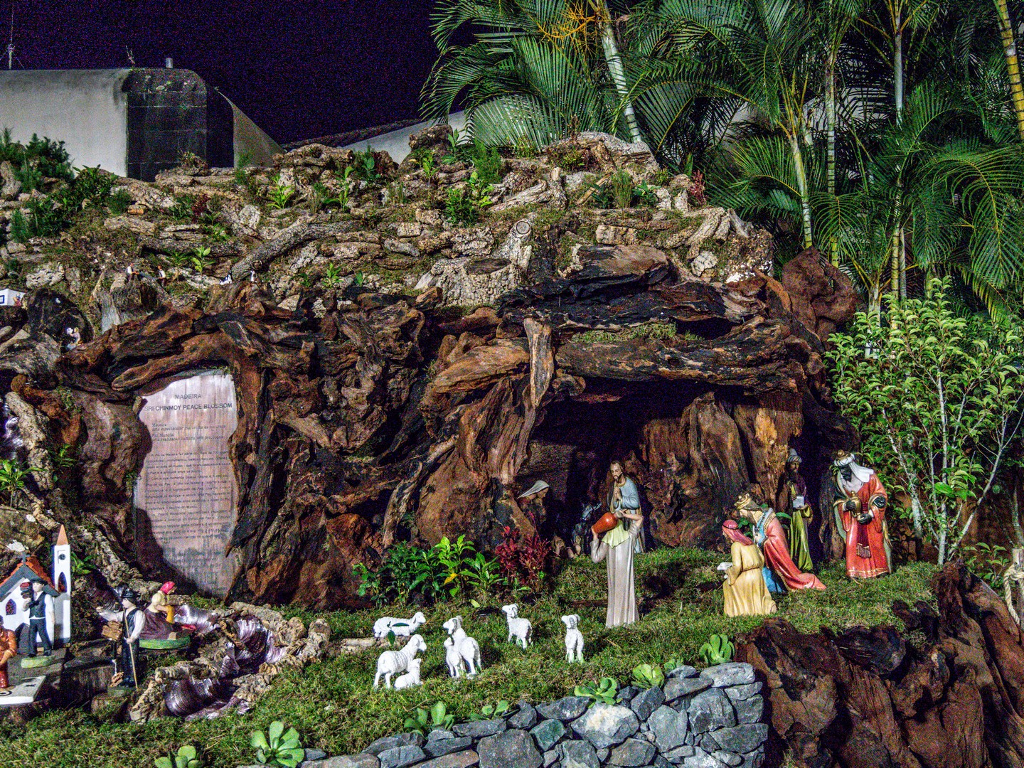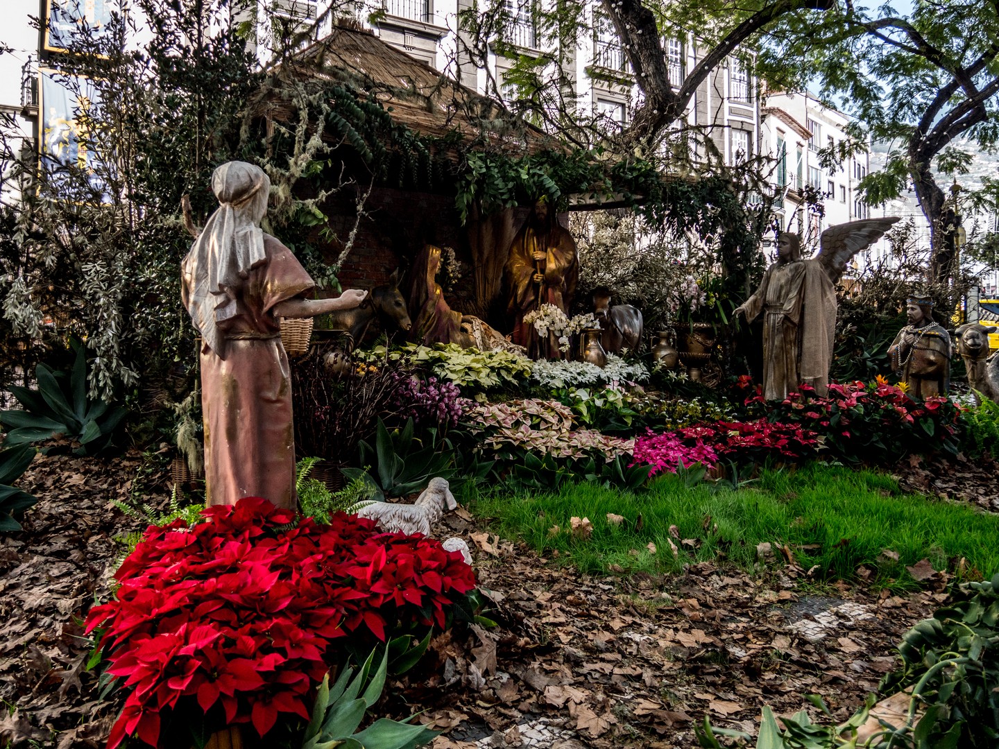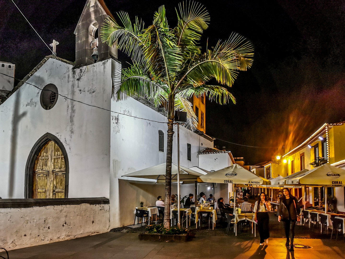 Une fois le soir tombé, Funchal reste animée avec ses nombreux bars et ses petits restaurants. L’été, la fraîcheur s’installe et il fait bon se promener par contre; si vous êtes à Madère pendant la période de l’Avent, vous allez en prendre plein les yeux. Noël se fête en grande pompe et jamais je n’ai vu une ville aussi illuminée. On dirait que pas une seule rue n’y échappe. Dans le vieux Funchal, le marché de Noël s’allume, avec chalet de nourritures, d’artisanat, chants de Noël et bien sûr, une immense crêche. En plus de la classique scène de Nativité, la crêche se prolonge avec des scènes de la Madère de jadis. Des figurines d’habitants en costumes traditionnels reproduisent des scènes de la vie quotidienne : on cultive son potager, un guitariste sérénade une dame, autre autre porte un pannier d’osier sur sa tête, un fermier monte sur le dos de son boeuf… C’est charmant et les détails sont minutieux.