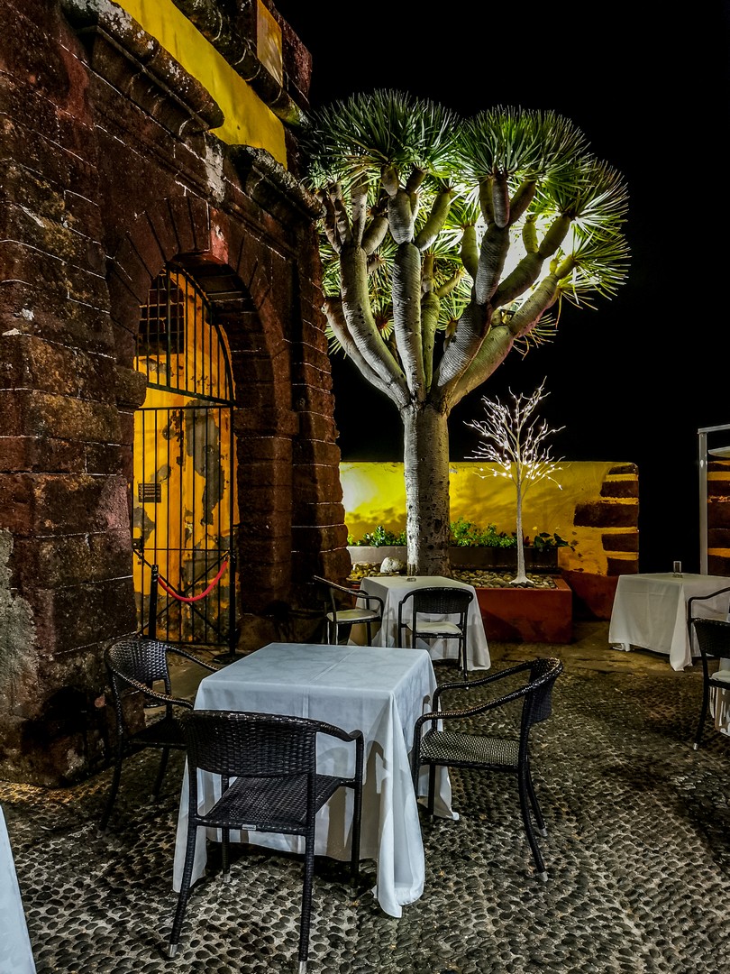 Pour une expérience un peu plus chic, rendez-vous dans ce restaurant logé dans le fort historique de Saõ Tiago, qui date du XVIIe siècle. Une expérience intimiste dans un cadre qui en jette, surtout si on dine sur la terrasse qui donne sur l’océan. L’effet wow est là. Côté cuisine, c’est pkutôt fusion. On retrouve des spécialités portugaises, d’autres françaises et il y a toute une liste de pâtes, de risotti et aussi, pour accomoder la nombreuse clientèle britannique, de l’agneau à la sauce menthe. Les petits morceaux que j’ai mangé (je sortais d’une intoxication alimentaire subie la veille de mon départ) étaient délicieux et les assiettes, joliment présentées. Ca en jette dans tous les sens et le service est top.