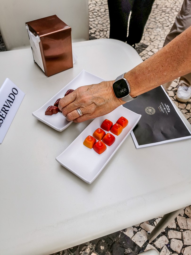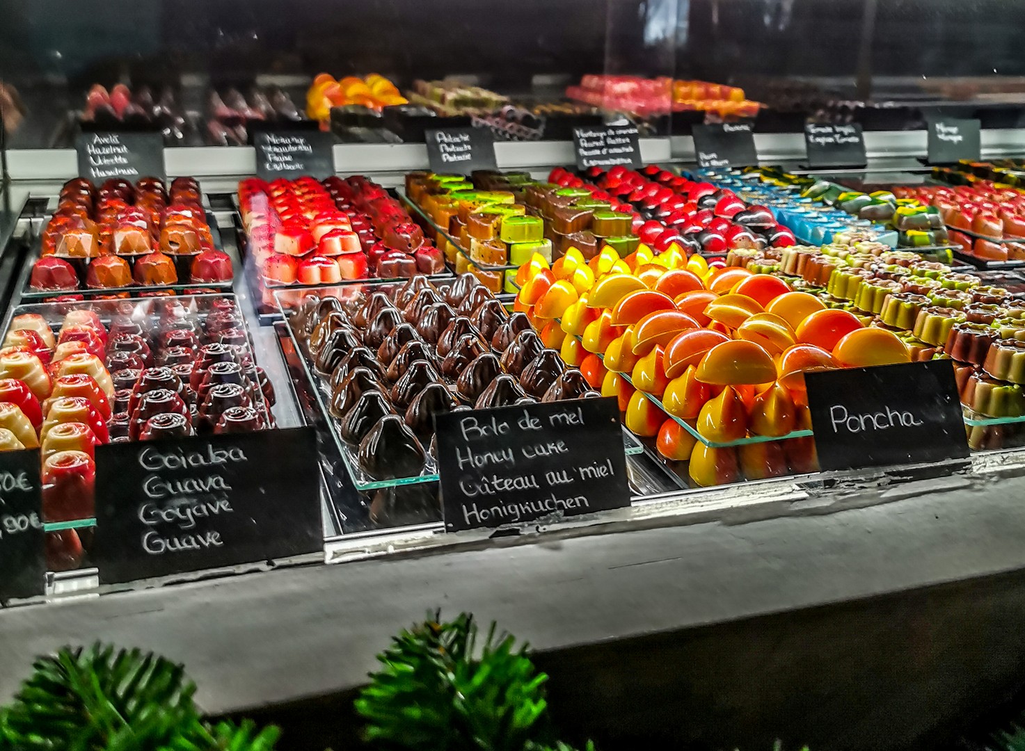 Au fil de nos arrêts, nous allons déguster des plats, et des boissons, typiques de l’île : Carne de vinha d´alhos (viande de porc cuite avec du vin et de l’ail), le pain de maïs frit, des gâteaux et biscuits, des chocolats (fourrés aux nombreux fruits de l’île), du thon à l’ail, du poisson au coulis de fruit de la passion, sans oublier le fameux Bolo de caco, un pain plat qu’on accompagne de beurre d’ail et de persil (oui, à Madère, on aime beaucoup l’ail et ce n’est pas fait pour me déplaire). Côté boisson, outre le vin de Madère, nous goûterons le soda typique de l’île au fruit de la passion (qui a eu un prix d’excellence), la bière Coral (LA bière de l’île), du vin de table et surtout, le poncha.