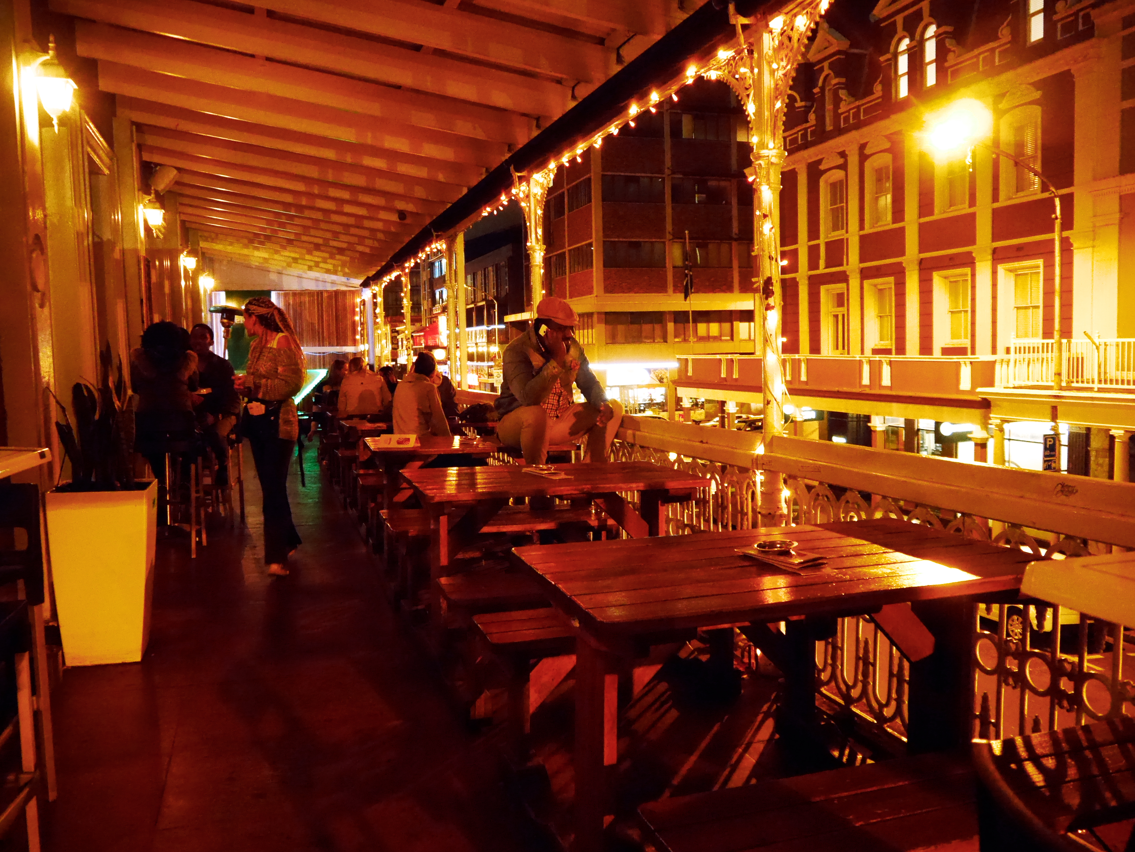 Un feu brûle dans le poêle du « Mojito Bar » et un groupe de reggae contribue à réchauffer encore plus l’atmosphère. Quatre ans après, il est toujours là, ce petit bar chaleureux du Cap, en plein Long Street, qui avait écrit une des plus belles pages de mon voyage. Assis derrière une bière, Jeune Loup est dans son élément, de retour en ville! Et quoi de mieux que Long Street, ses innombrables bars et restaurants Juste avant, j’avais tenu à l’emmener dans le tout premier bar où j’avais mis les pieds lorsque j’avais débarqué au Cap: « The Neighbourhood« . Lui aussi était toujours là, sa large terrasse et son joli balcon inchangé (il a malheureusement fermé depuis, NDLR 09/02/2025). C’est comme si j’étais partie de la veille. Je dois dire que moi aussi, je suis heureuse d’être là. C’est un peu comme retrouver une vieille amie dont ont s’est languie pendant longtemps.