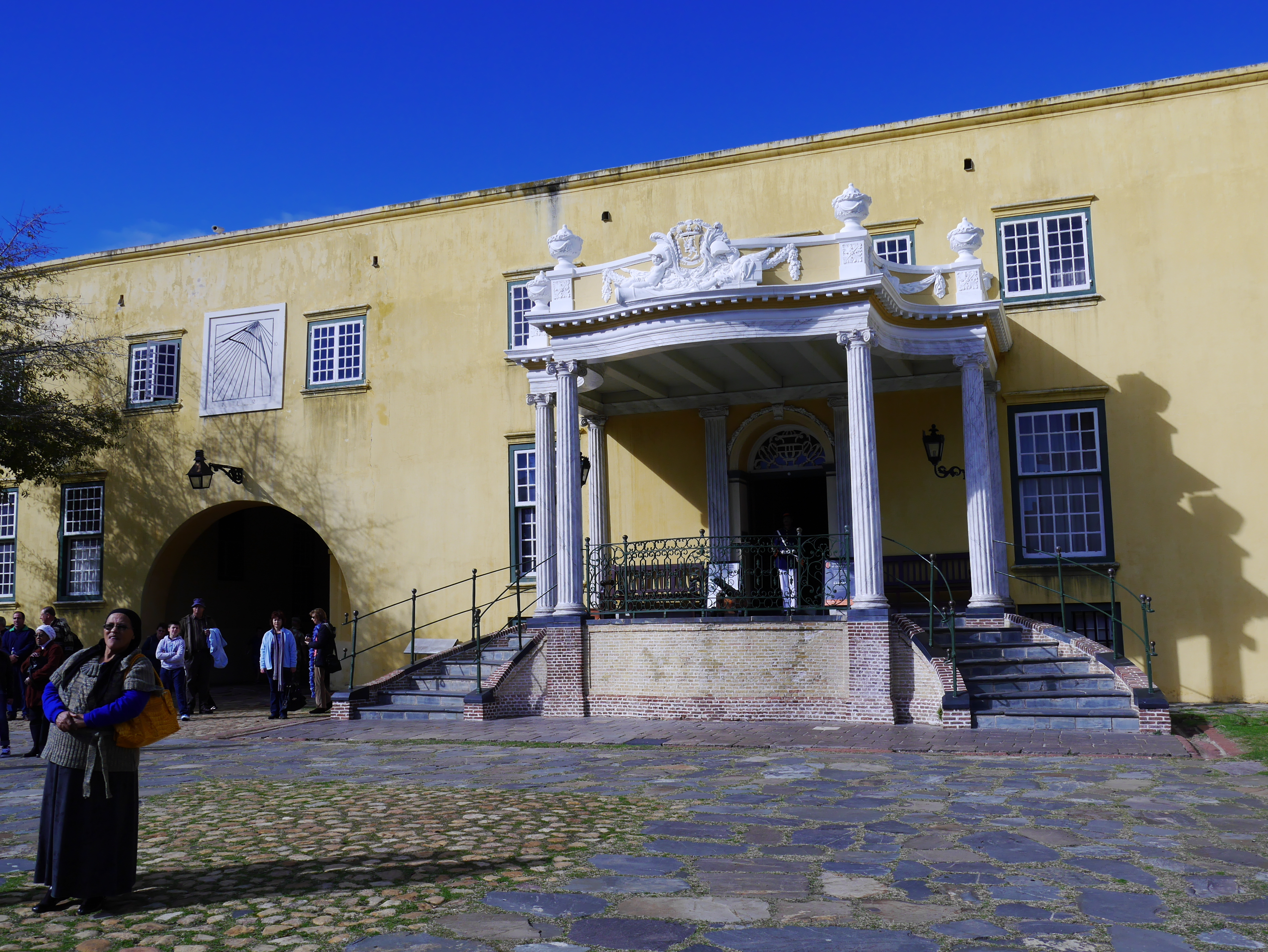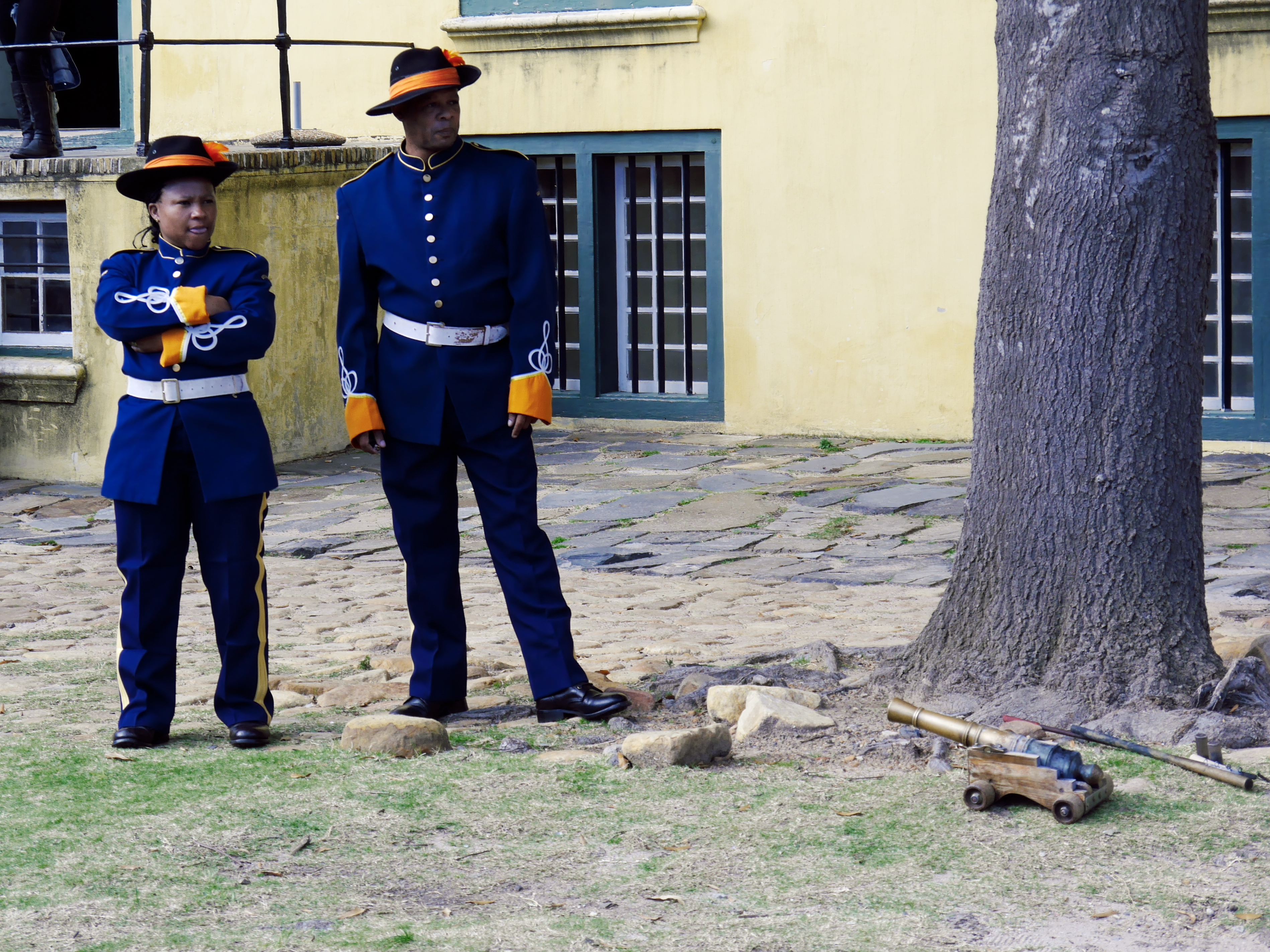 Si l’Hôtel de Ville ferme un côté de la place, un autre côté est pris par la plus ancienne construction européenne du Cap: le Fort de Bonne-Espérance. Construit par la Compagnie néerlandaise des Indes orientales, le château fut pendant longtemps le lieu qui administrât la destinée de la colonie du Cap. C’est maintenant un des musées les plus visités de la ville. Je n’avais pas eu l’occasion de le visiter mais Jeune Loup est assez motivé pour le faire. On acheté nos billets, et on entre.